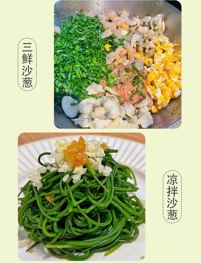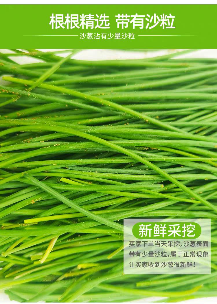 【产品说明】沙葱细嫩,运输中会有个别葱叶蔫吧受损,属正常现象。介意慎拍~