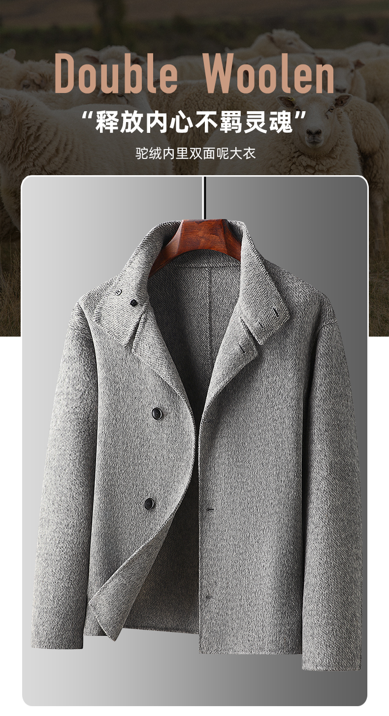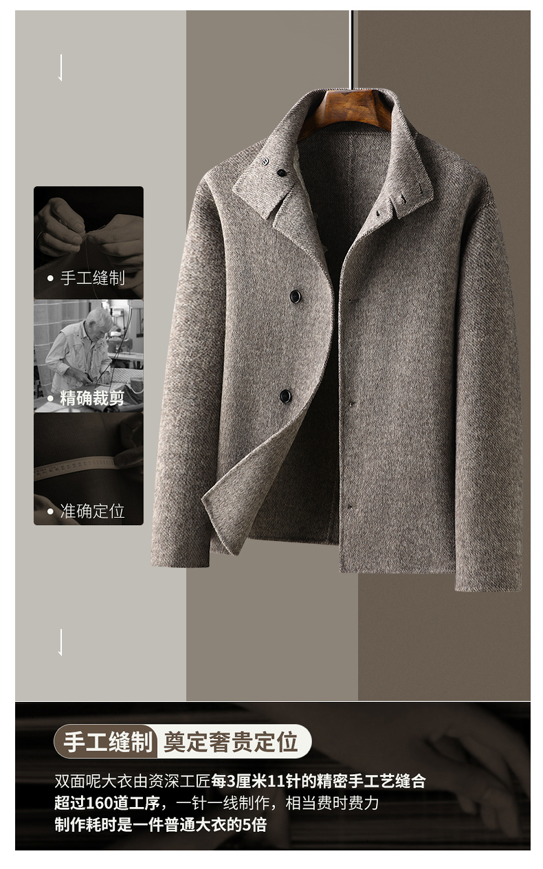 【新款DAB】大依优型大码男装羊毛呢双面呢大衣外套手工呢子胖子休闲男士上衣