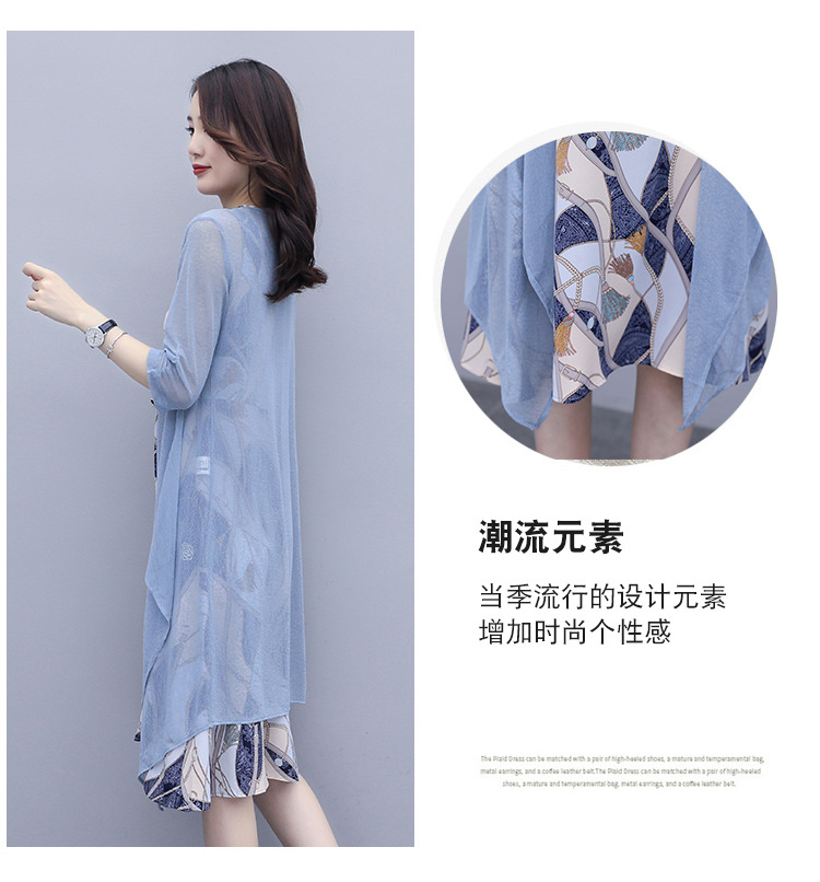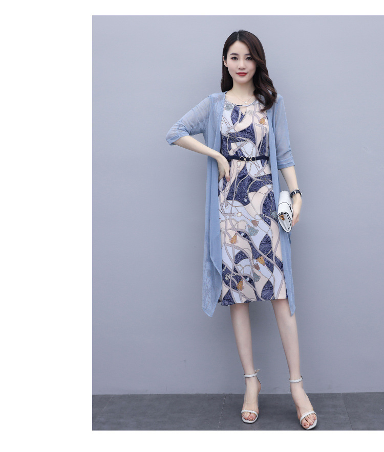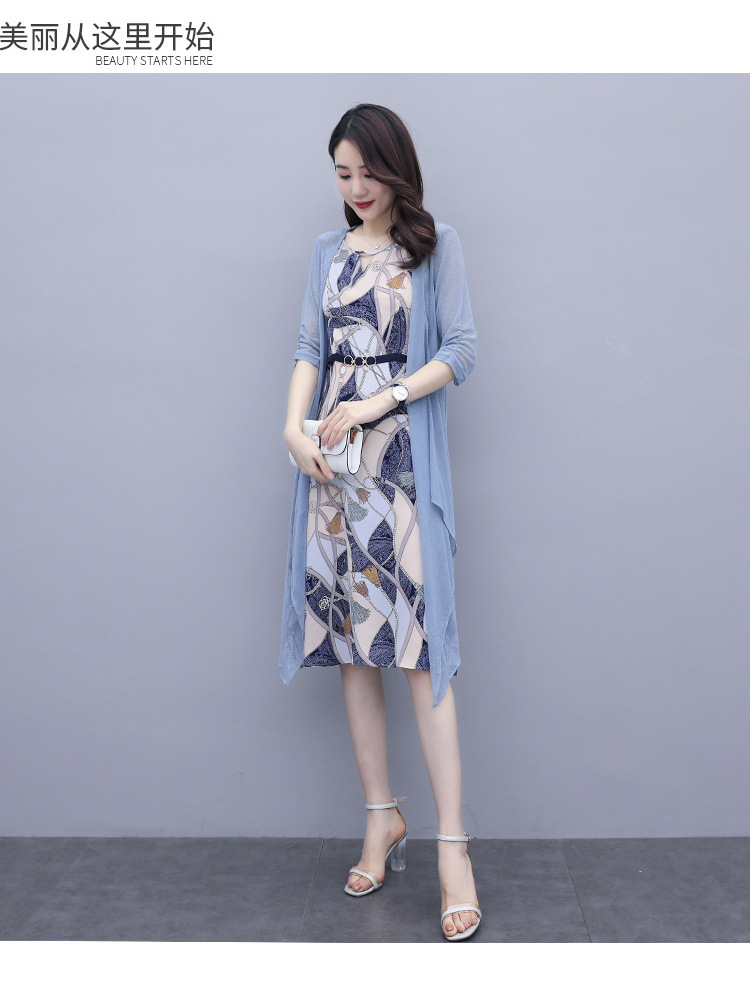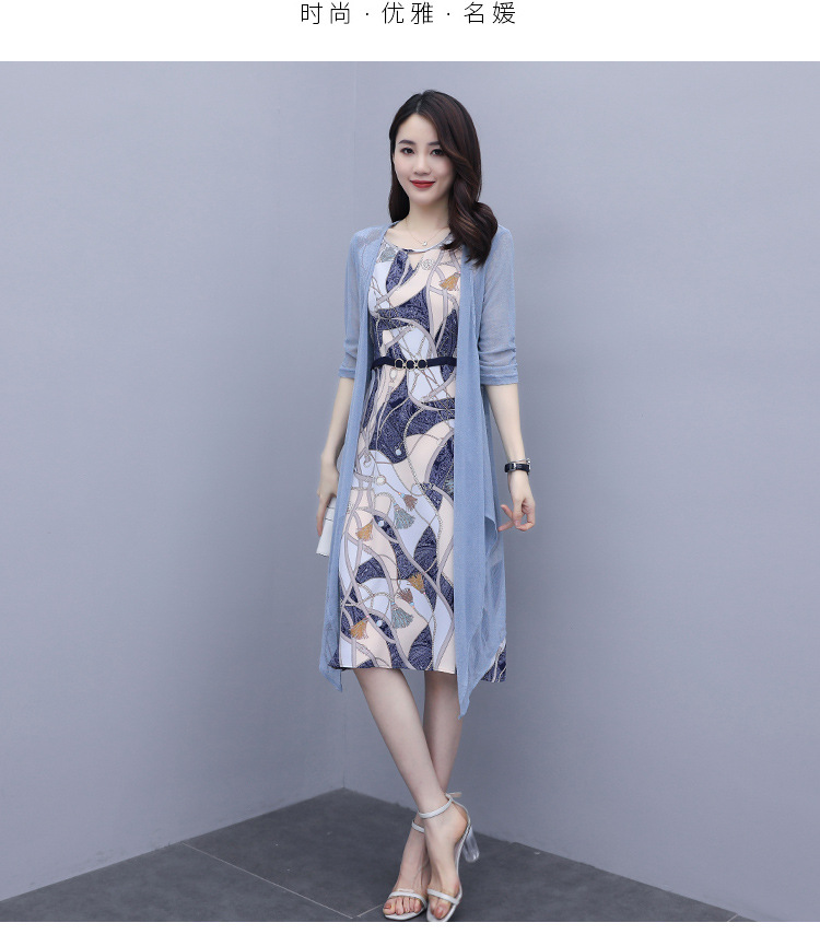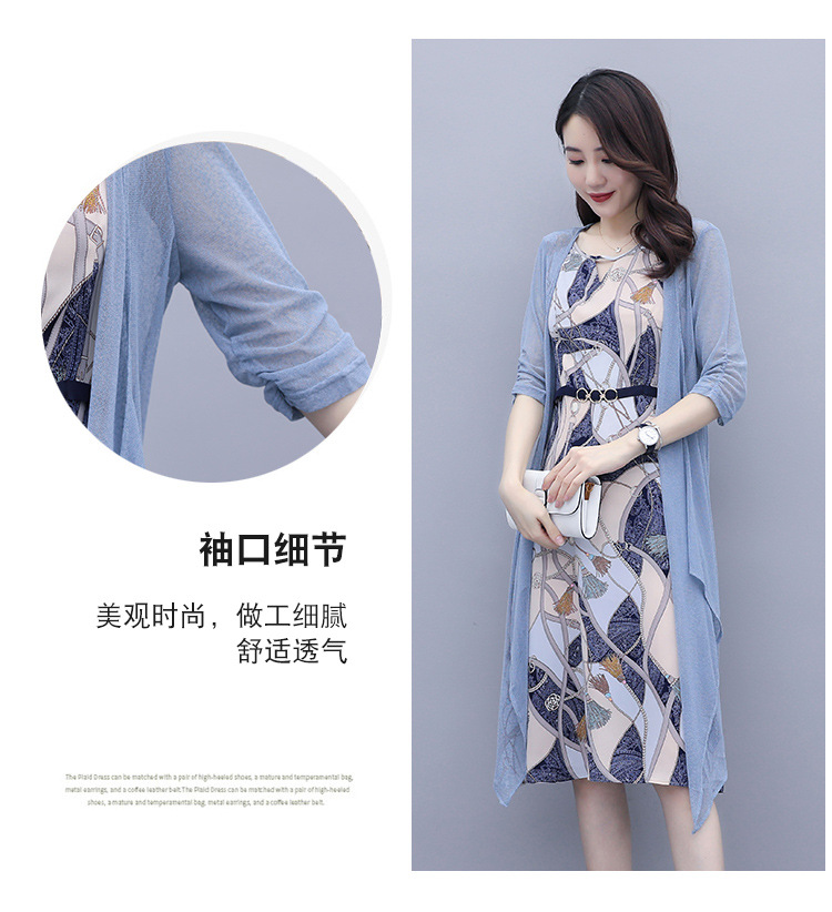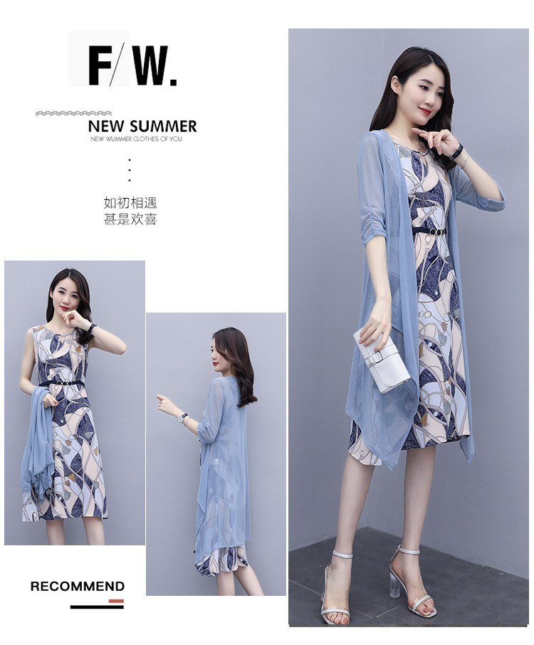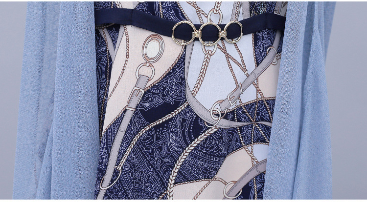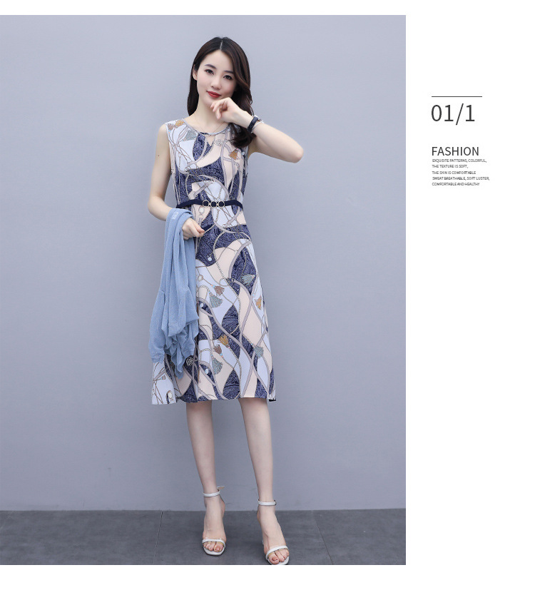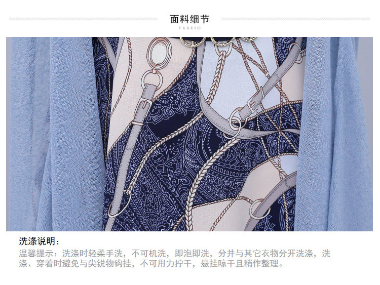 WZNH-WM20669品质款气质优雅中长款印花背带裙两件套配长披肩