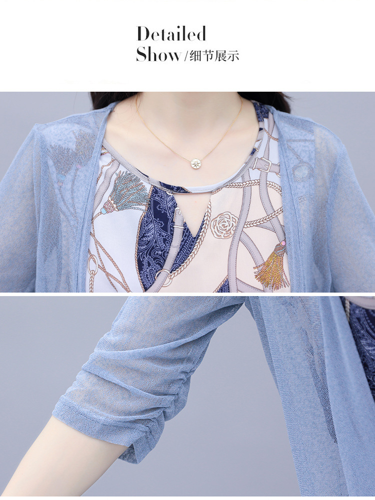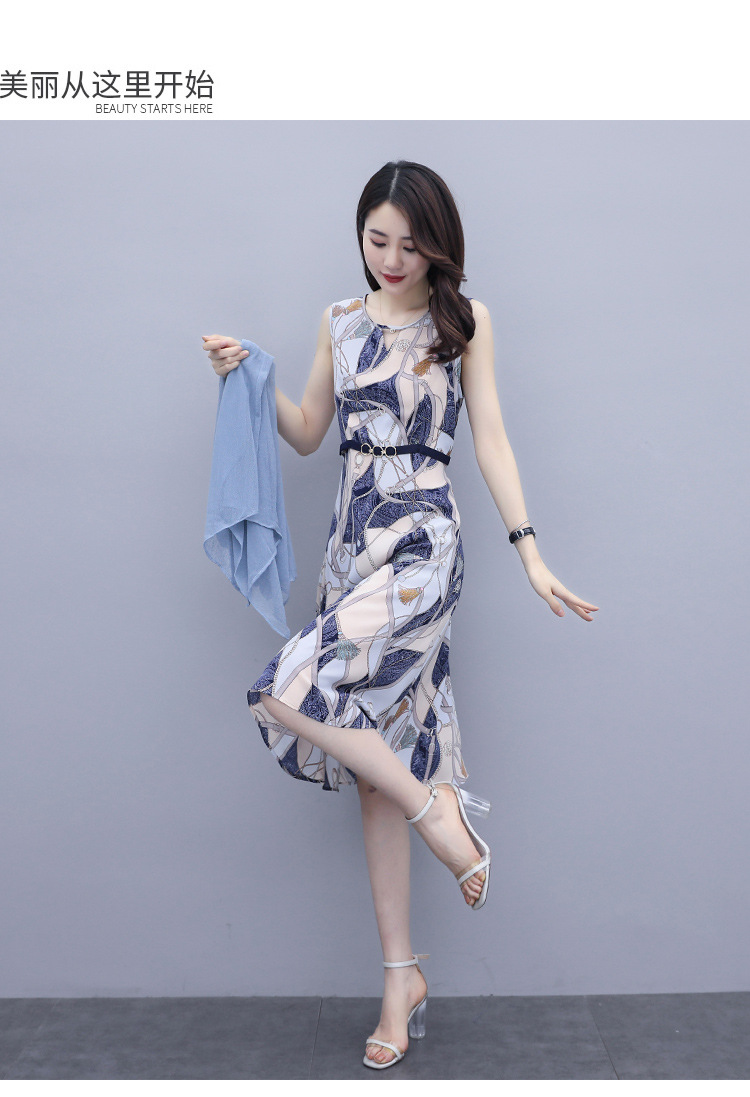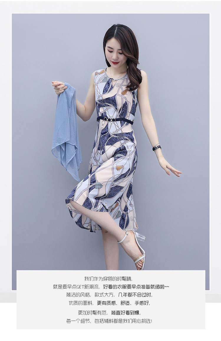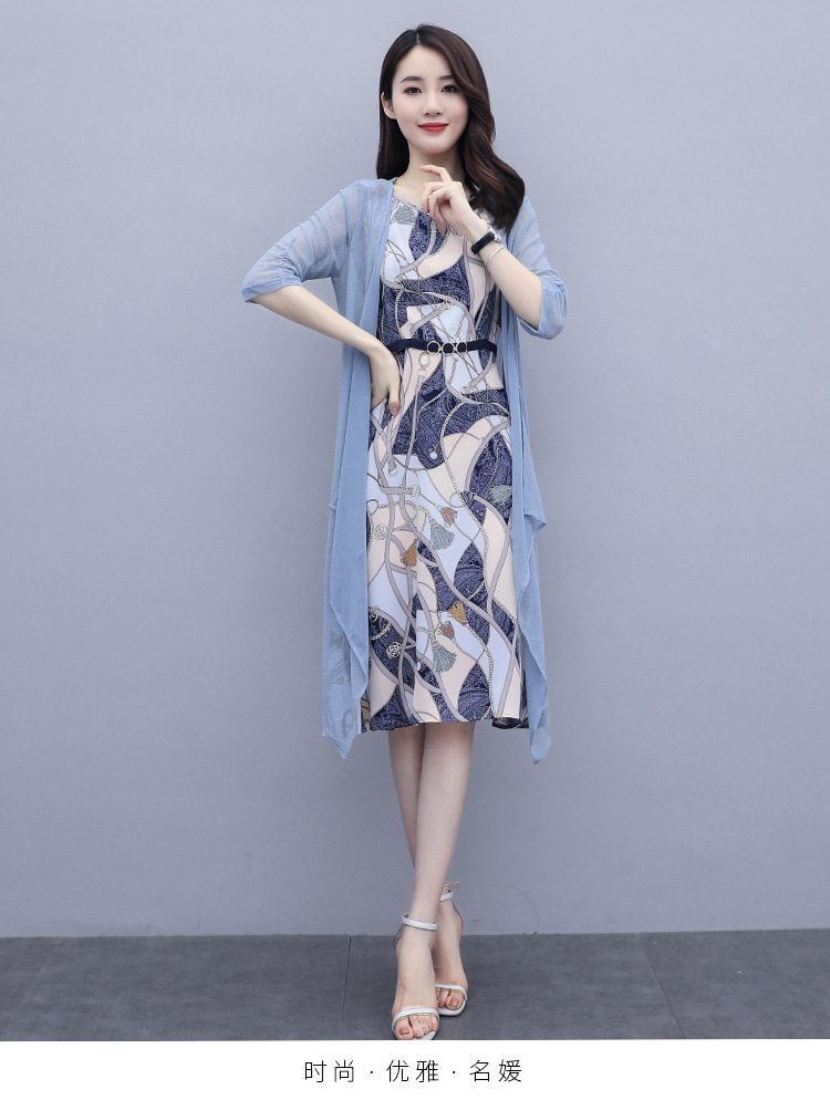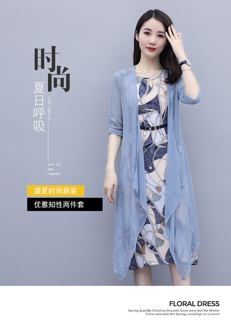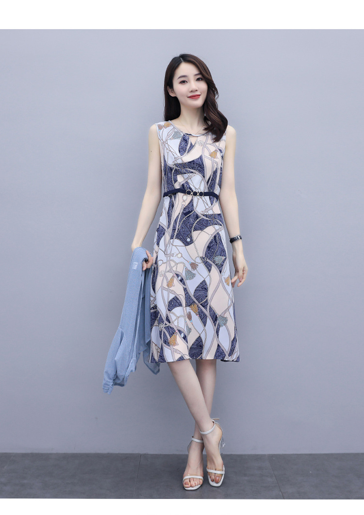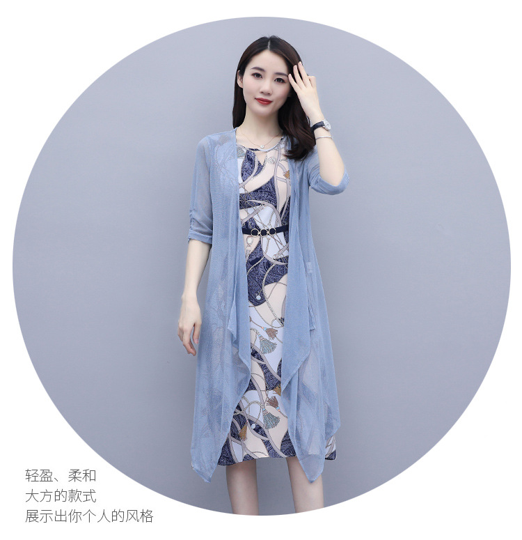 WZNH-WM20669品质款气质优雅中长款印花背带裙两件套配长披肩