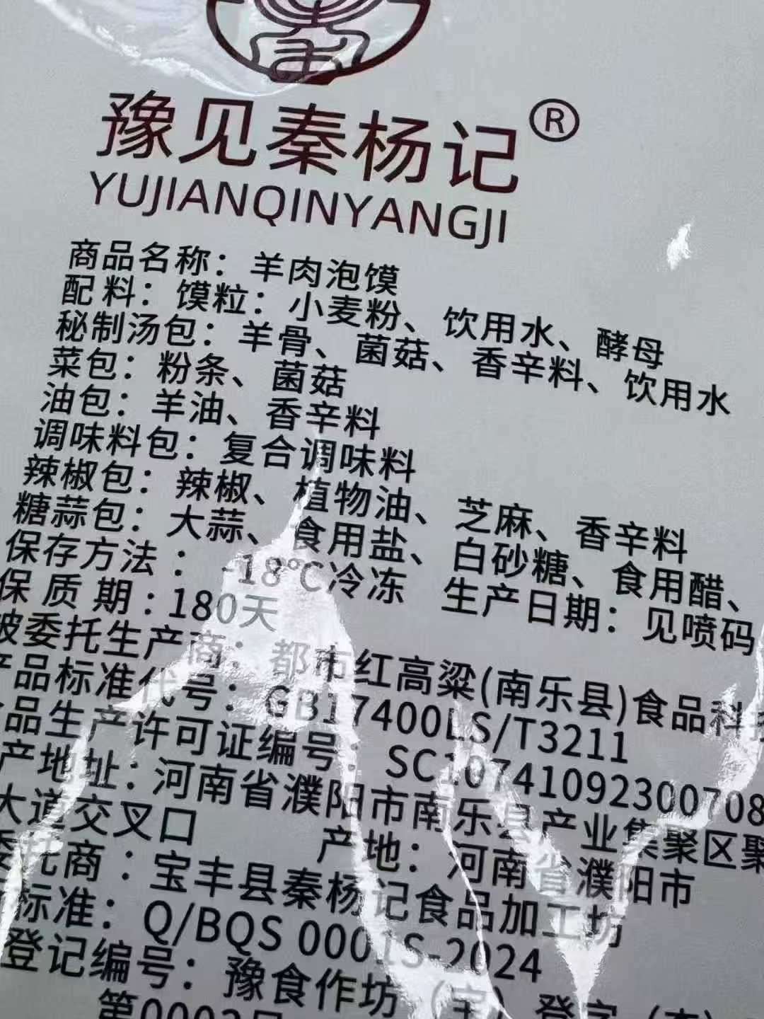 老开封的米线包装实拍,按需拍下即可
