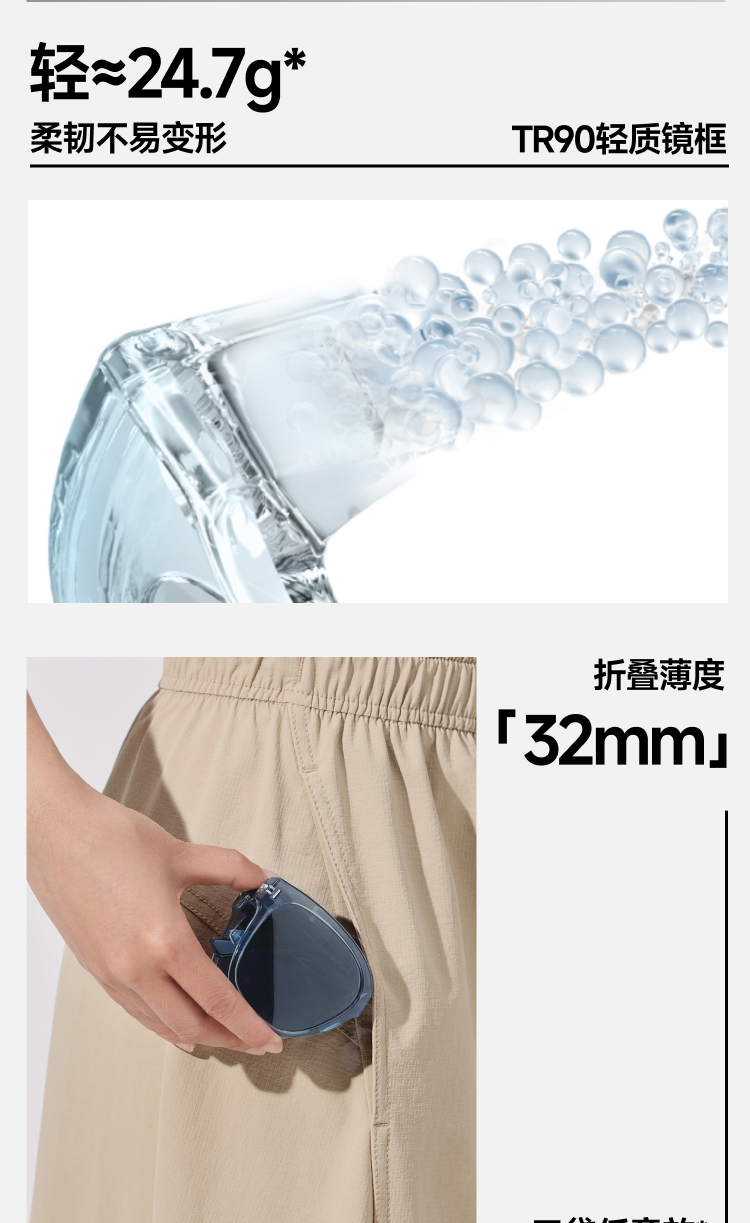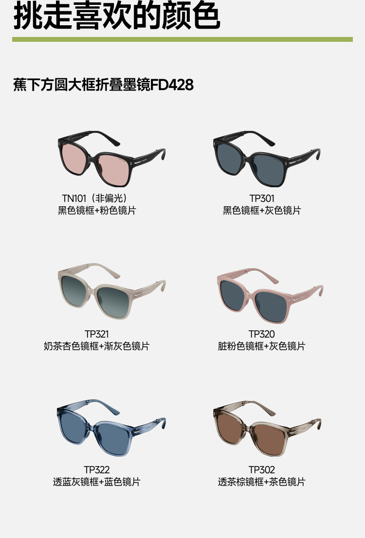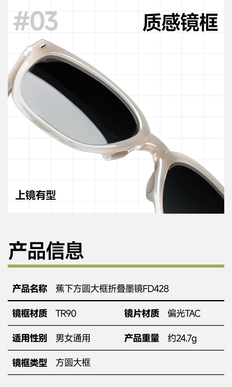 【25年新品】蕉下方圆大框折叠墨镜FD428