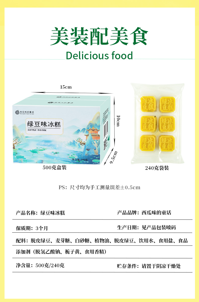 【XG味道】网红糕点·绿豆味冰糕 甄选食材 细腻绵软 清凉爽口 微甜不腻
