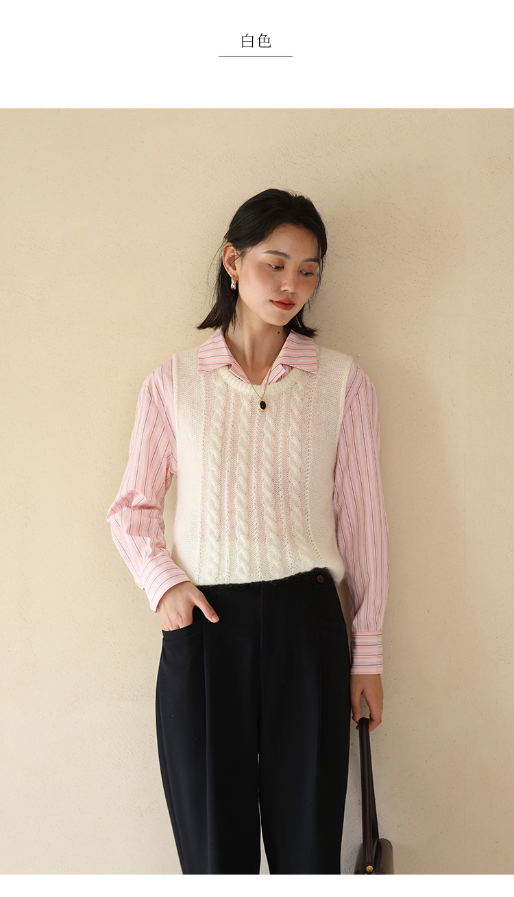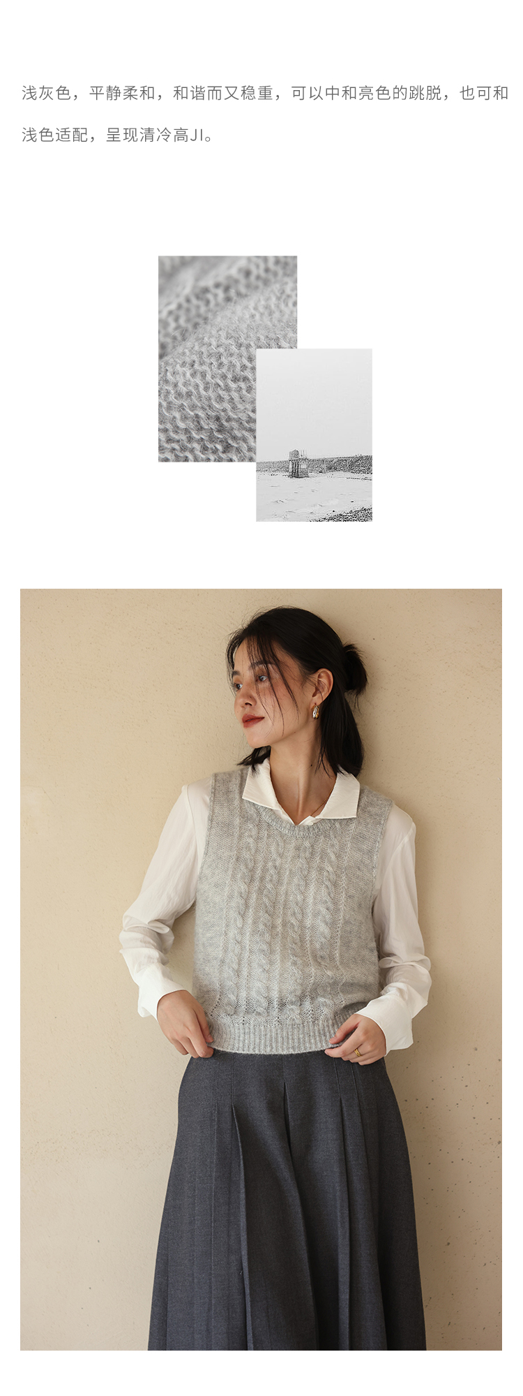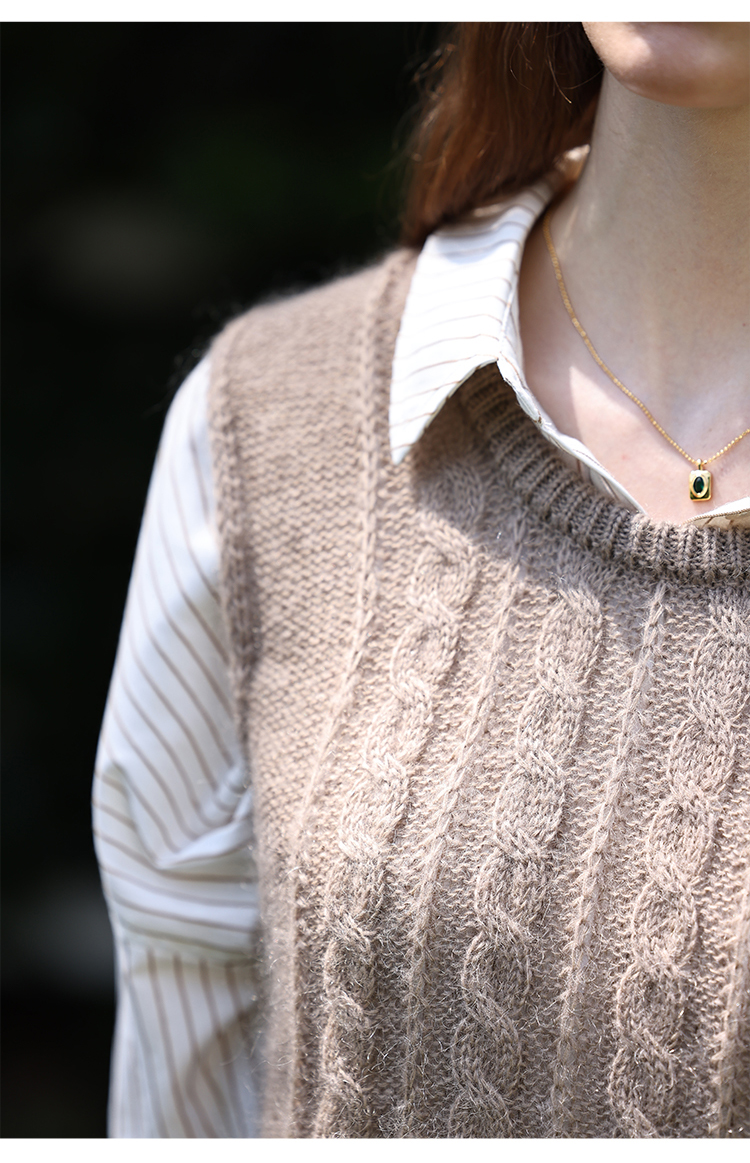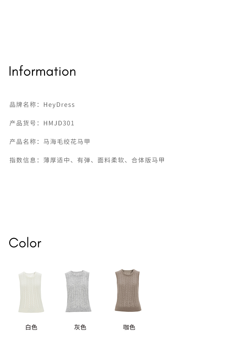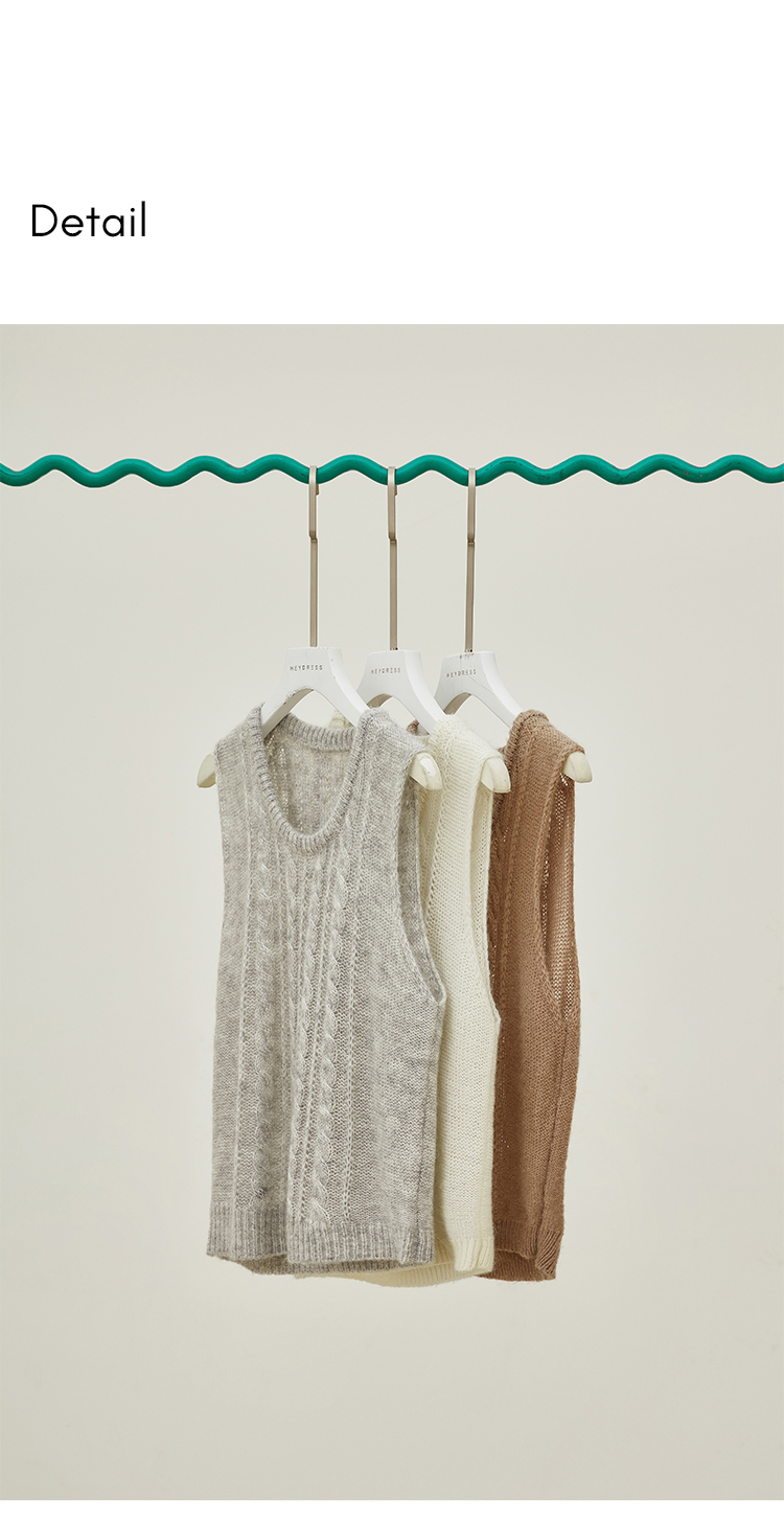 HeyDress马海毛针织马甲背心女秋季圆领宽松叠穿绞花设计羊毛马夹