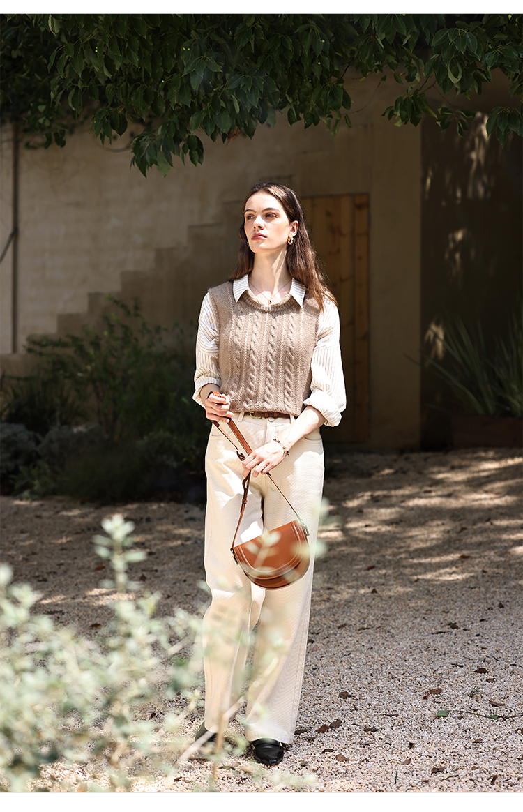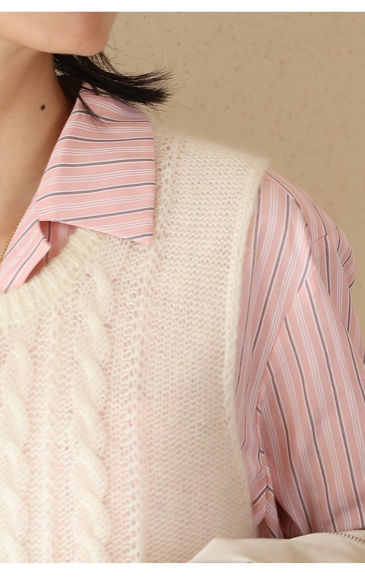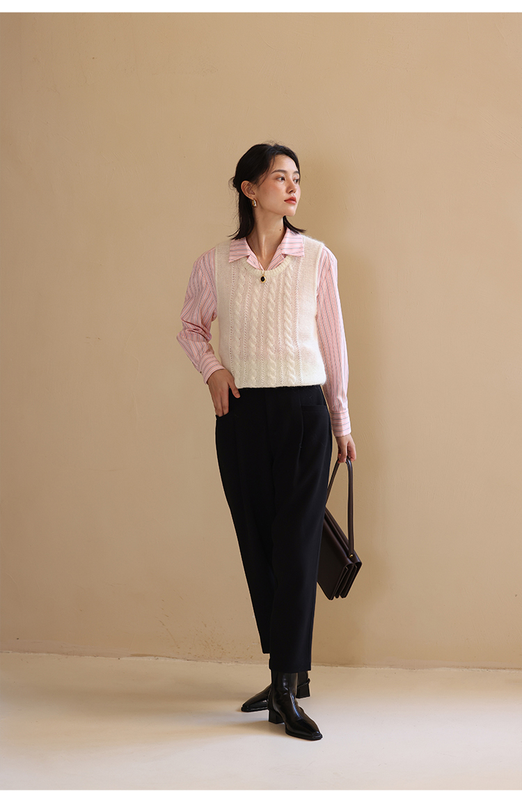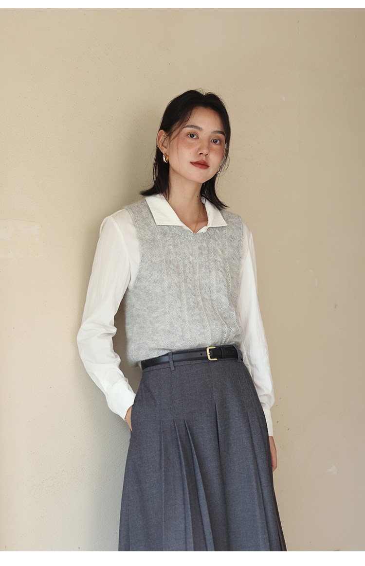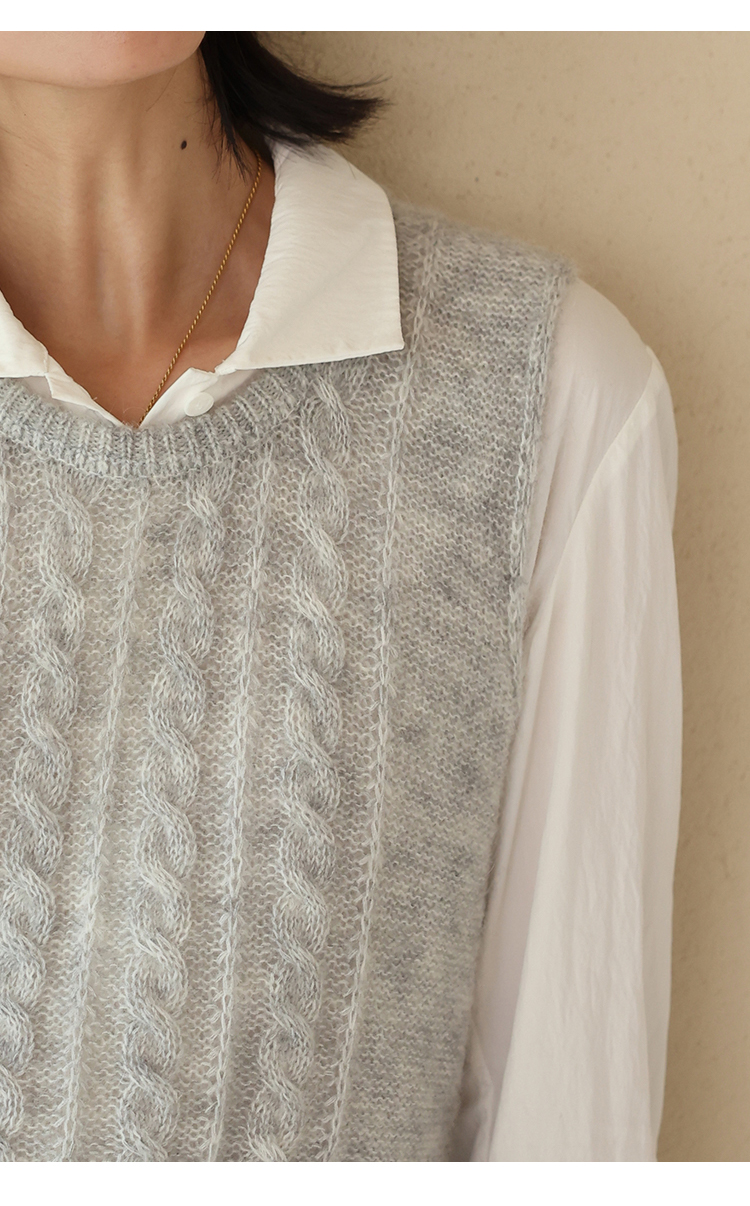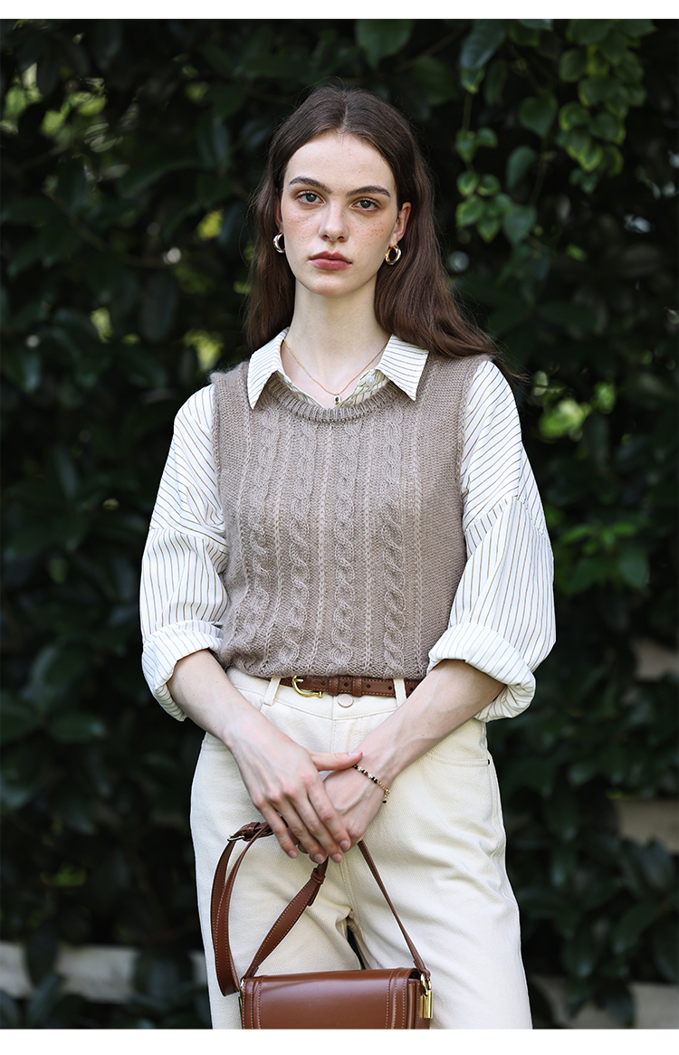HeyDress马海毛针织马甲背心女秋季圆领宽松叠穿绞花设计羊毛马夹