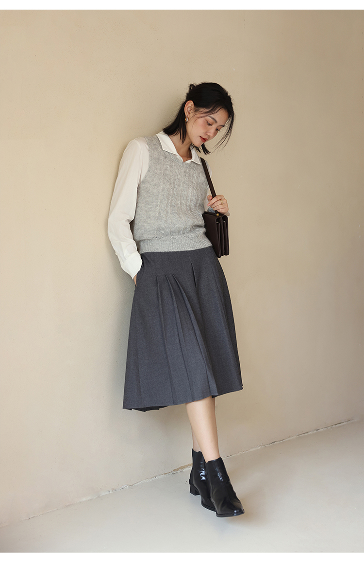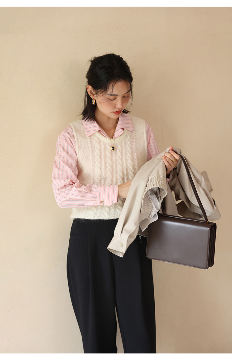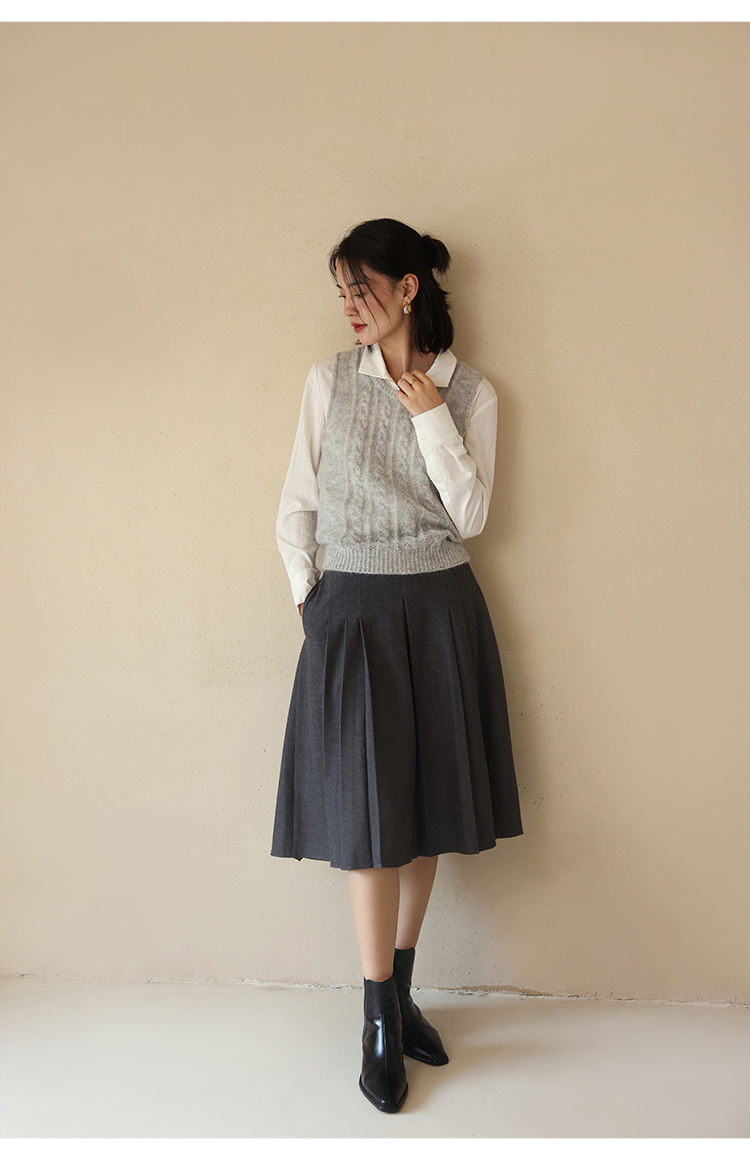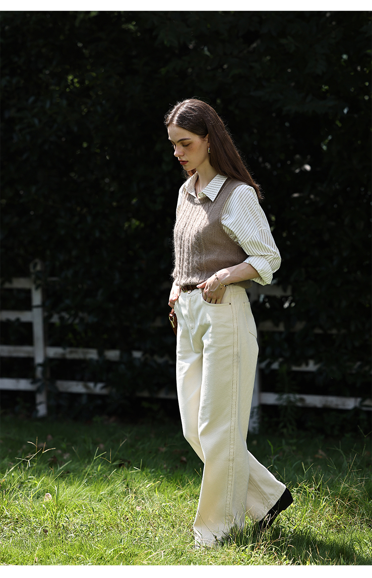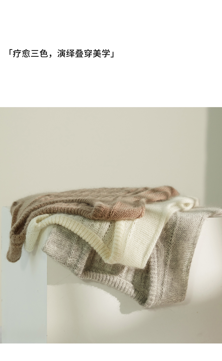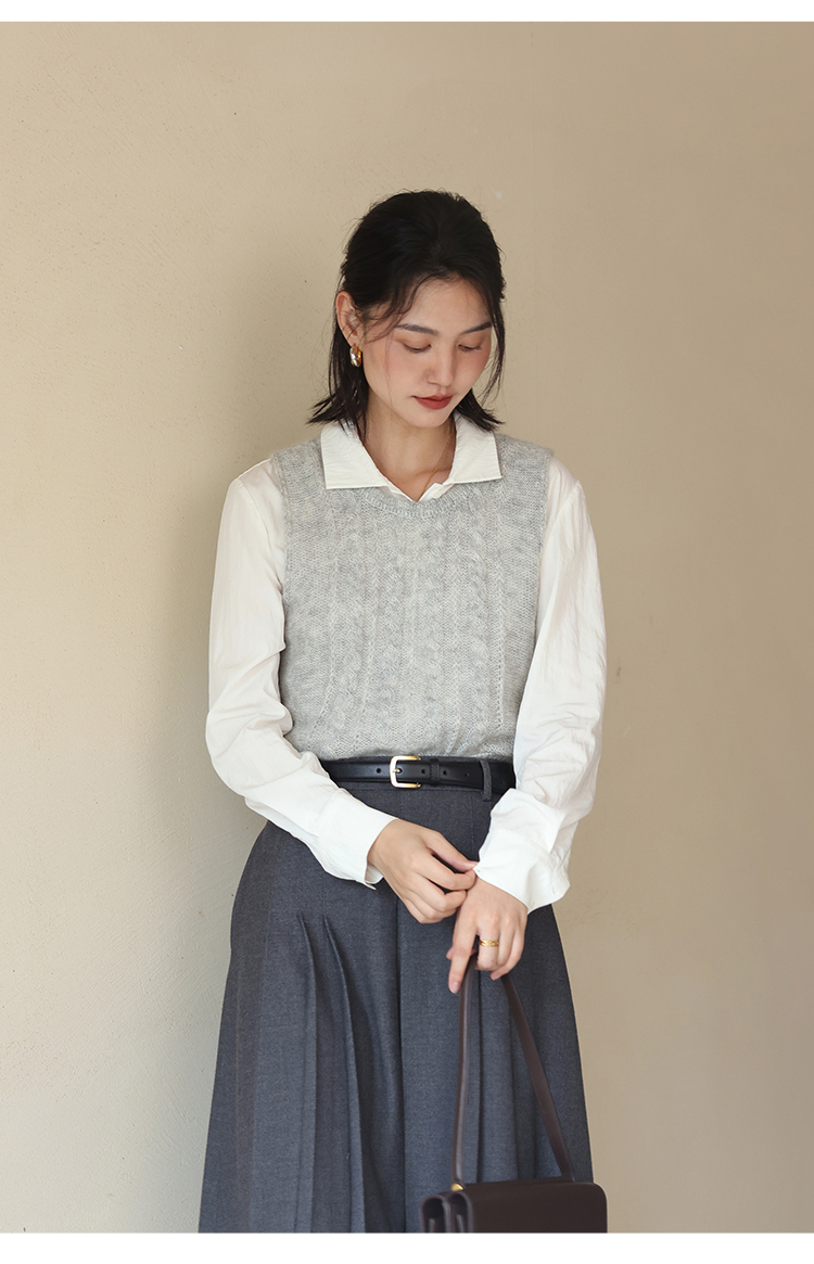 HeyDress马海毛针织马甲背心女秋季圆领宽松叠穿绞花设计羊毛马夹