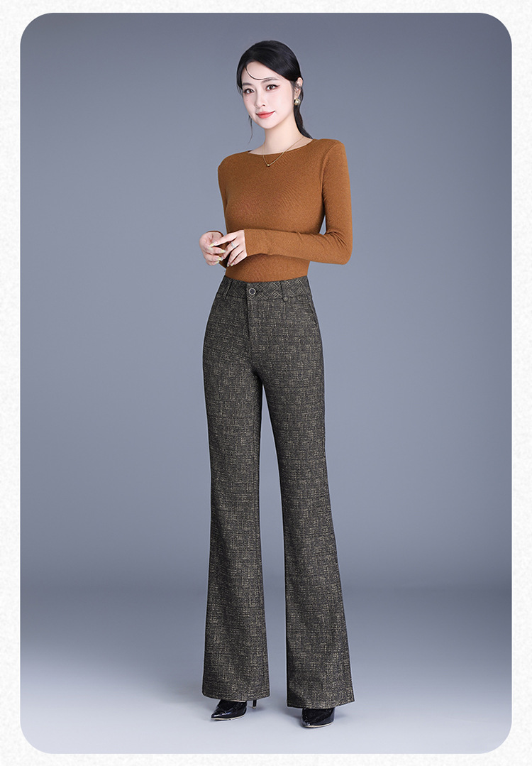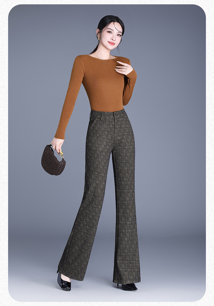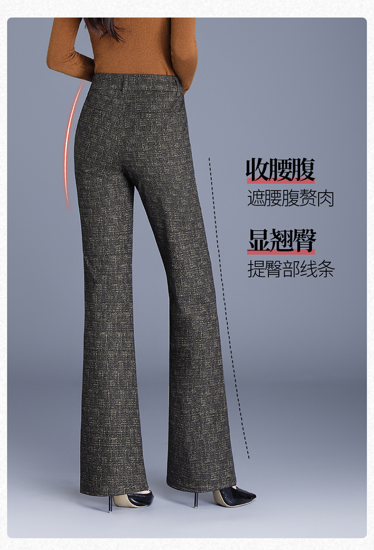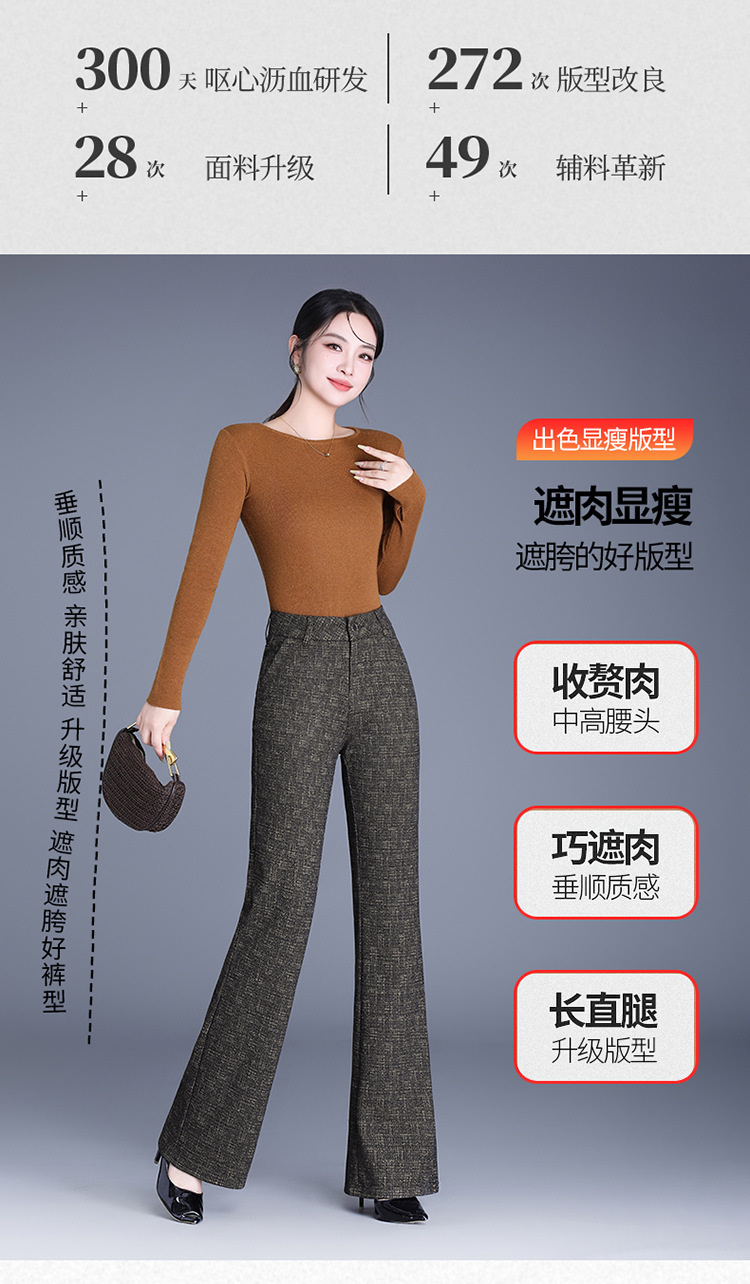 QYM 9851-Y微喇格子西装裤休闲裤气质优雅高腰喇叭裤 商品图1