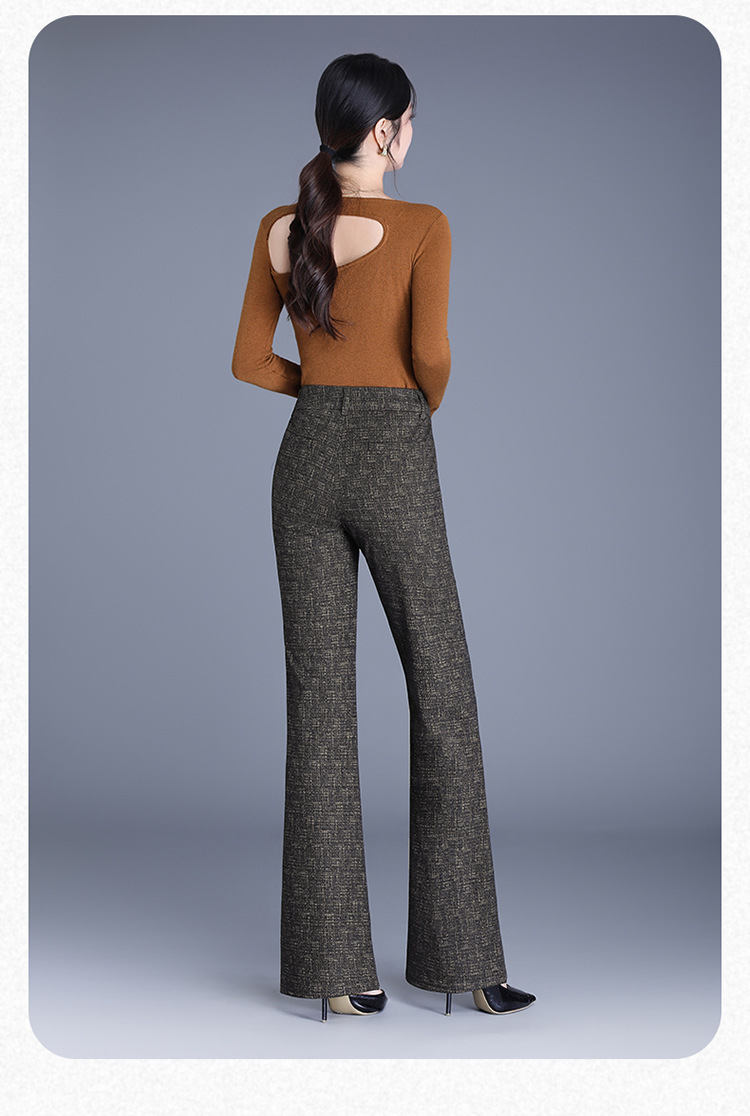 QYM 9851-Y微喇格子西装裤休闲裤气质优雅高腰喇叭裤 商品图3