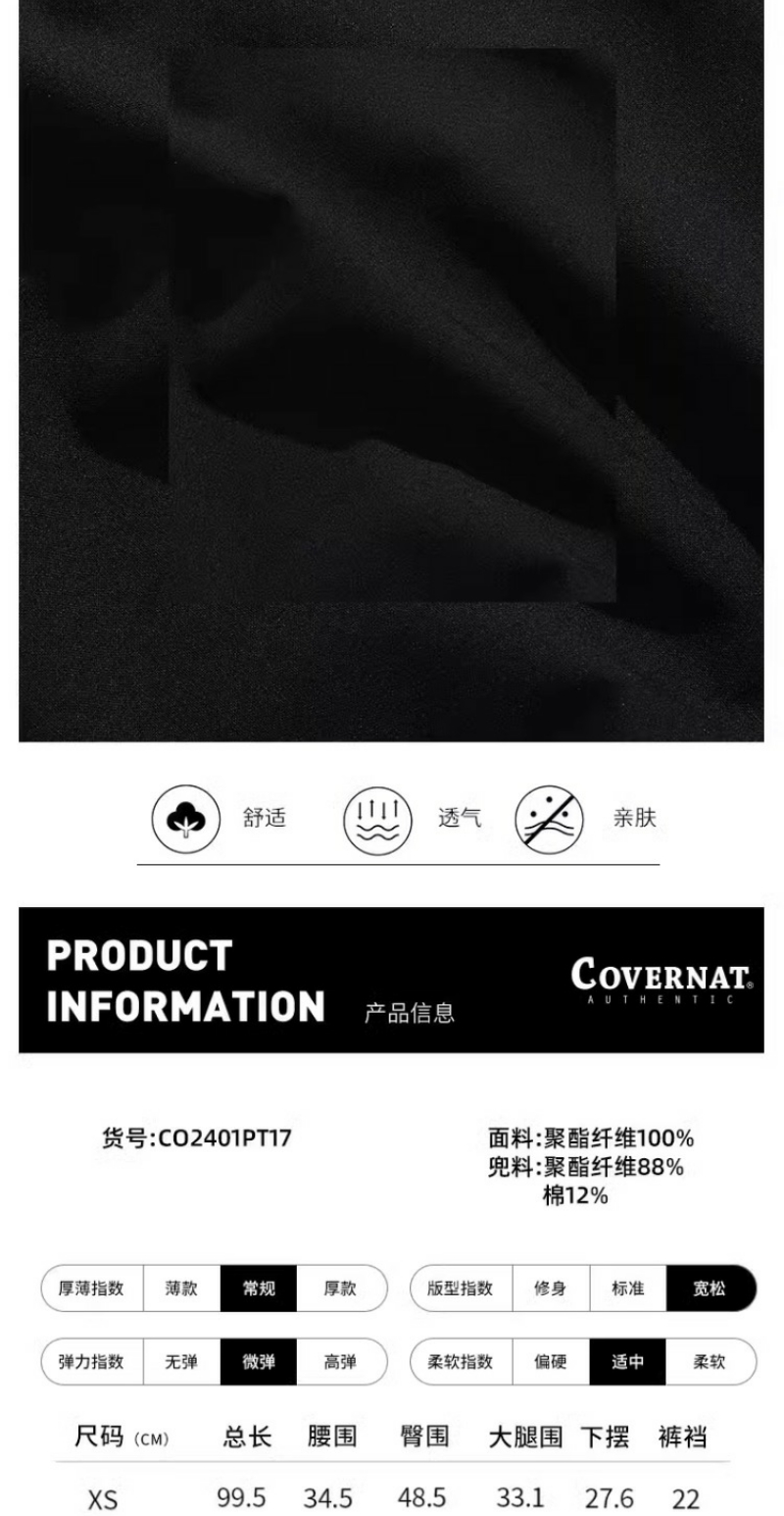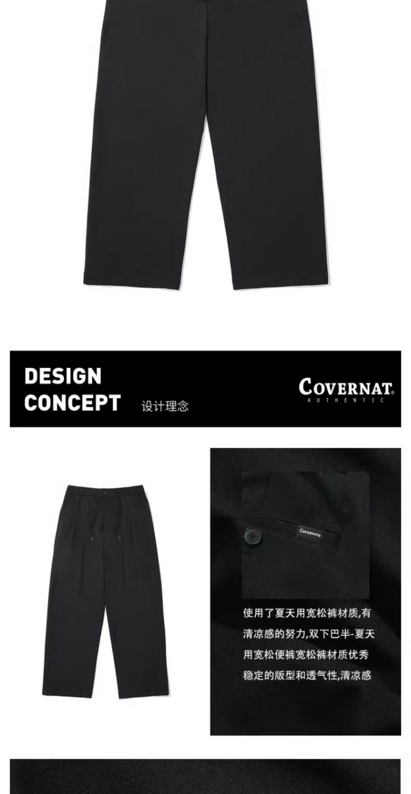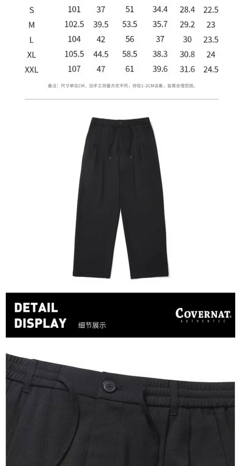covernat韩国潮牌男女半宽松双褶休闲舒适长裤2024春夏新品CO2401PT17