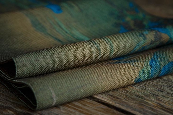 涤麻材质的茶席,《千里江山图》跃然于席面上,