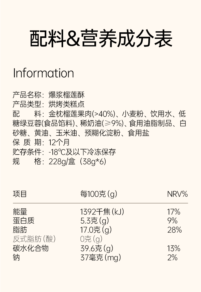 金枕榴莲+安佳动物奶油 | 一款可以烤着吃的无添加榴莲酥饼 零食糕点蛋糕甜品点心 228g/盒(6粒)