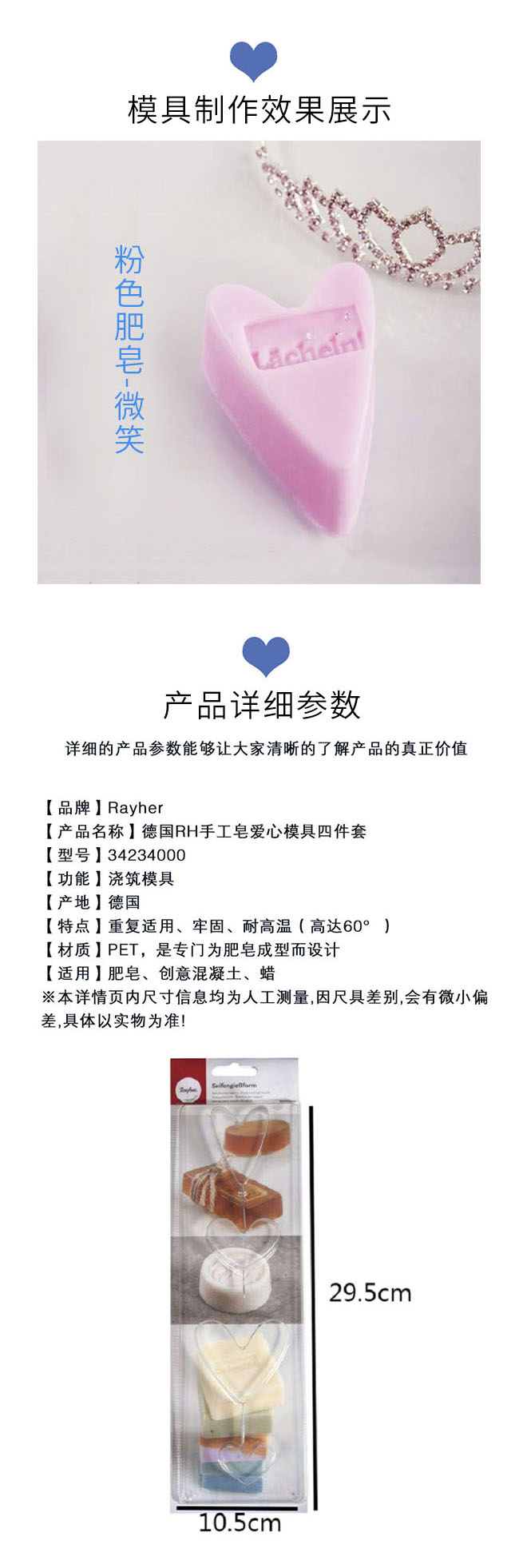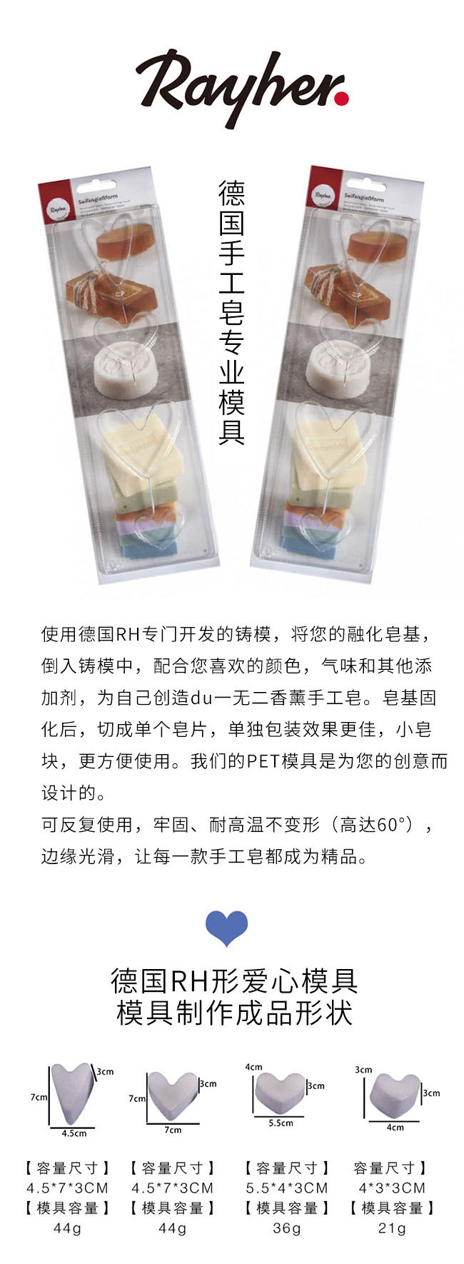 【德国蕊赫RAYHER】手工皂专业模具(爱心)
