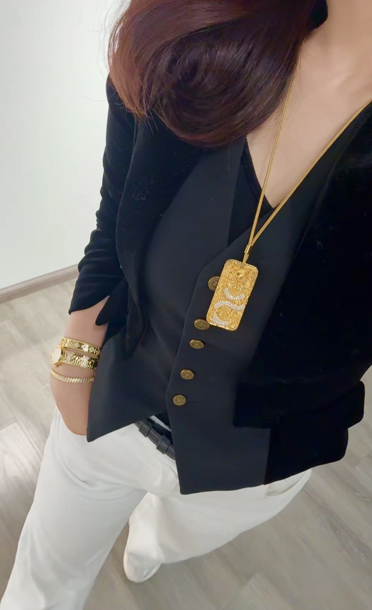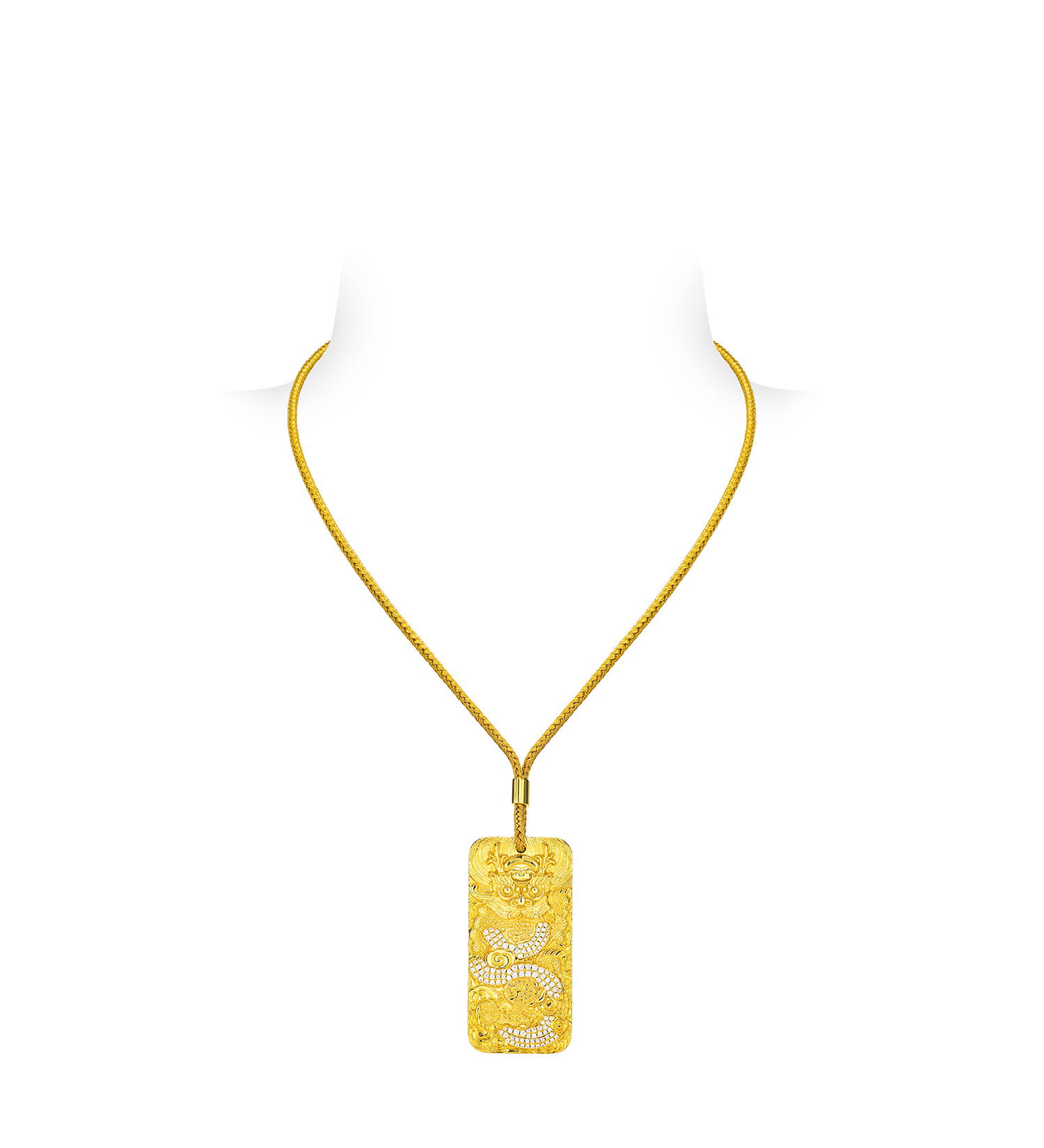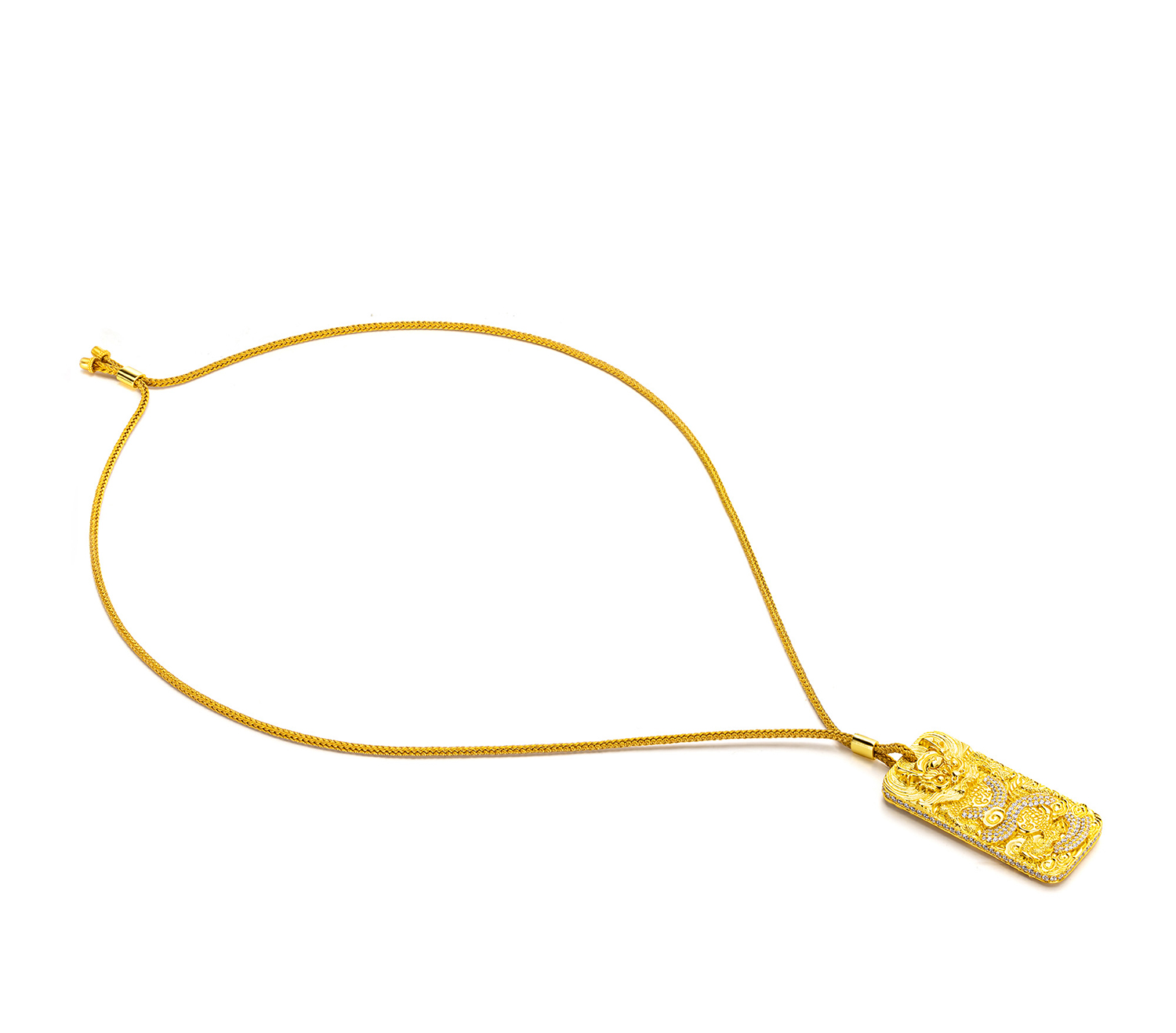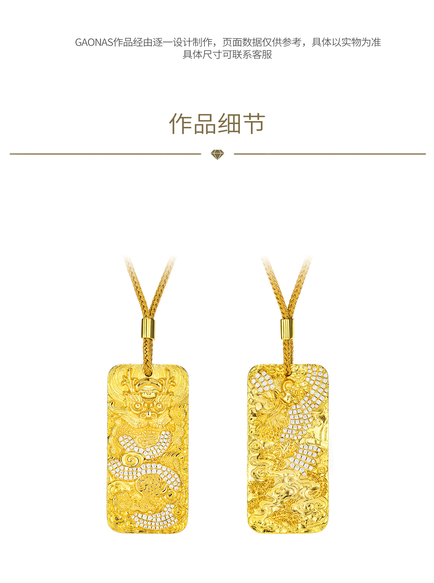 GAONAS 蟠龙富贵祥瑞金色方牌项链11677DGO