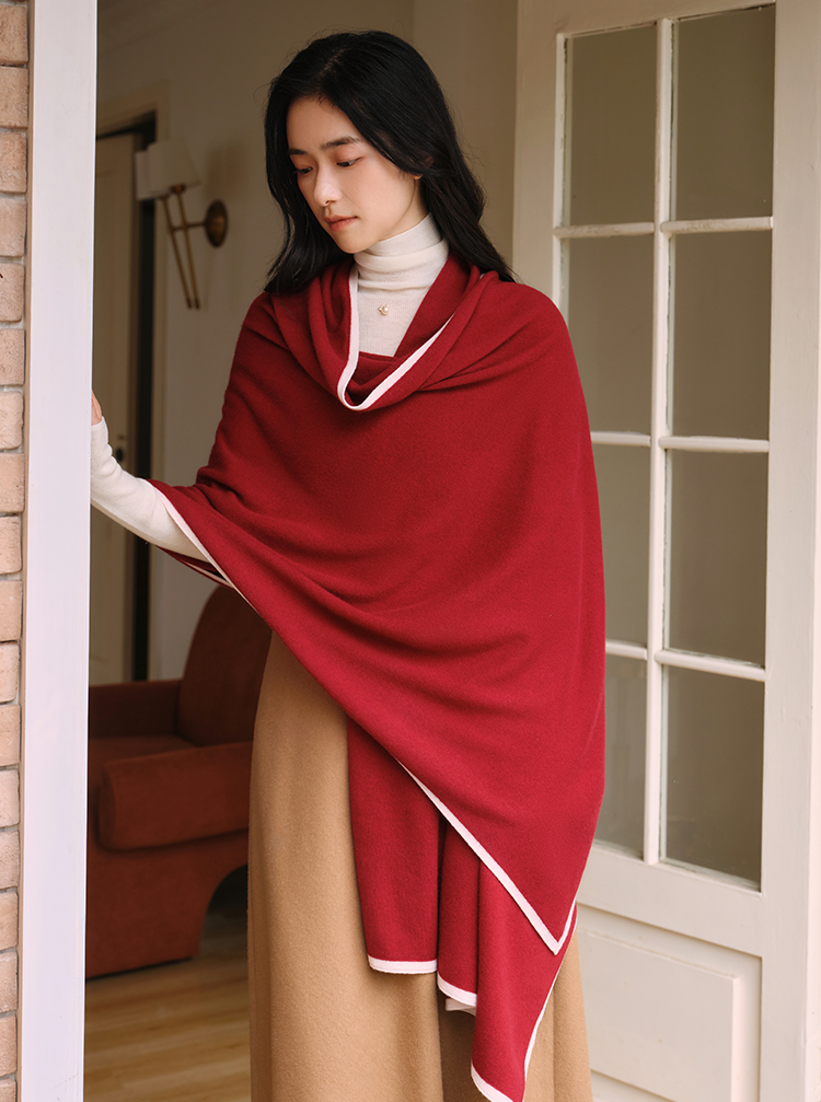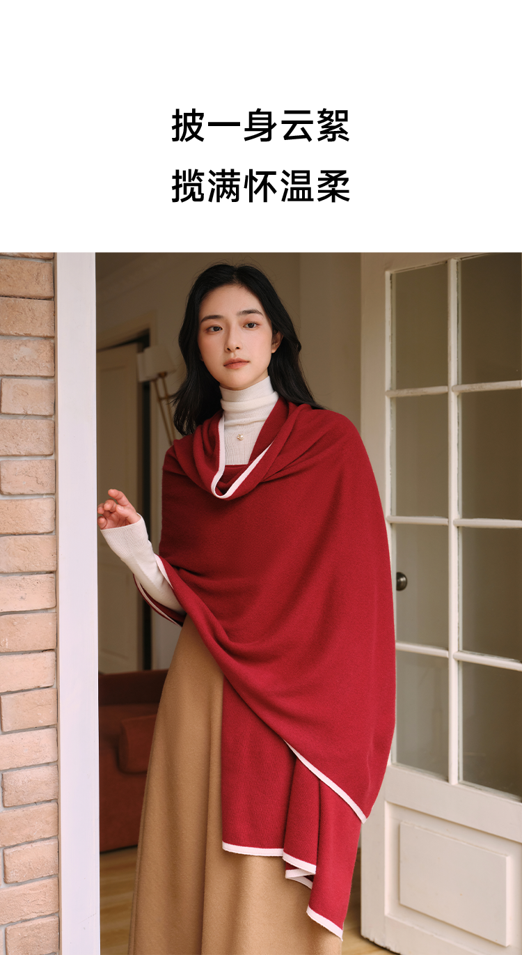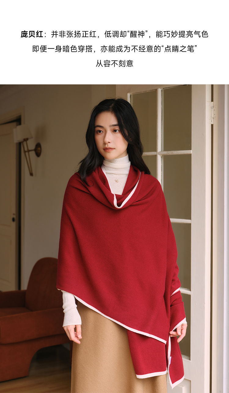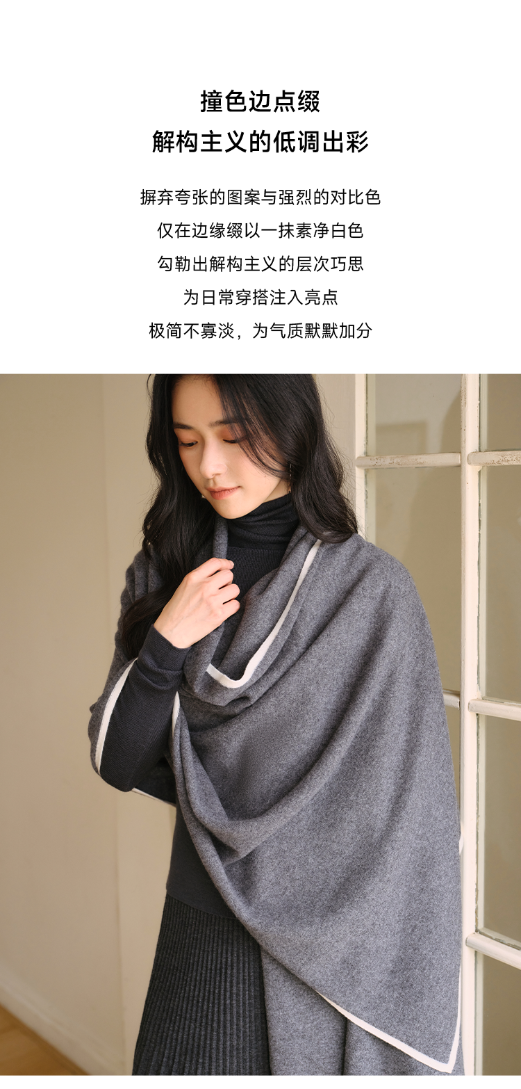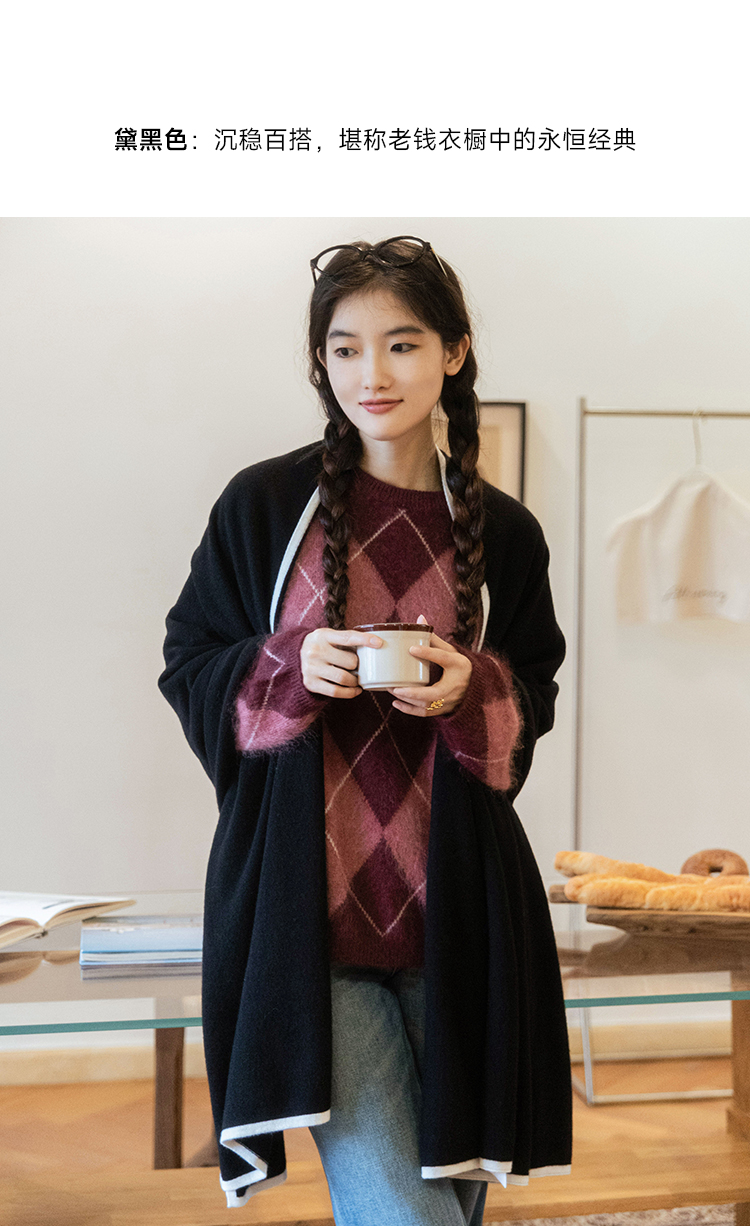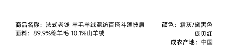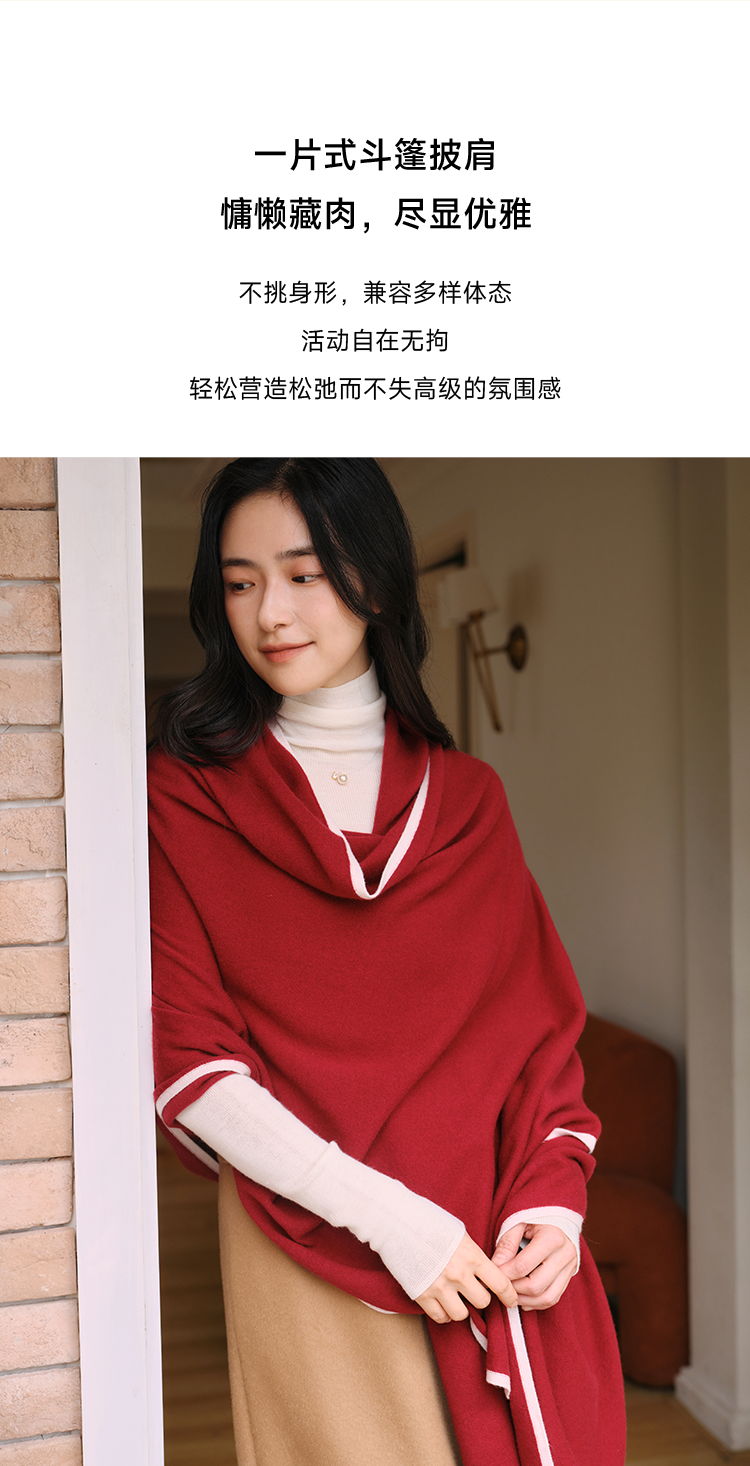 法式老钱 羊毛羊绒混纺百搭斗篷披肩FCF3SAF091
