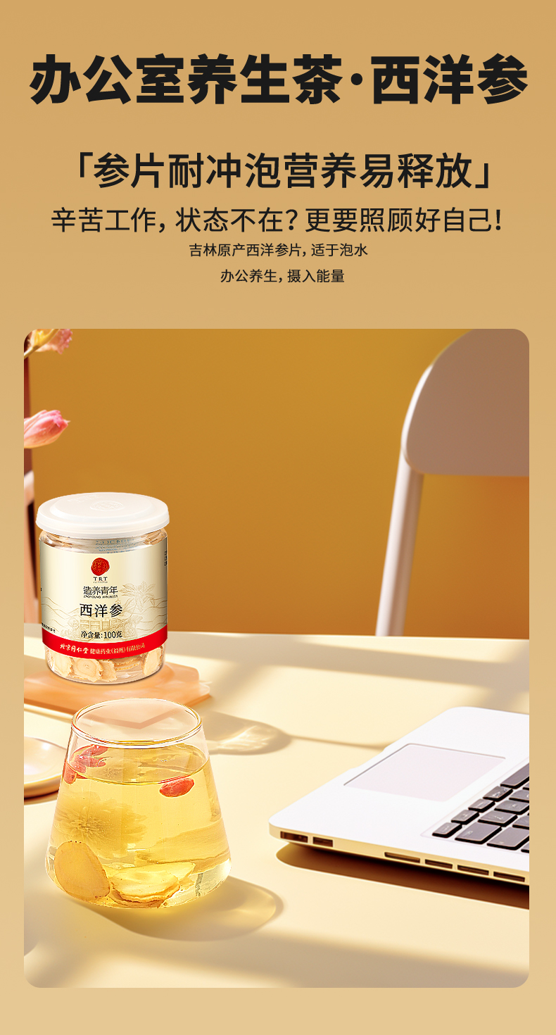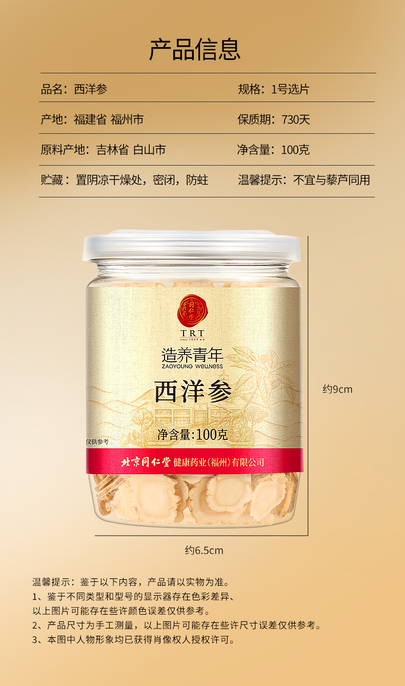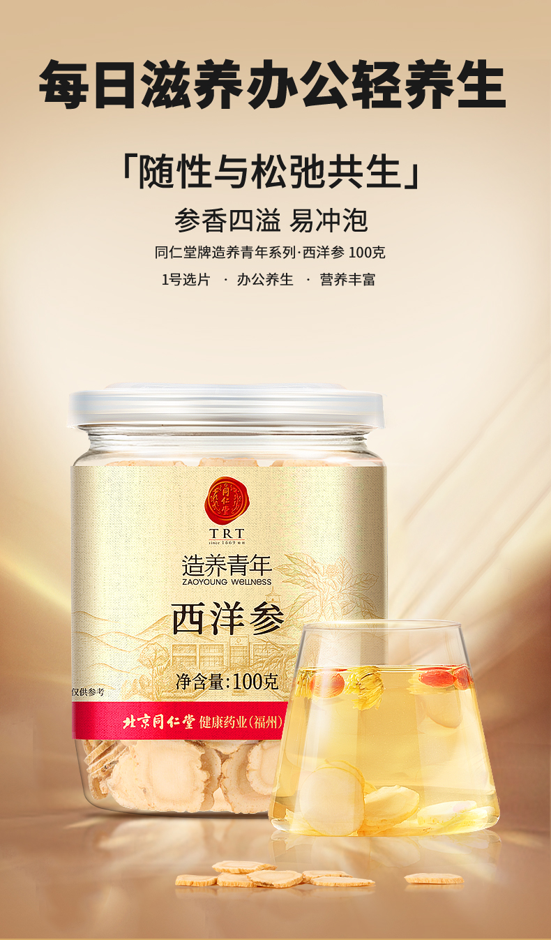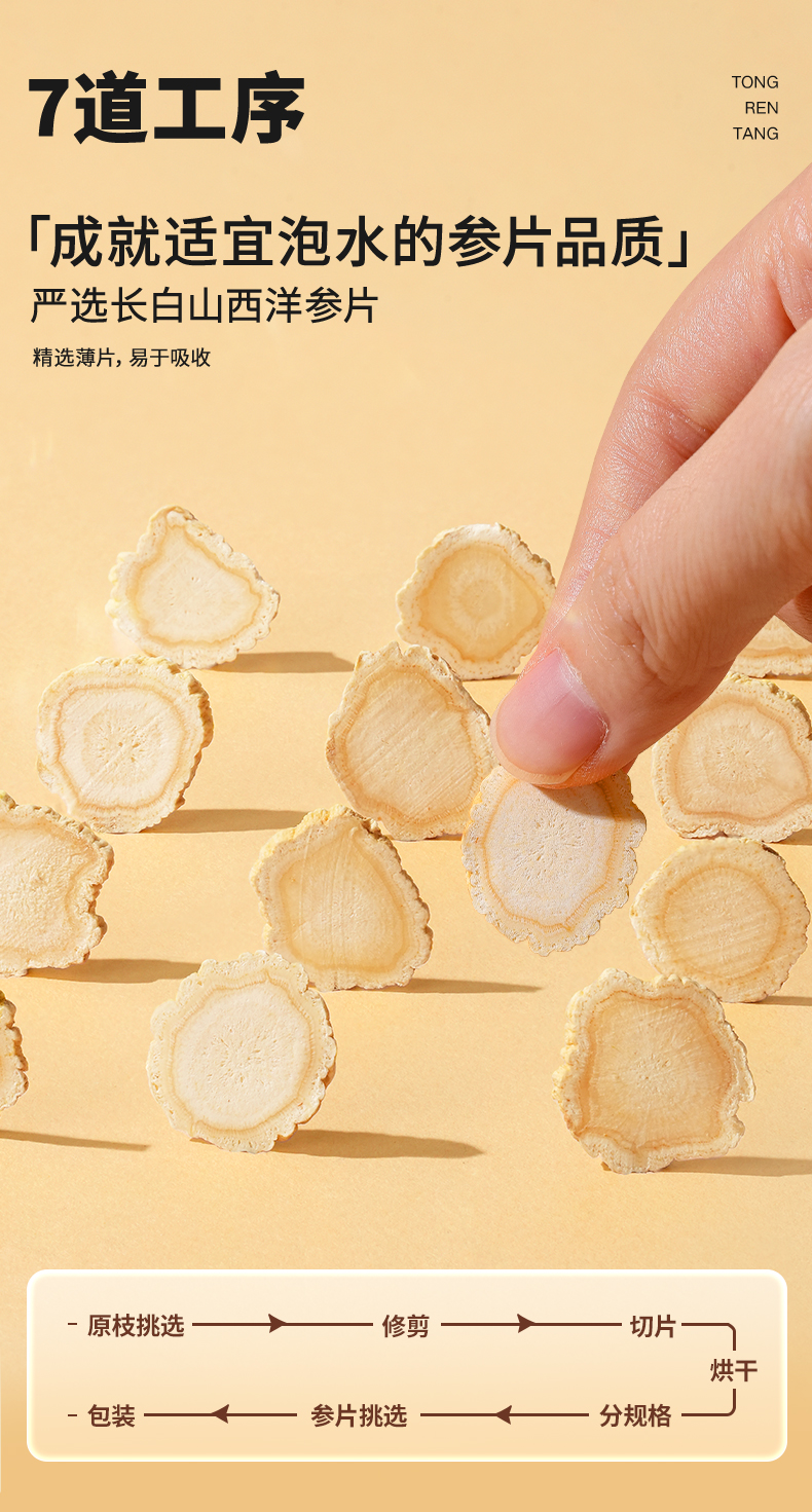 【正宗同仁堂品牌】北京同仁堂 国产西洋参(2.0-3.0厚片)100克 长白山优质西洋参 参香四溢SY