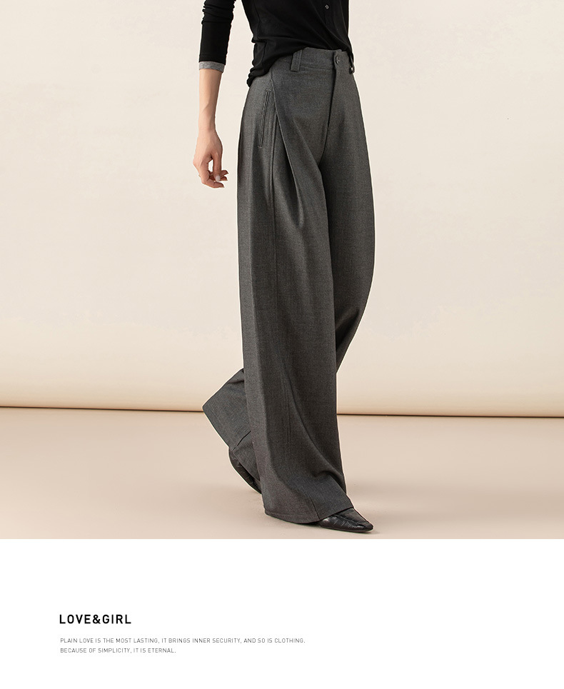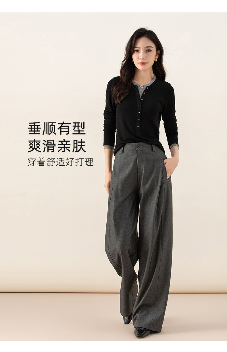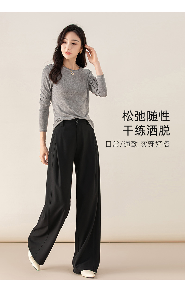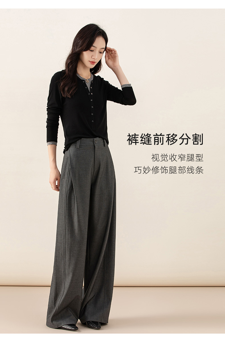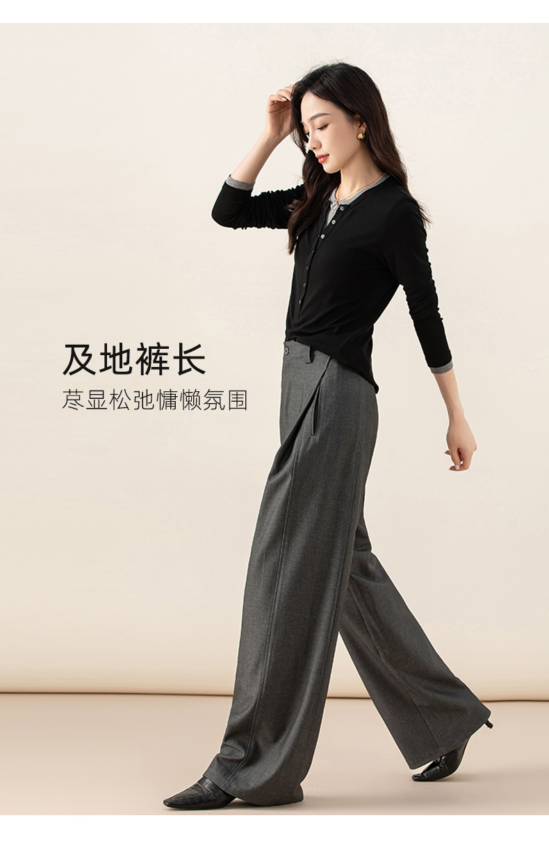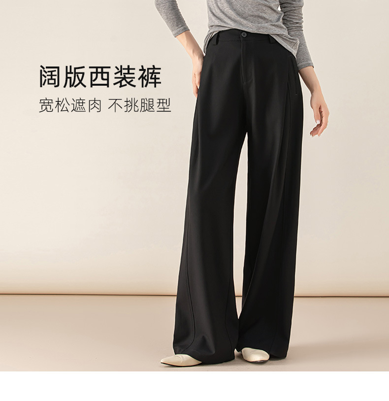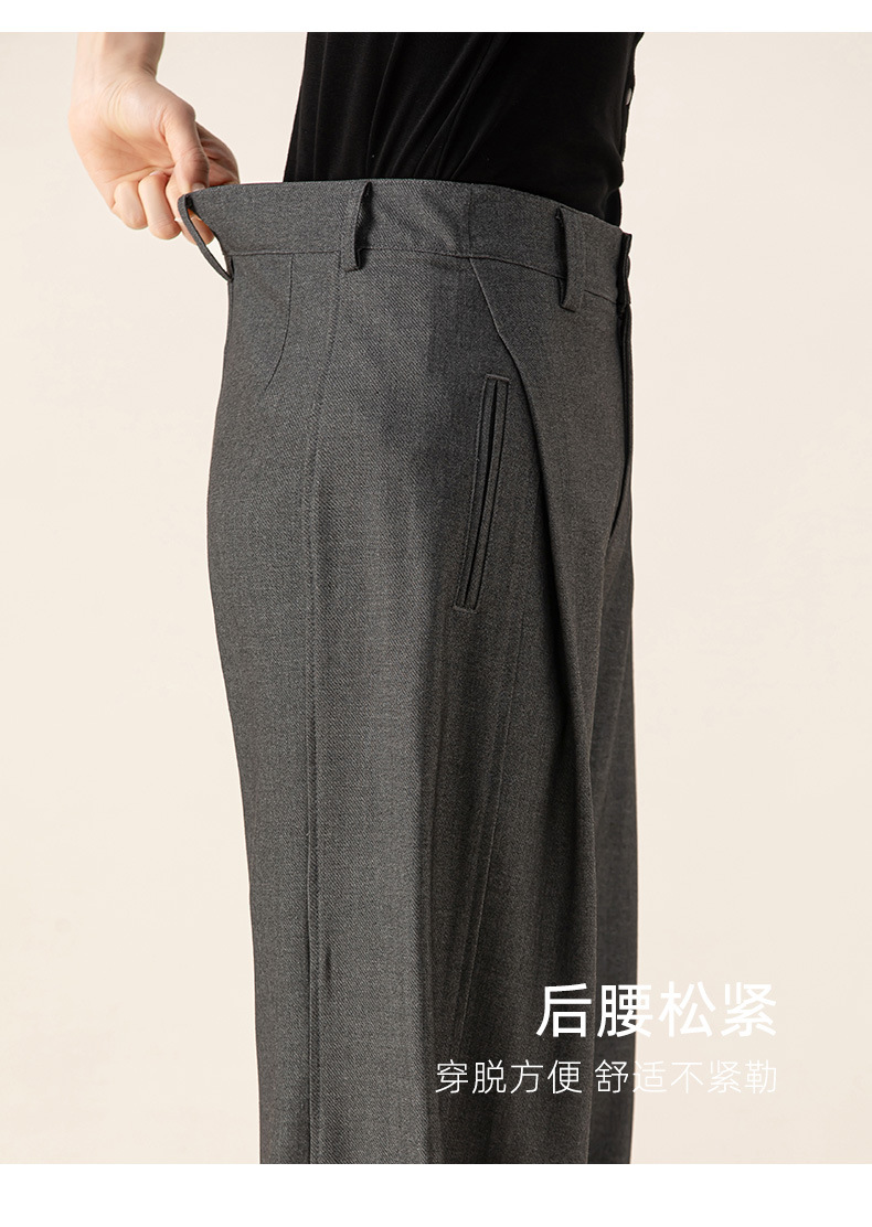 丁摩 天丝羊毛春新款黑色阔腿西装裤女褶皱宽松垂感西裤休闲裤6ZF-5301