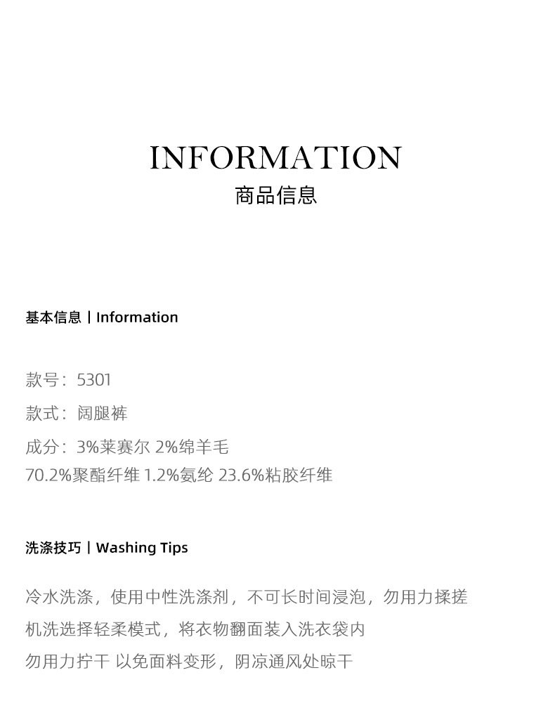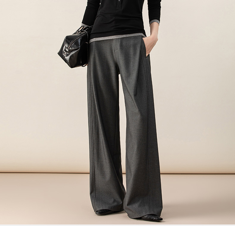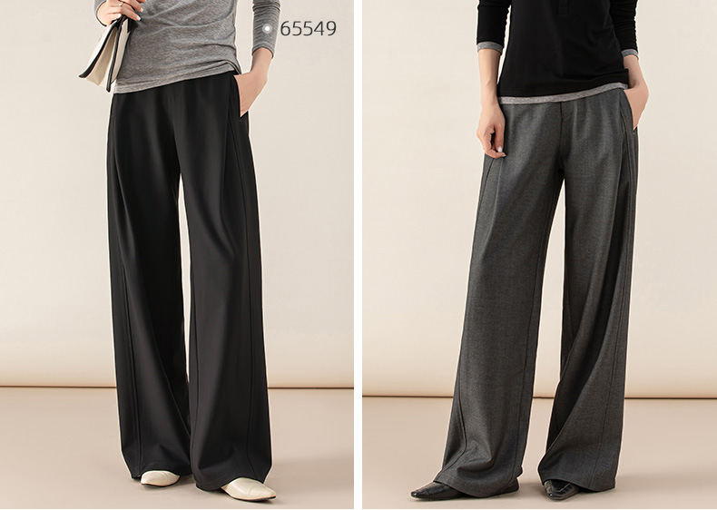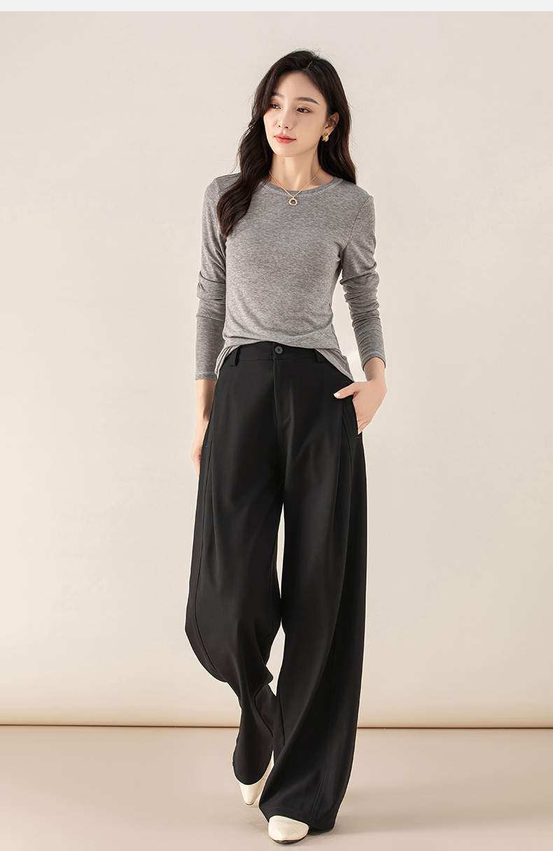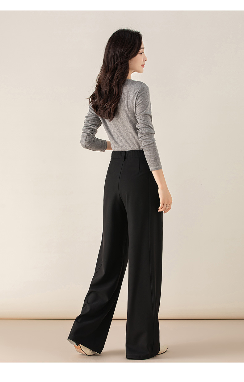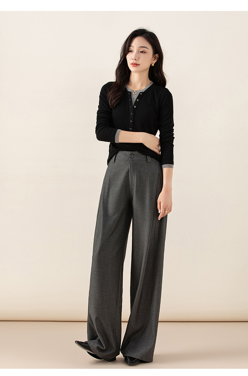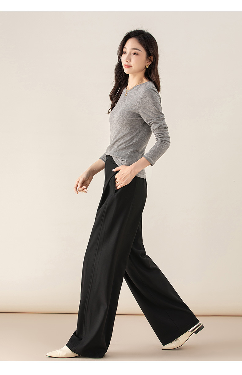 丁摩 天丝羊毛春新款黑色阔腿西装裤女褶皱宽松垂感西裤休闲裤6ZF-5301
