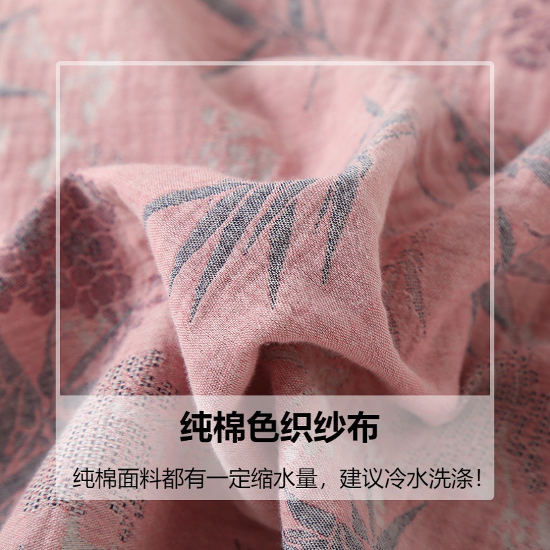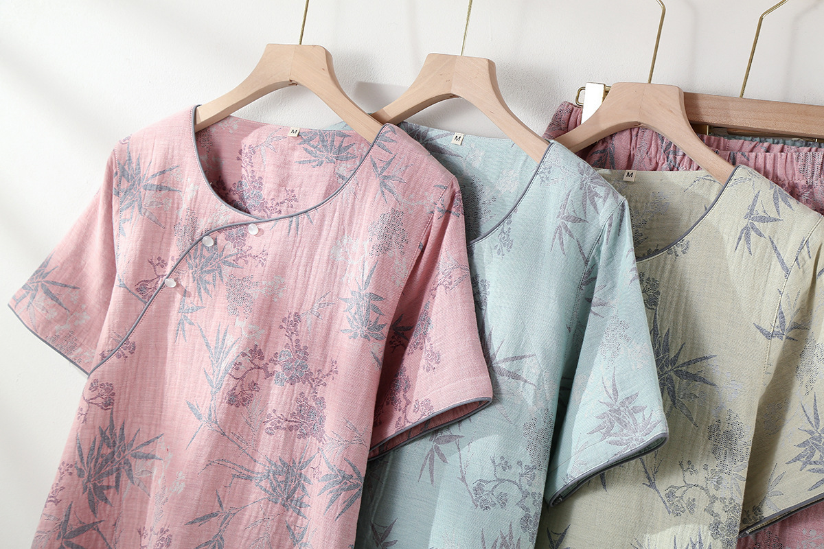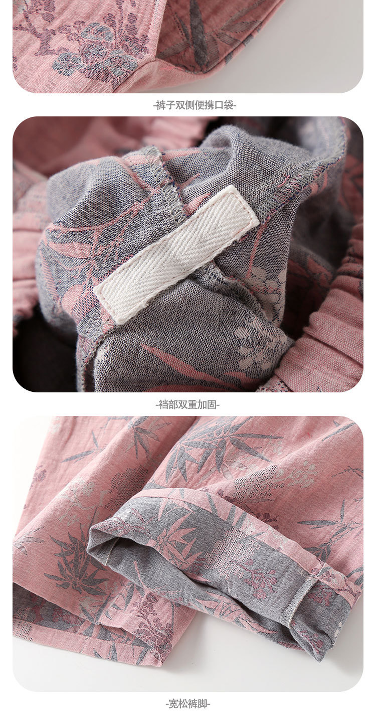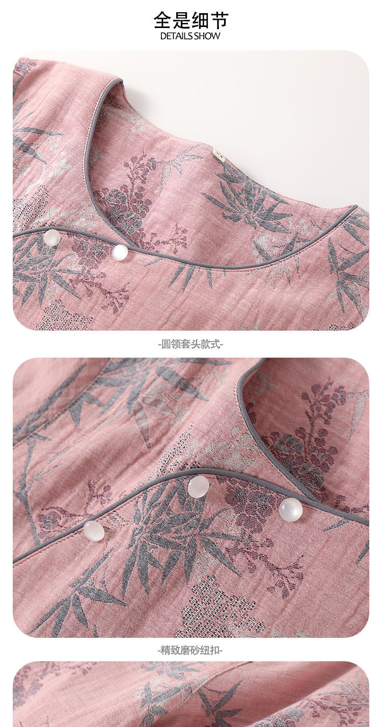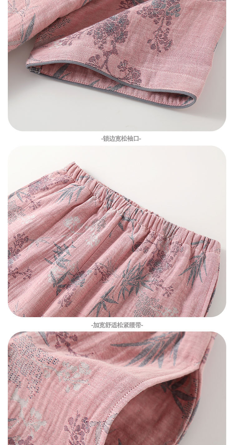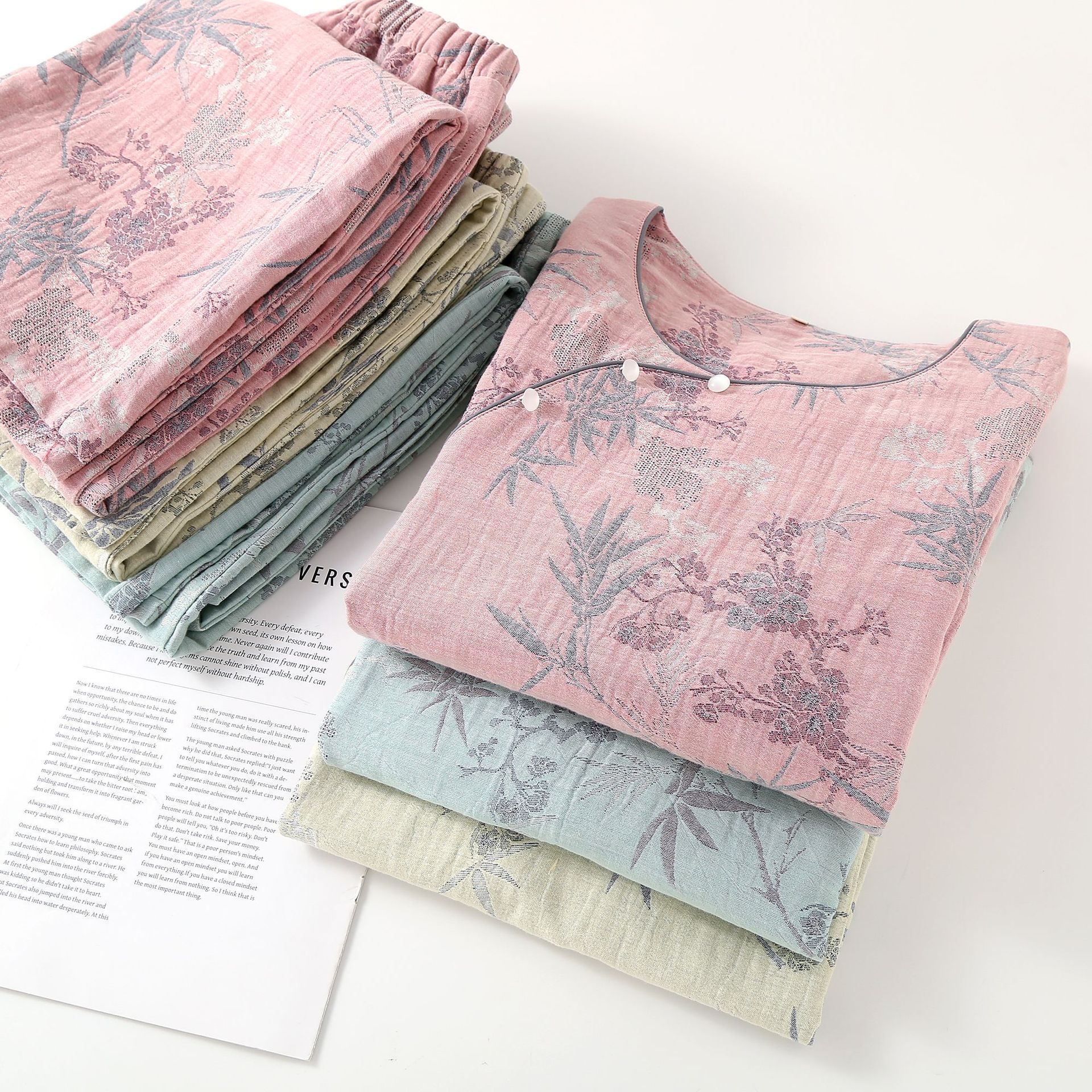 雀说 国风提花纯棉双层纱睡衣女短袖九分裤宽松家居服套装