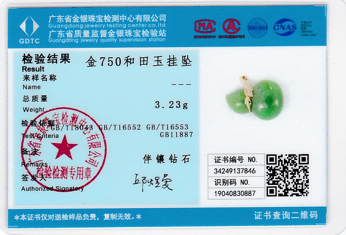 18K玫瑰金和田玉(碧玉)吊坠