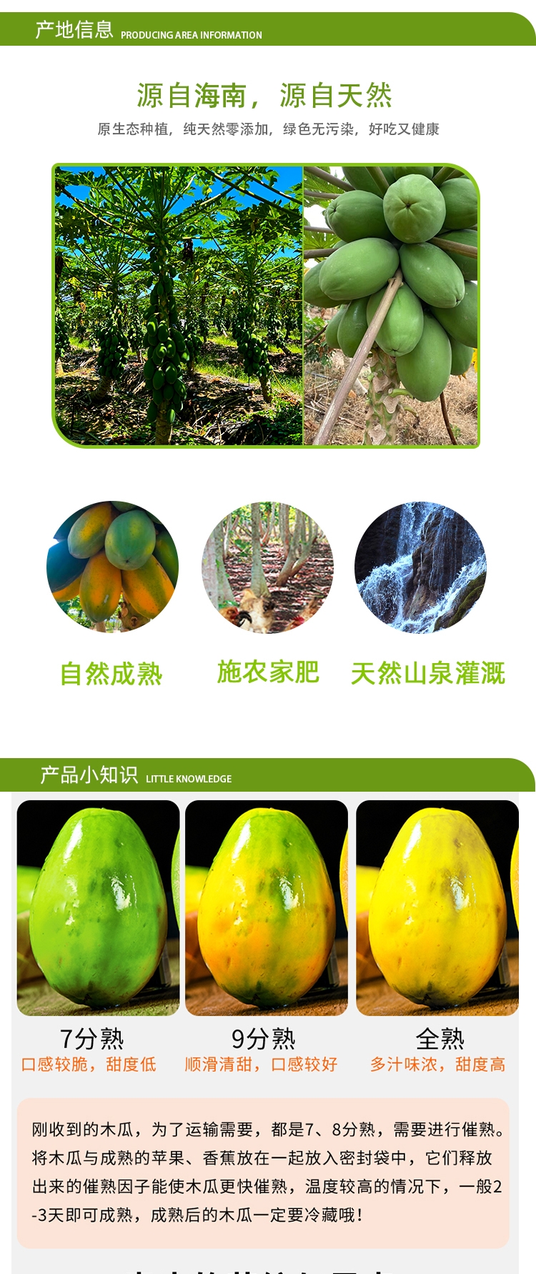 2. 木瓜收到后表皮微黄即可食用,全黄口感更好,偏青的木瓜可自行催熟后再食用(过熟的木瓜容易坏且口感偏软,对影响口感)