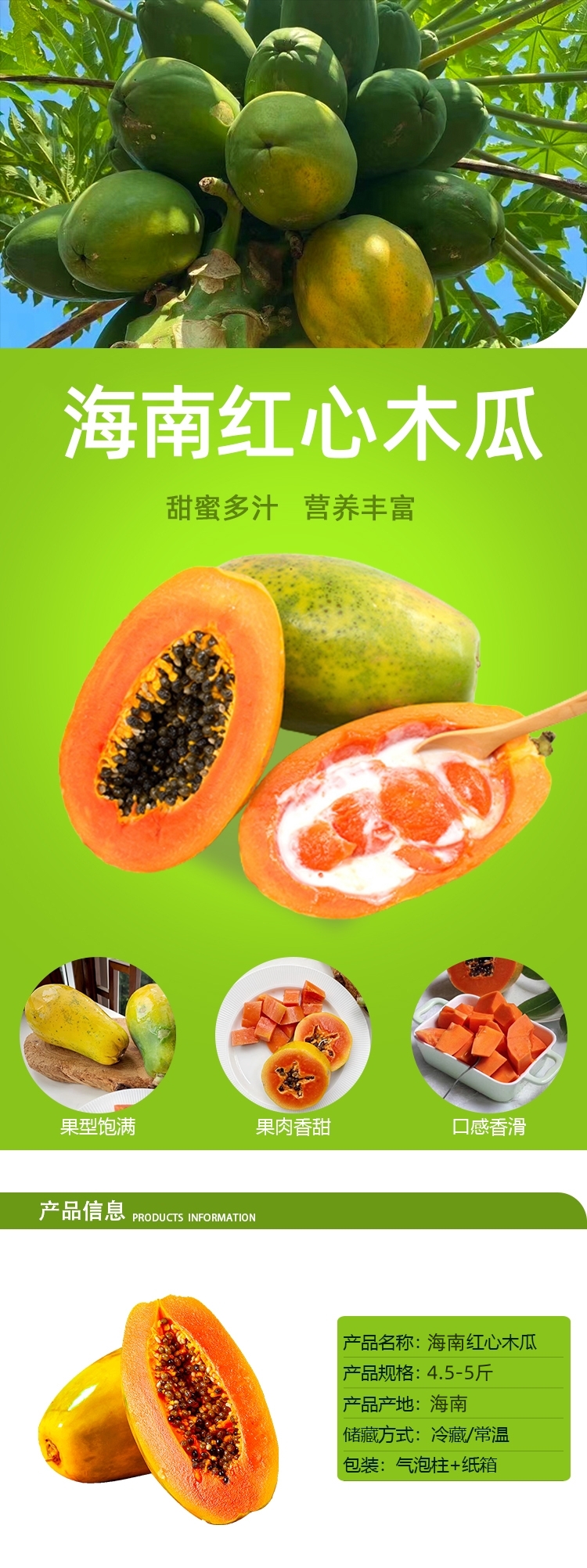 【品名】海南树上熟牛奶红心木瓜