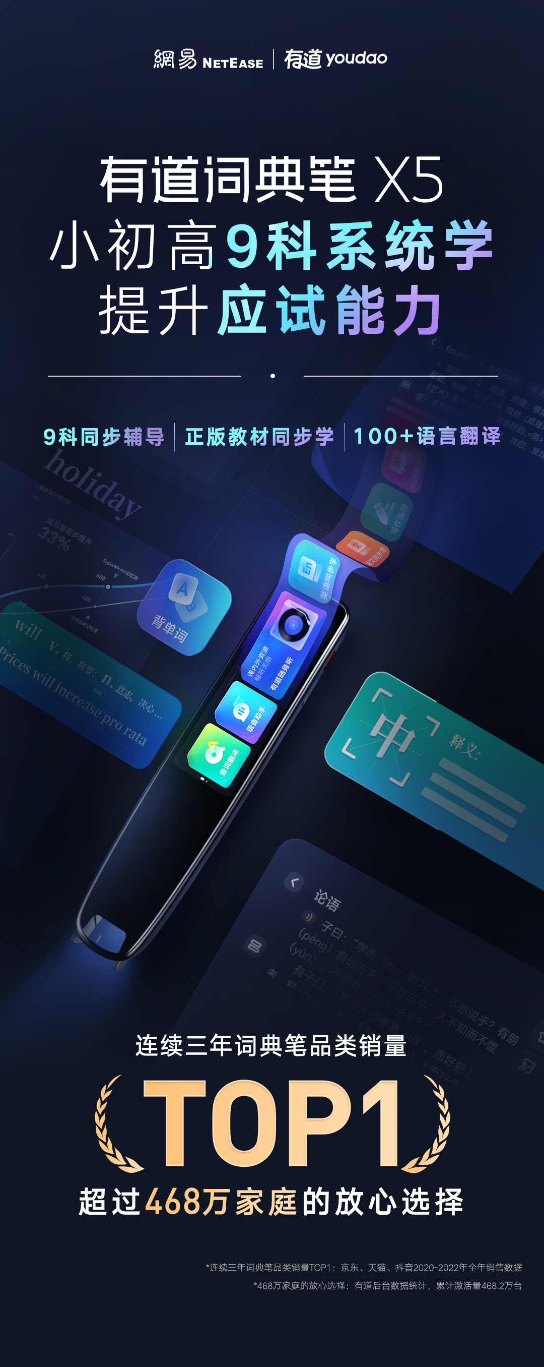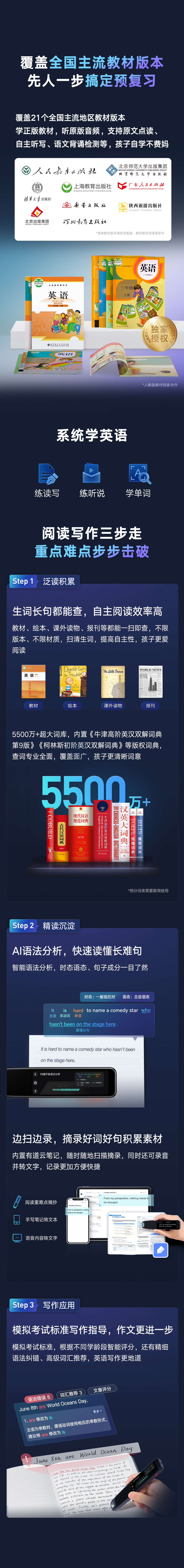 【服务商】春季特惠有道词典笔X5 5200W超大词库 100+小语种翻译 海量随身听资源 口语AI纠音 语法分析 英文写作批改(送保护膜+保护套)