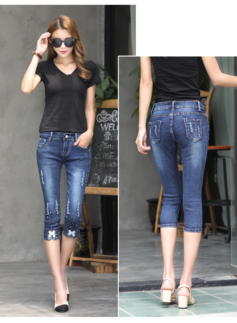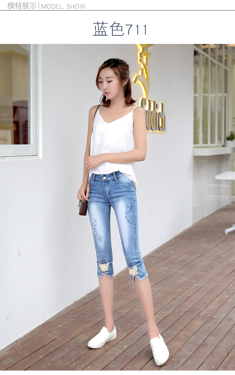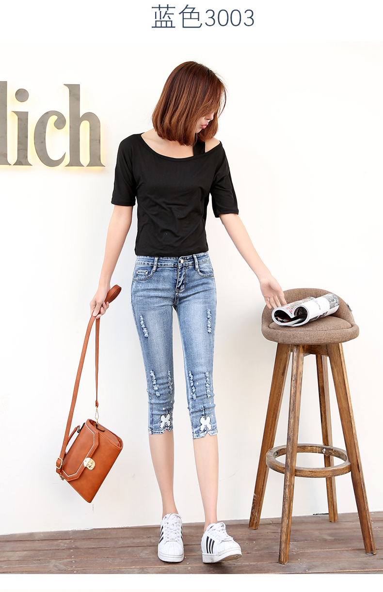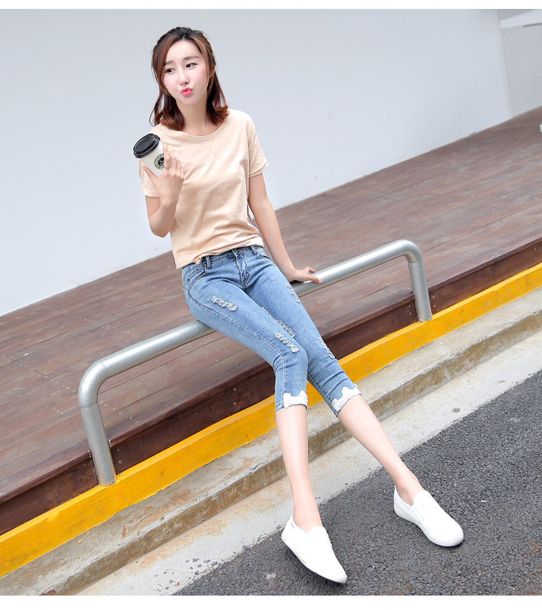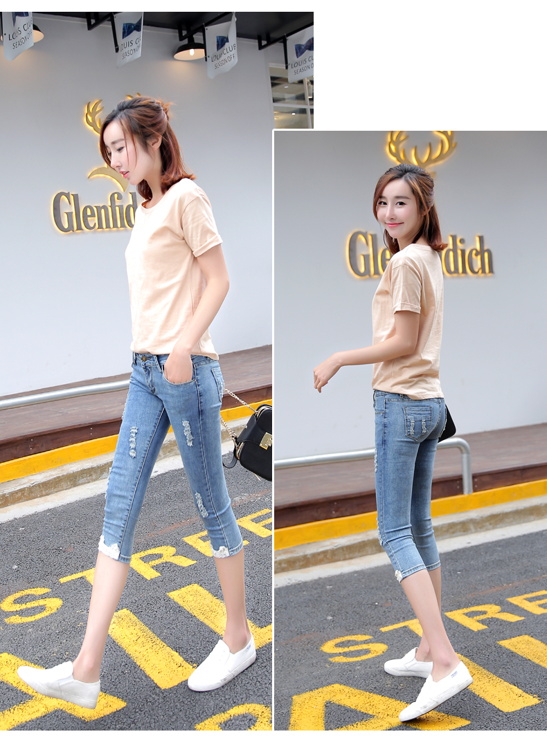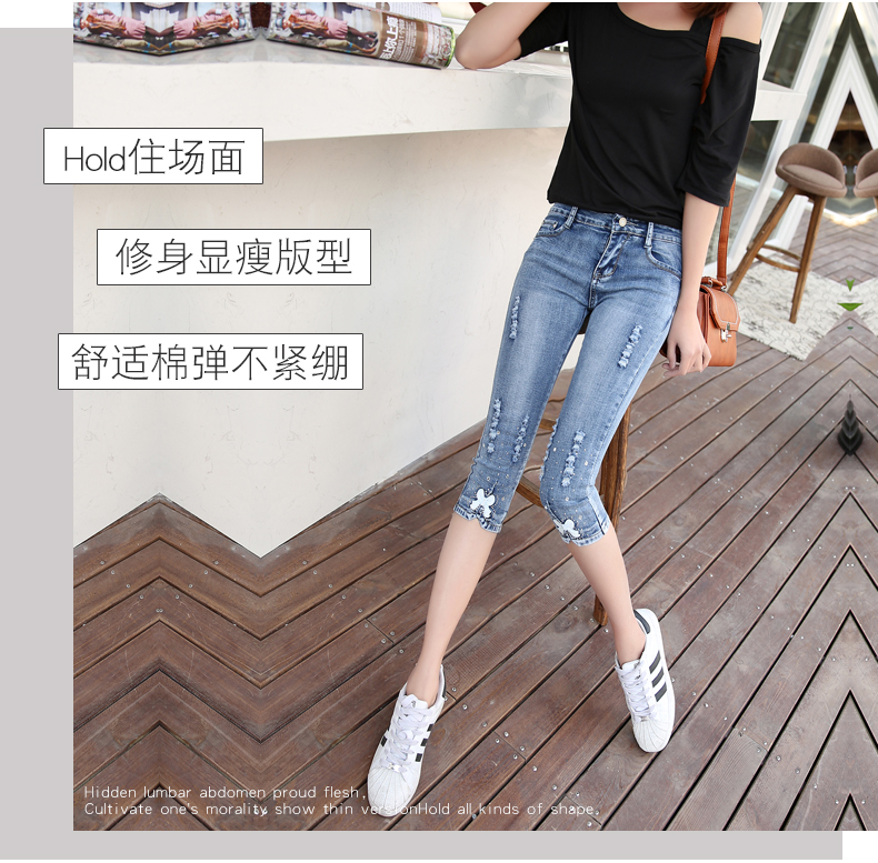 DD-破洞七分牛仔裤女高腰小个子2022年夏季新款显瘦百搭薄款小脚中裤