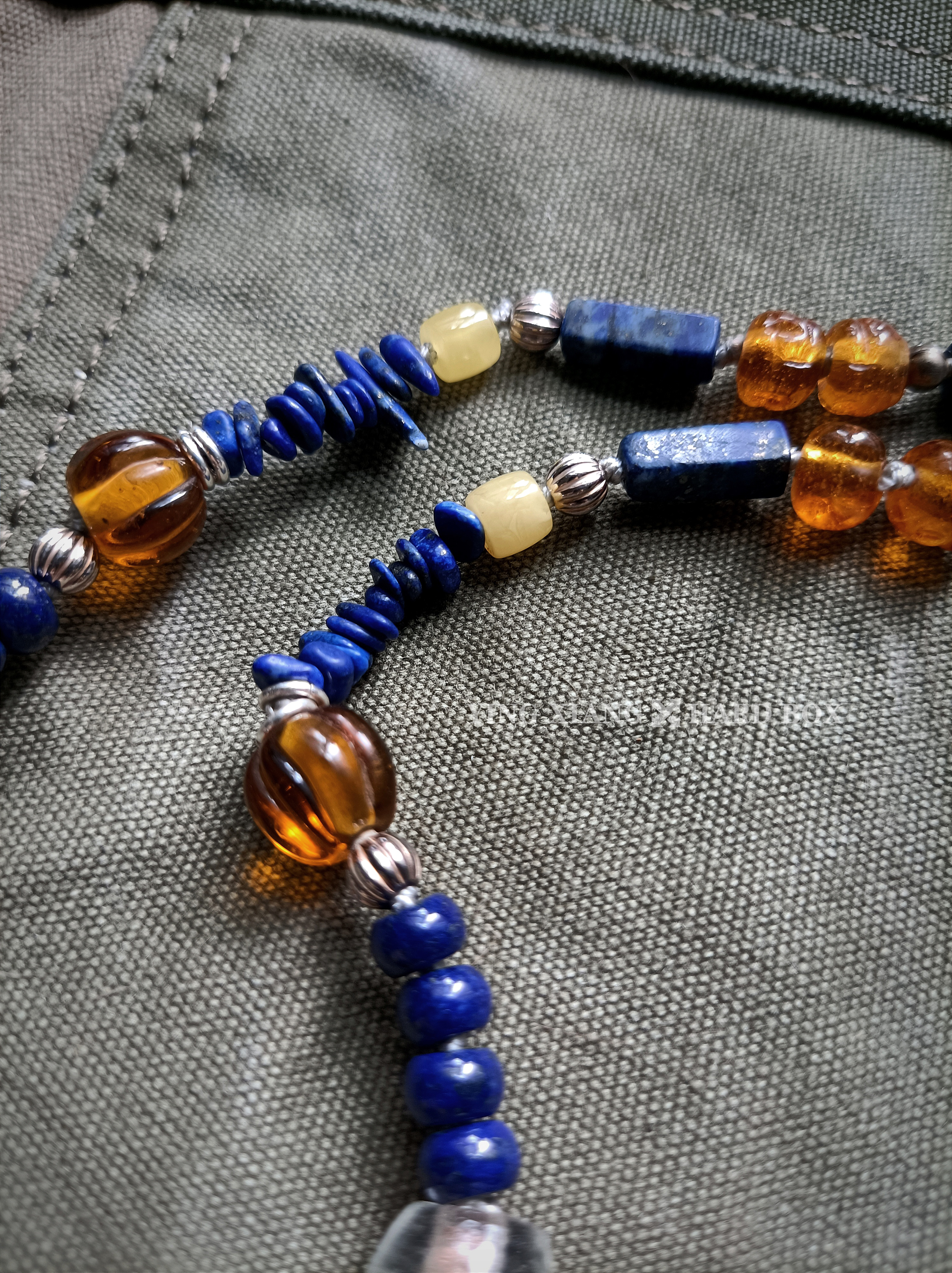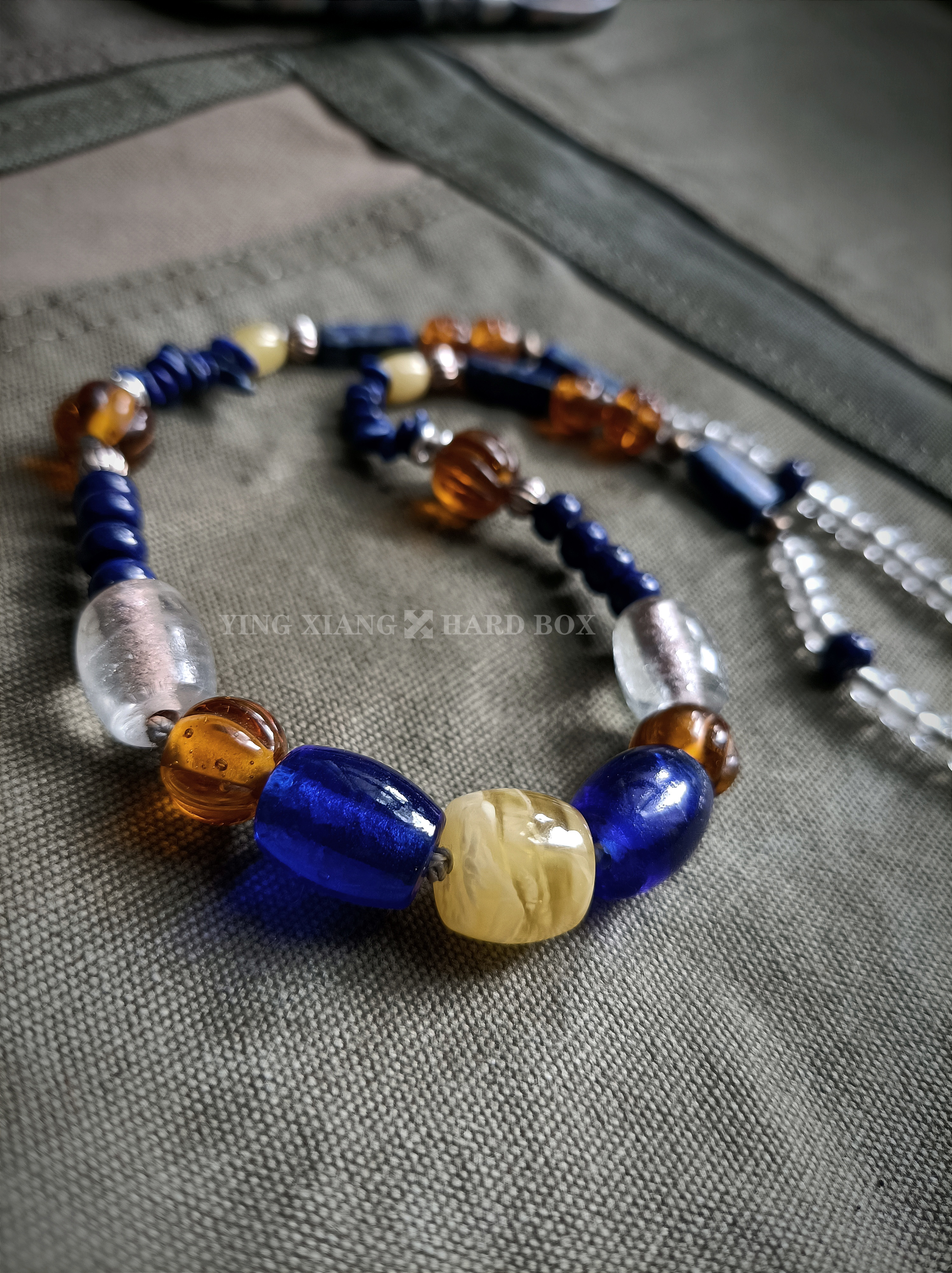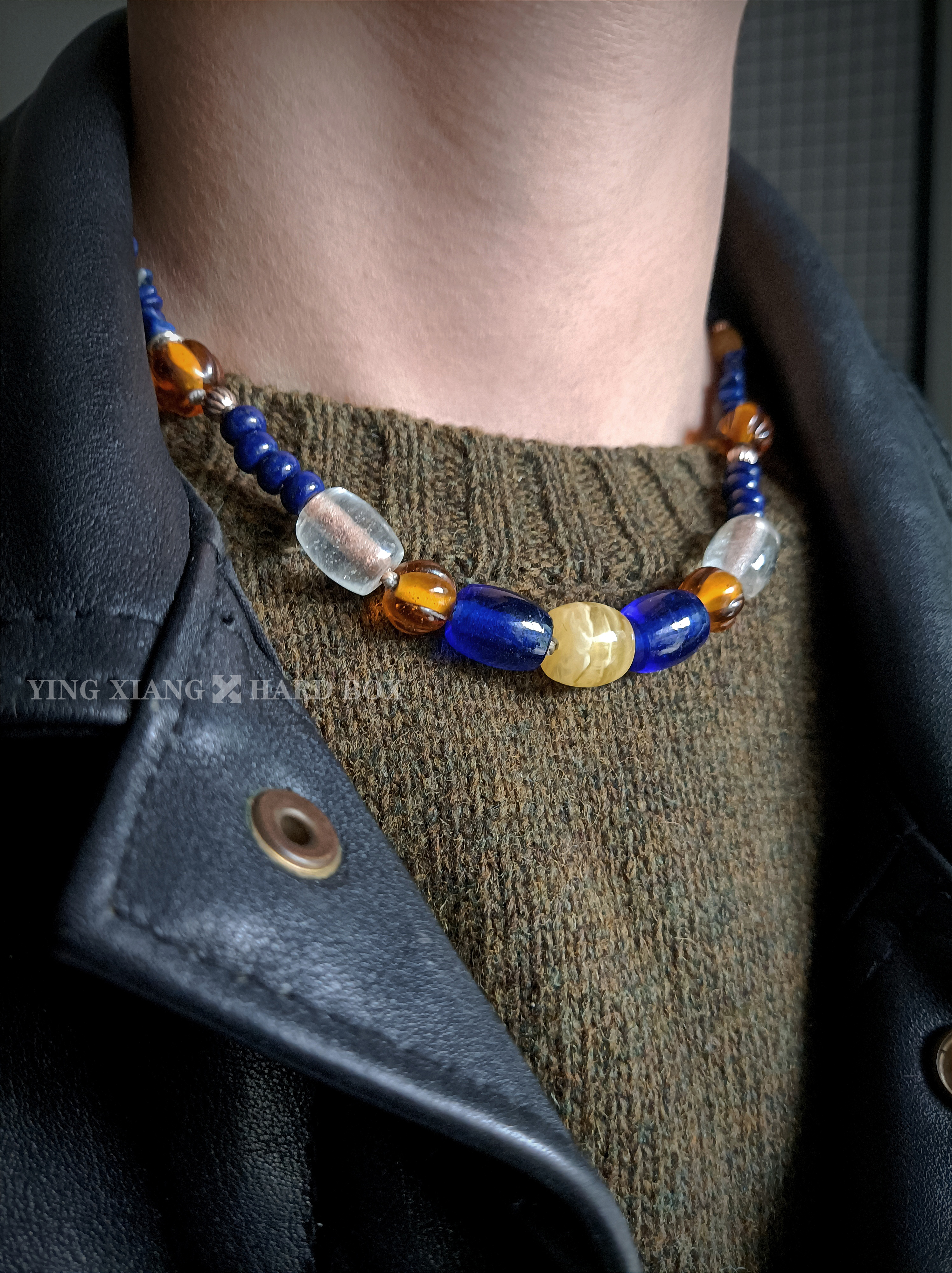 老琉璃珠 天然青金石管+珠+随型 老铜珠 天然蜜蜡 925银隔珠+环+连接扣