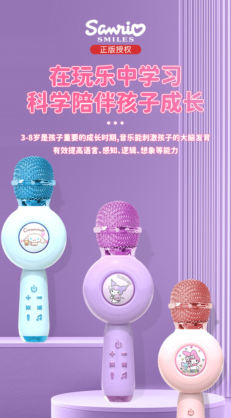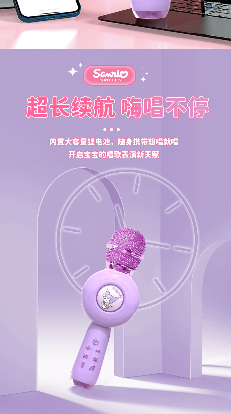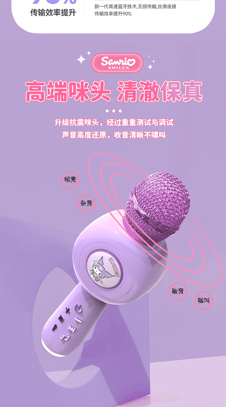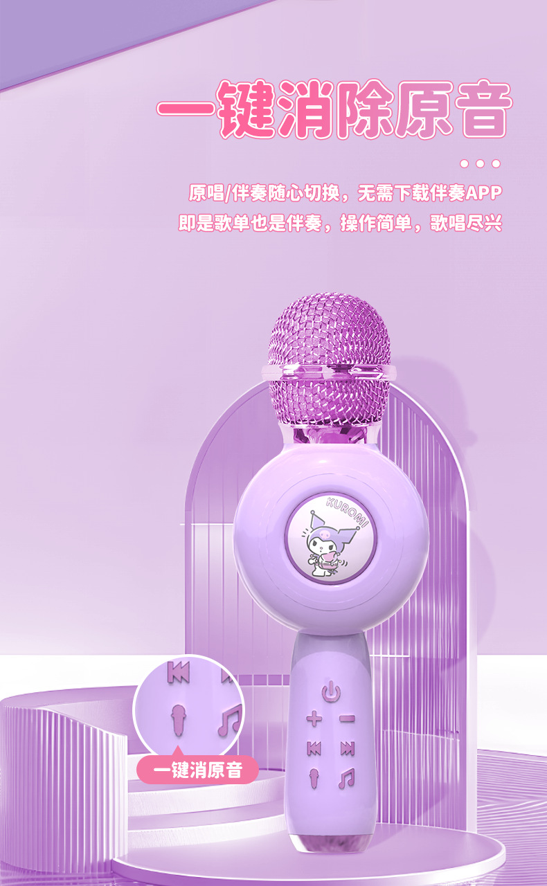 儿童节礼物!【想唱就唱,唱的响亮~】三丽鸥库洛米儿童唱歌麦克风 口才锻炼 无线蓝牙连接 麦克风音响一体-QQ
