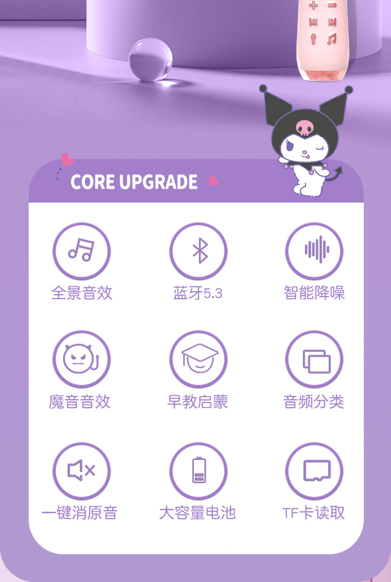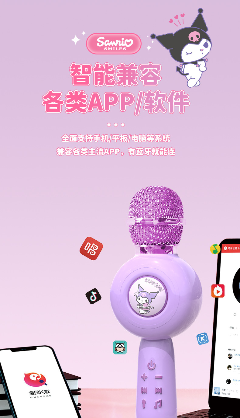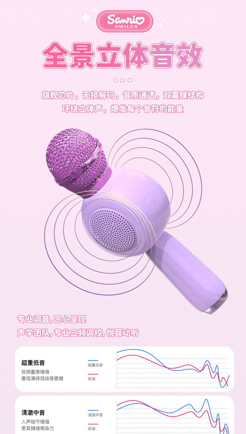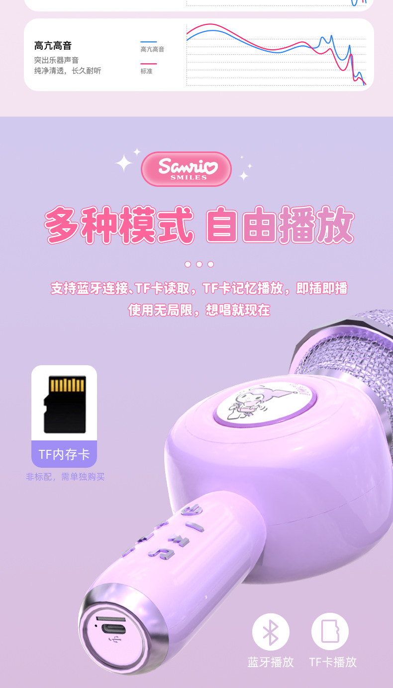 儿童节礼物!【想唱就唱,唱的响亮~】三丽鸥库洛米儿童唱歌麦克风 口才锻炼 无线蓝牙连接 麦克风音响一体-QQ