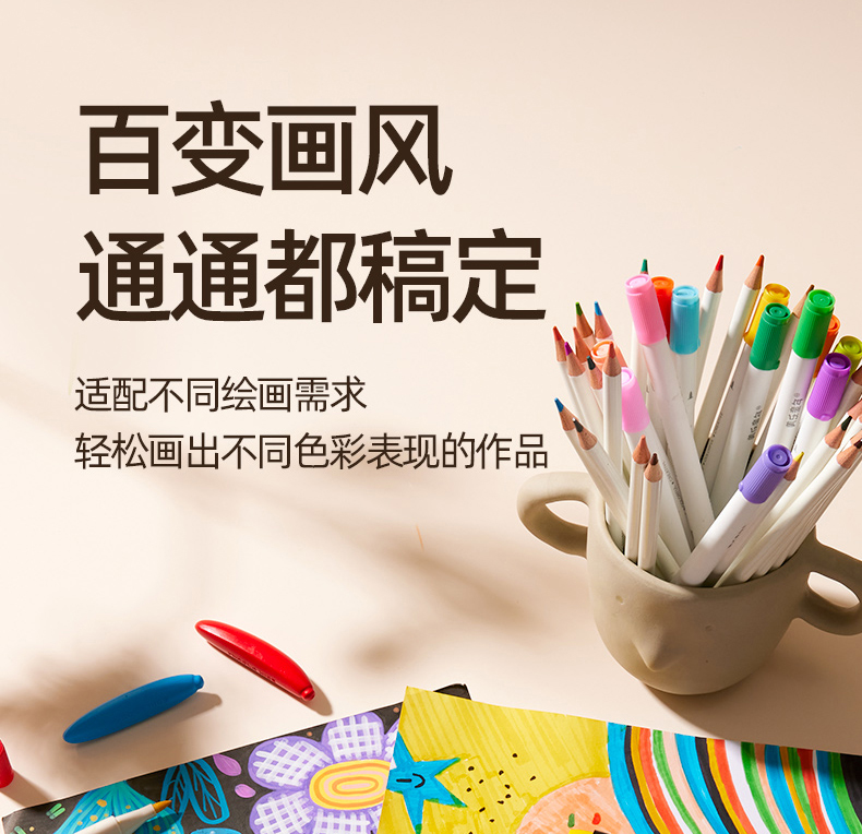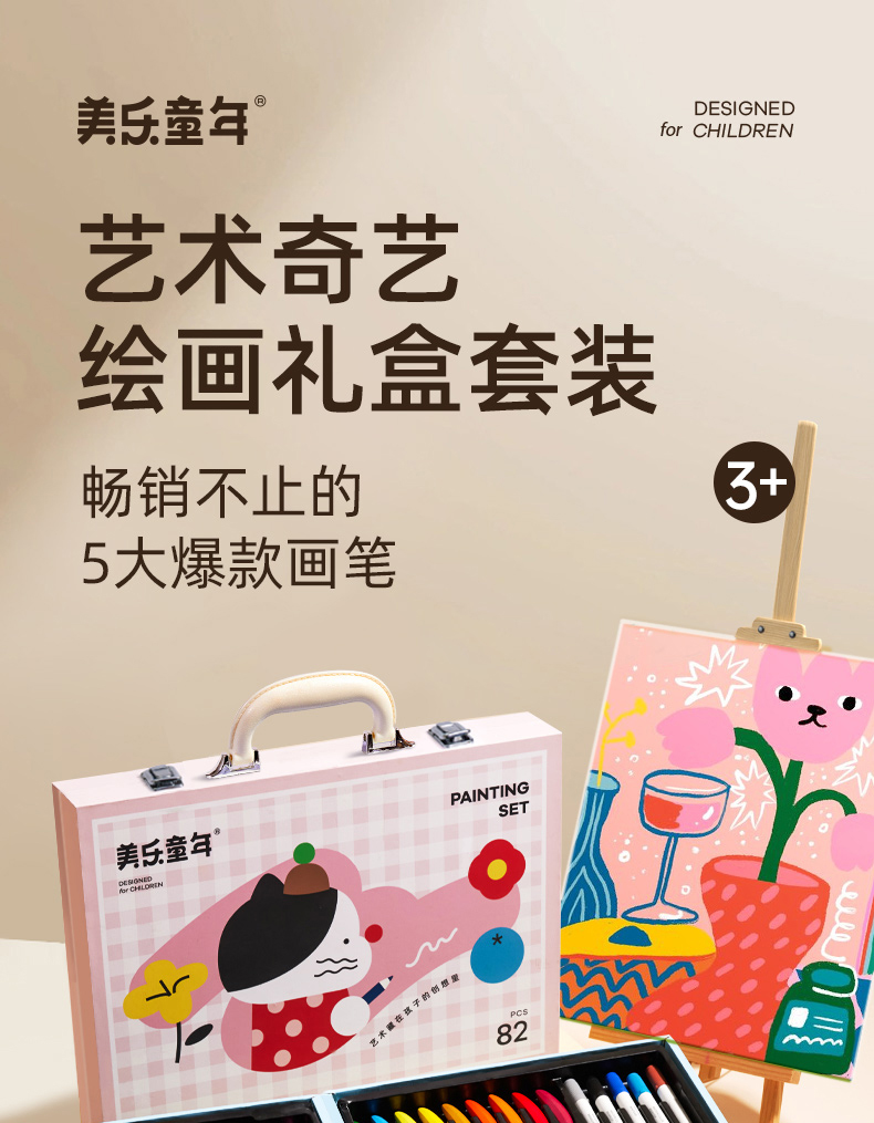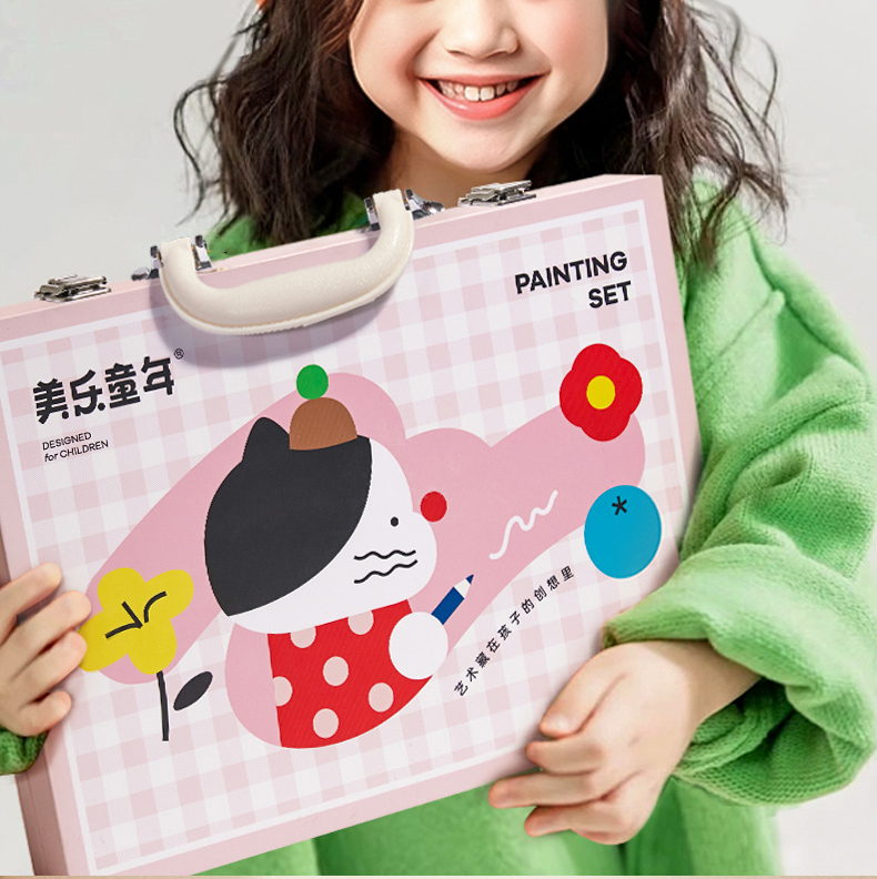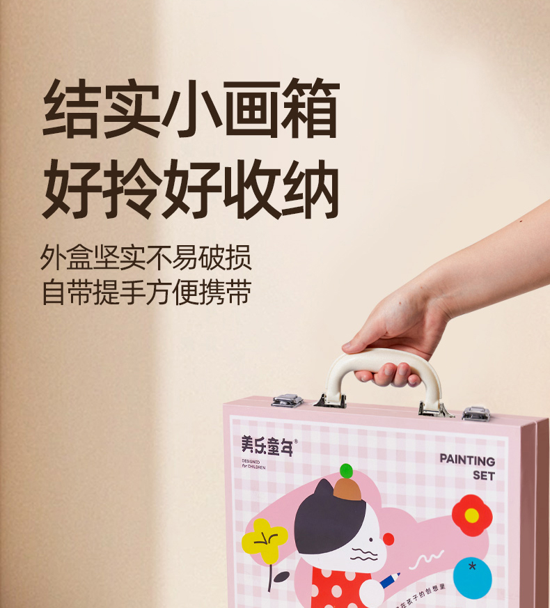 【满满一箱结实小画箱 好拎好收纳】美乐童年艺术奇艺绘画礼盒套装 百变画风 通通都搞定 轻松画出不同色彩作品 不脏手不易断