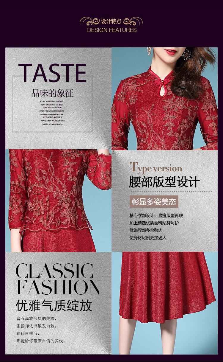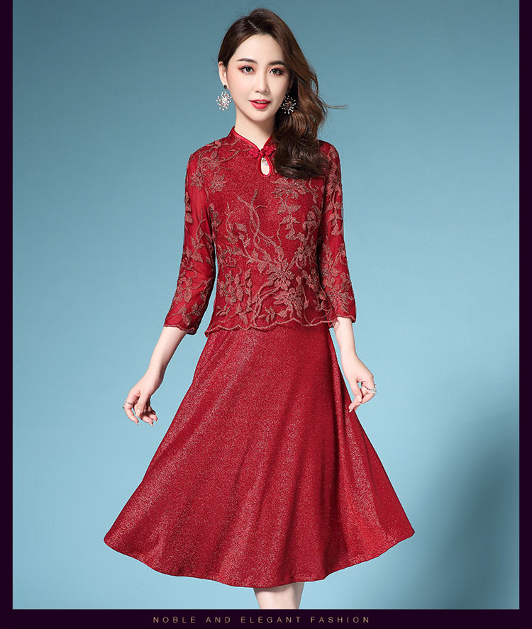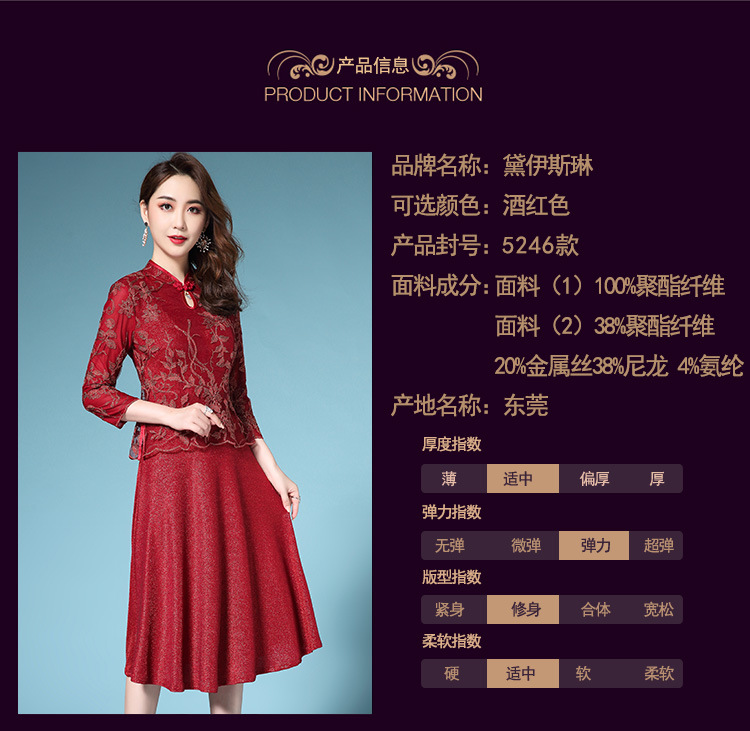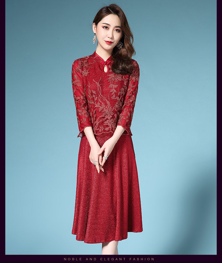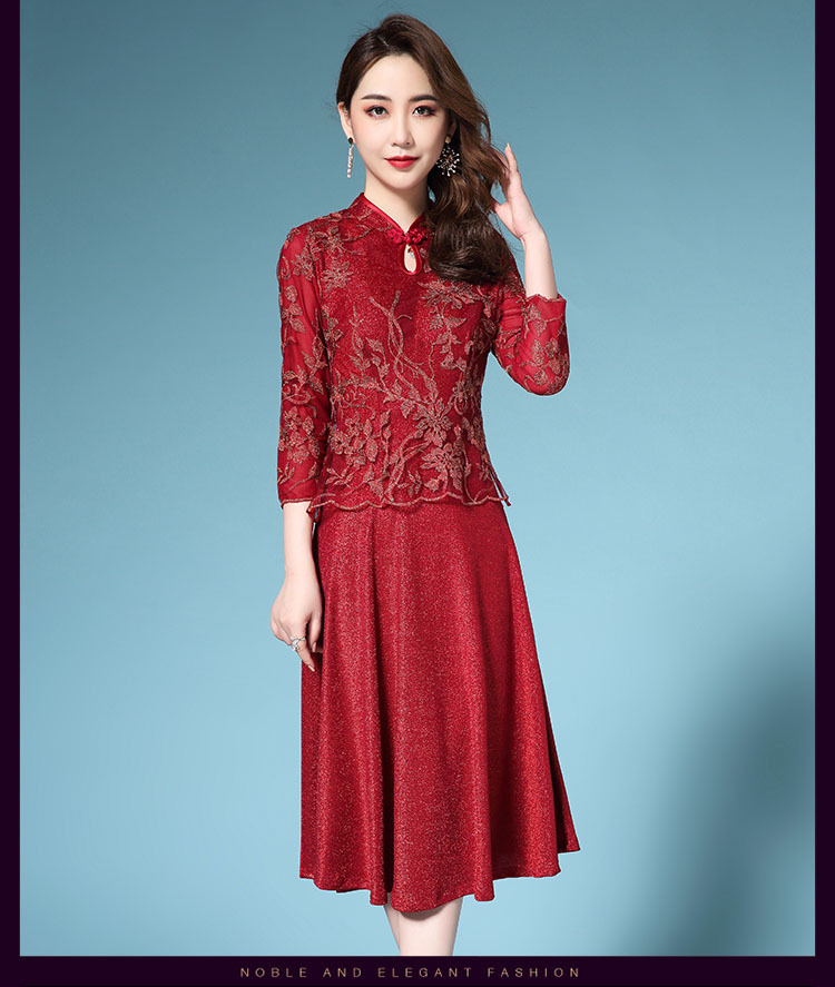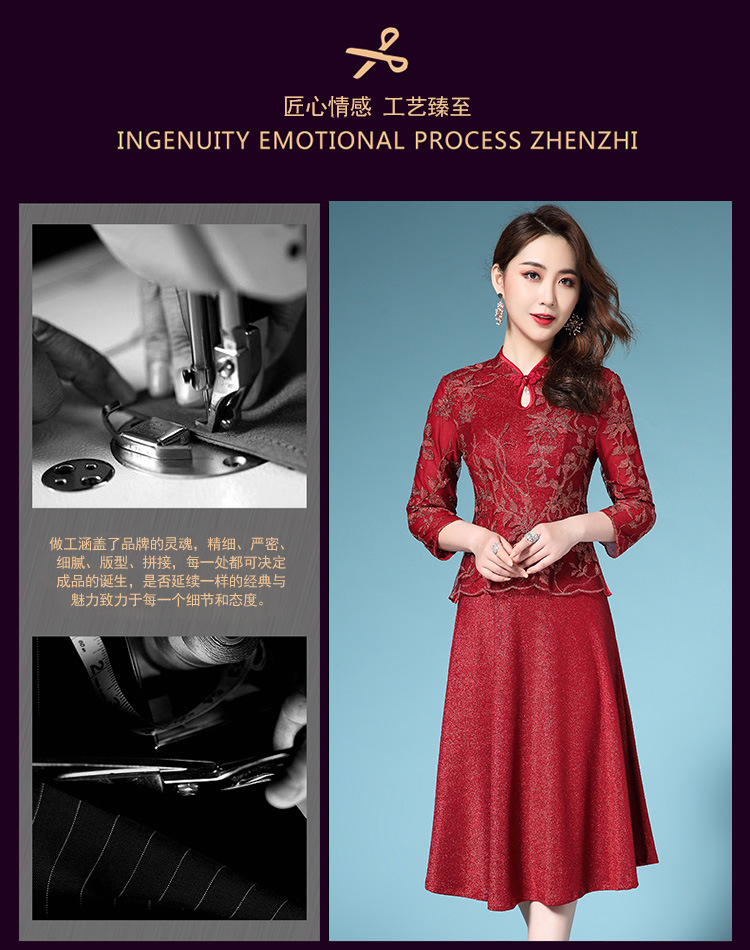ZY-Q5246新款婚礼婚宴妈妈装礼服2019秋装国风端庄大气水滴领假两件连衣裙