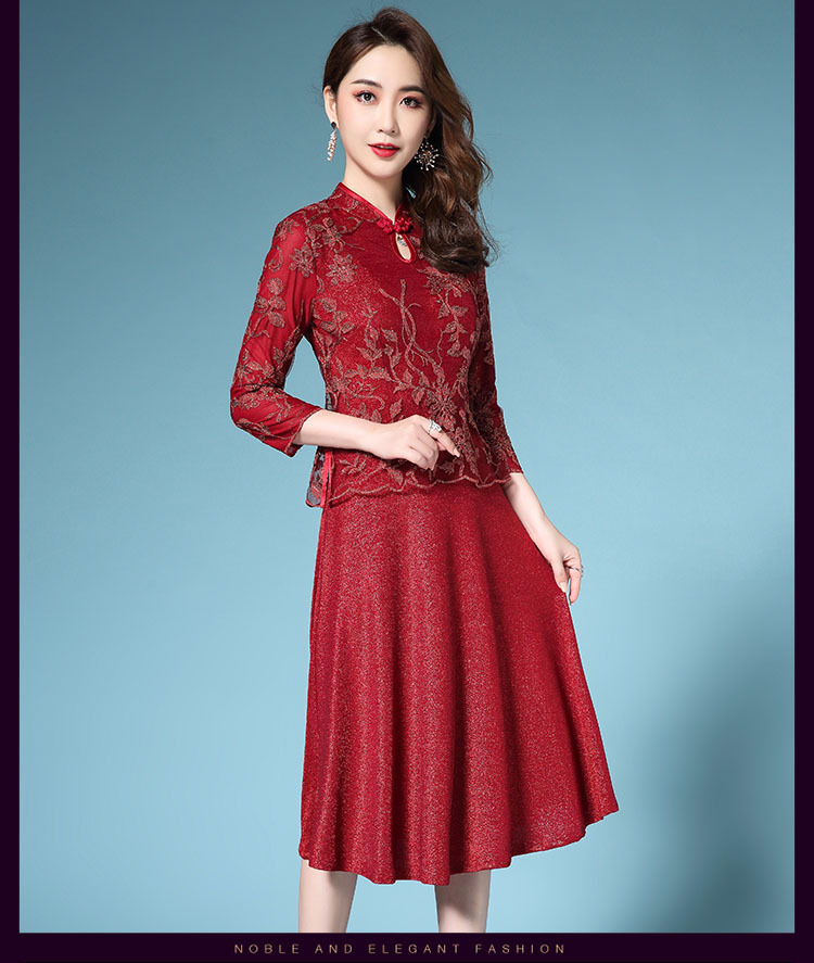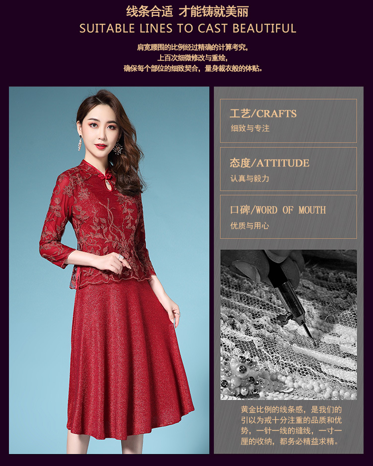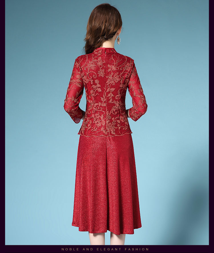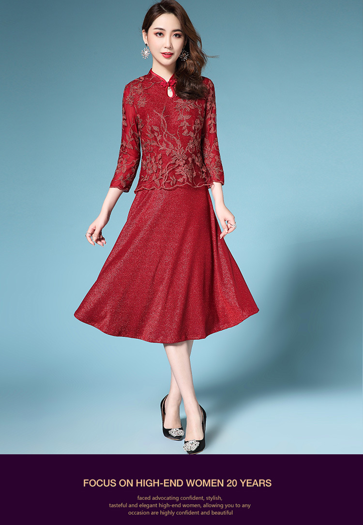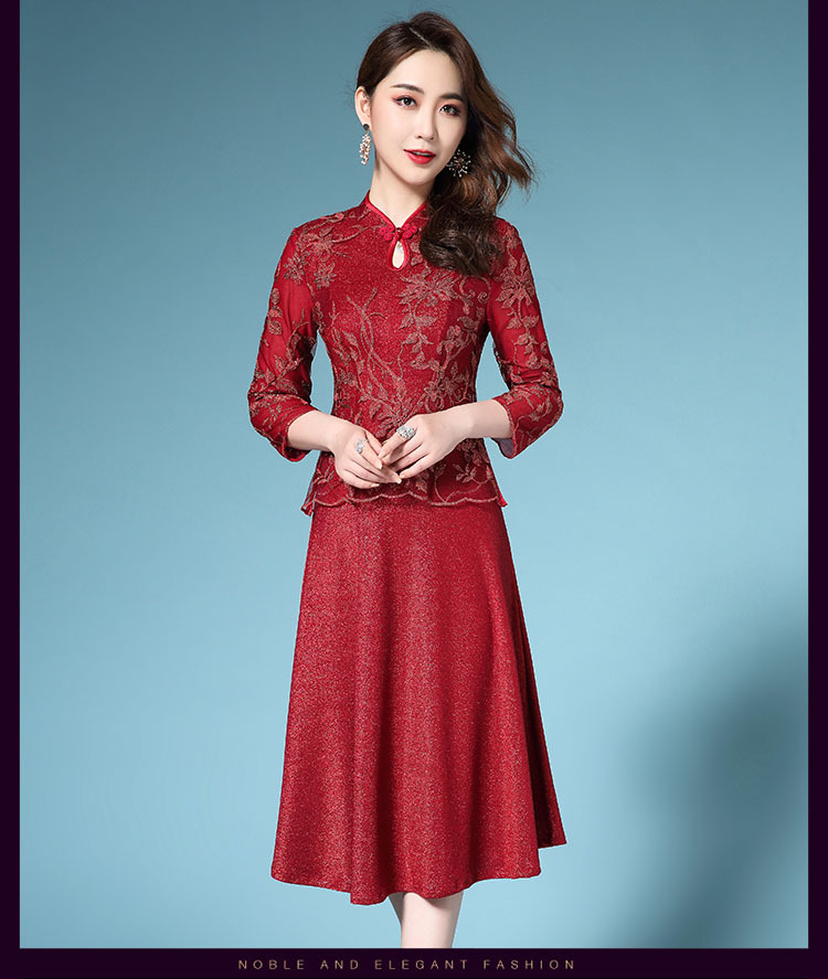 ZY-Q5246新款婚礼婚宴妈妈装礼服2019秋装国风端庄大气水滴领假两件连衣裙