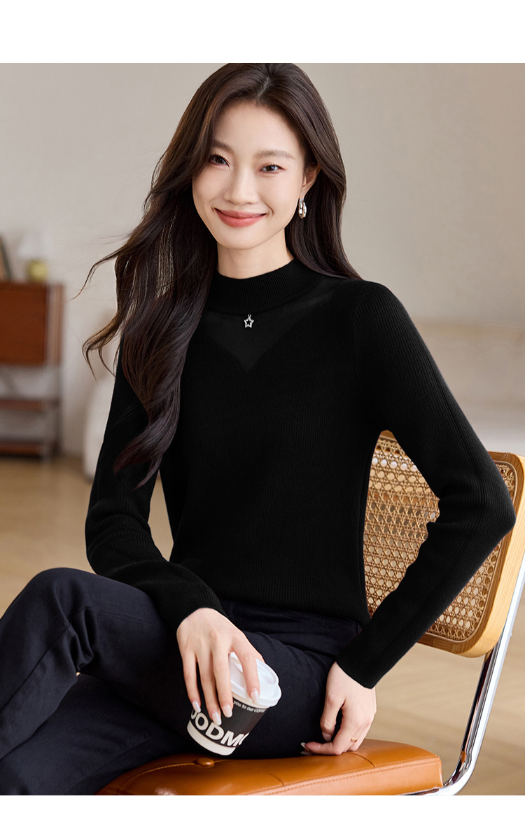 CC-ML-5219加绒加厚毛衣女秋冬2024新款一体绒针织打底衫半高领内搭保暖上衣
