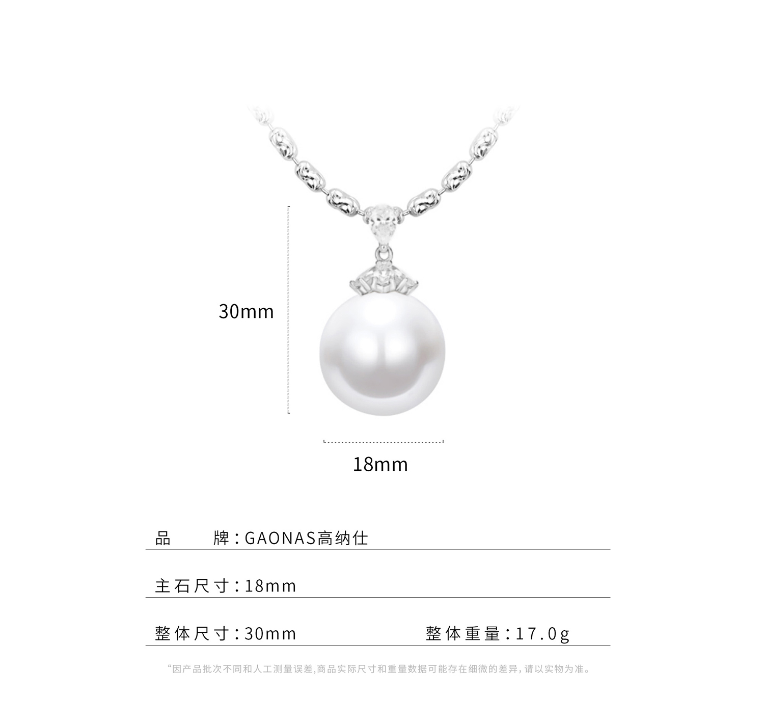 GAONAS 南海明珠 18mm仿珍珠时尚白色珠项链11463XW