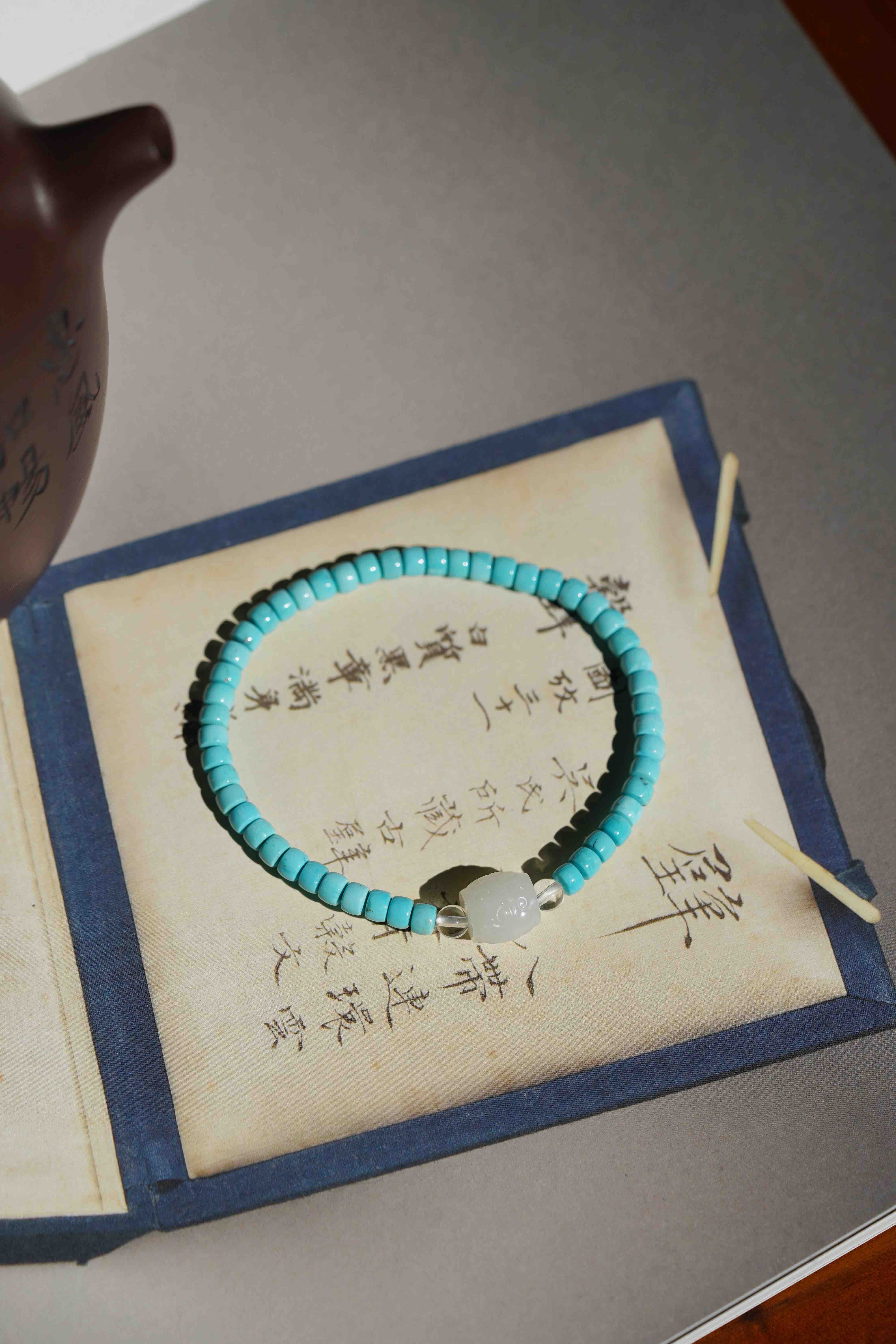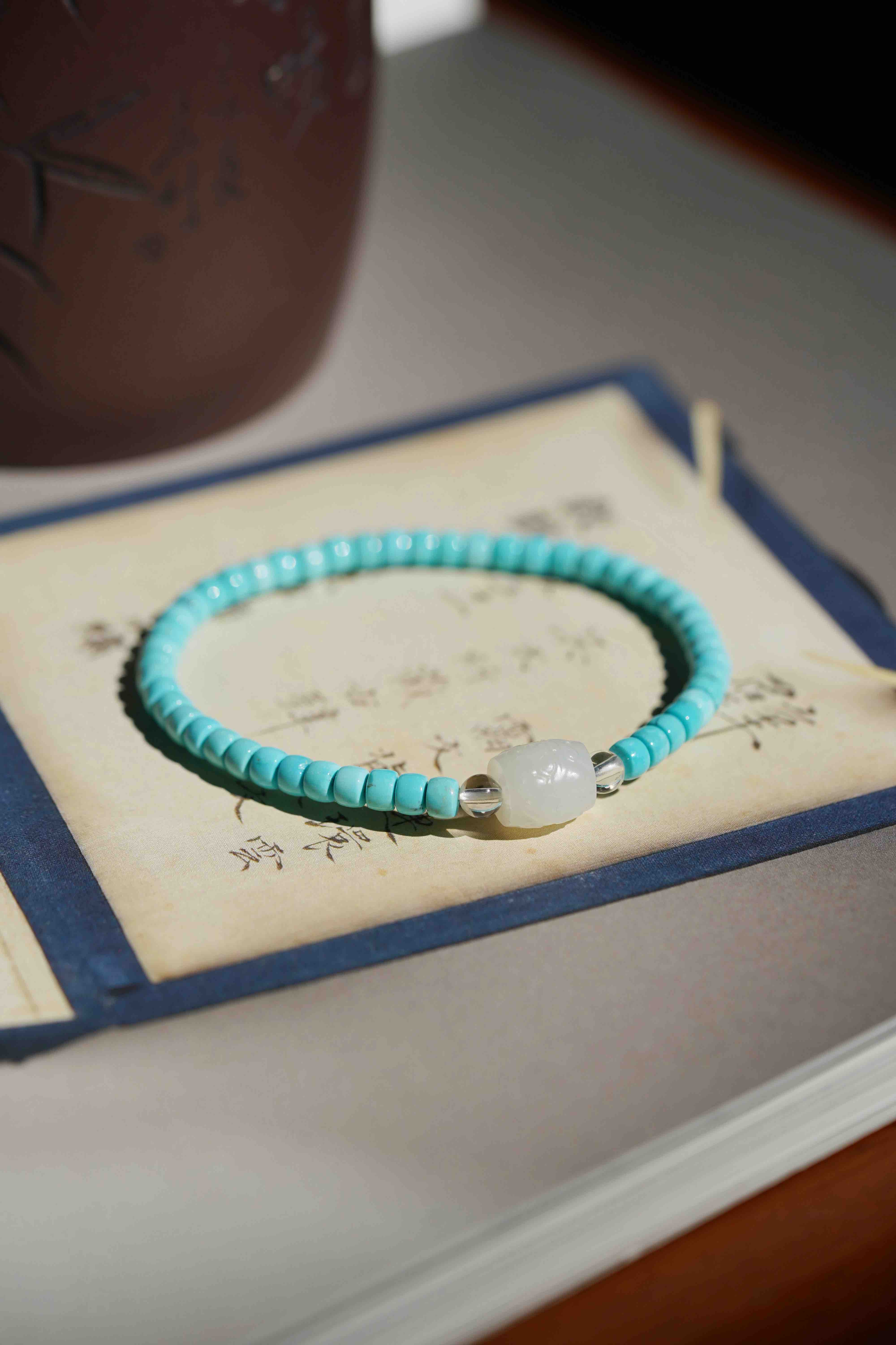 猛犸牙跑环绿松手串