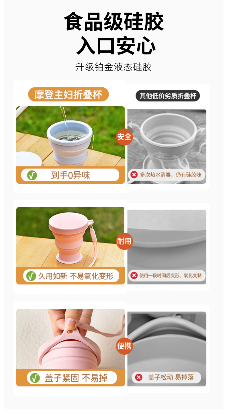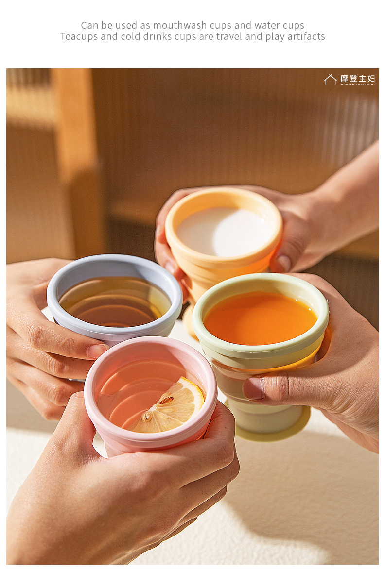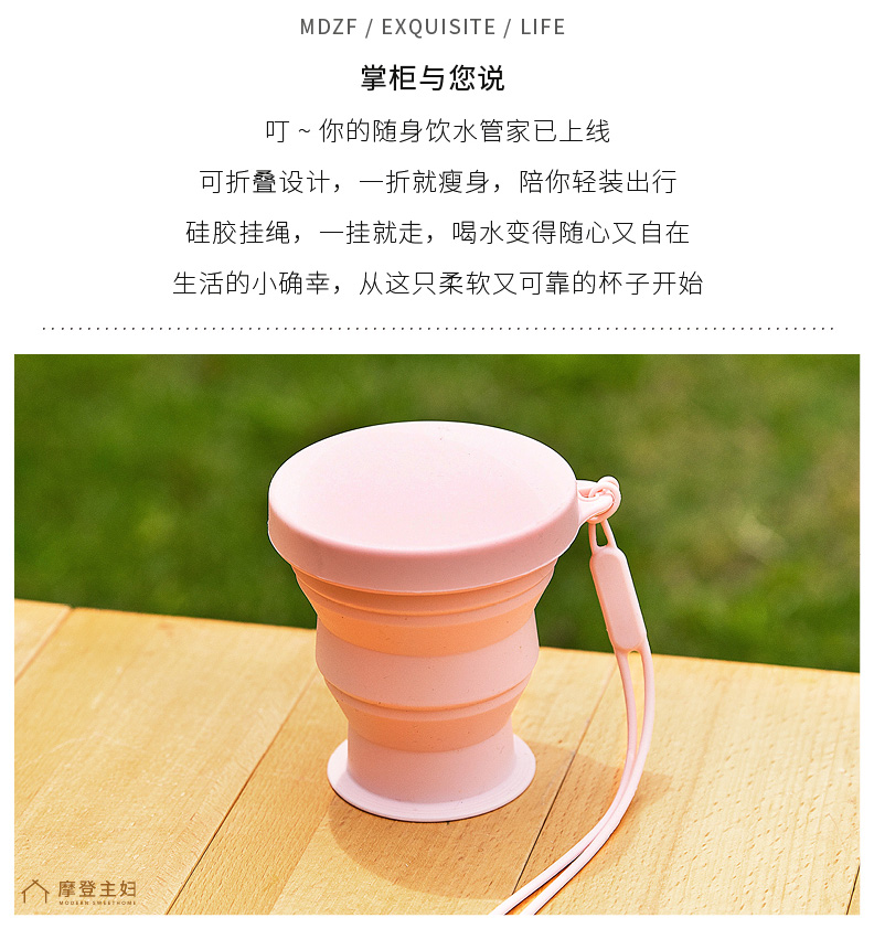 摩登主妇可折叠水杯外出便捷旅行漱口杯食品级硅胶耐高温随手杯子