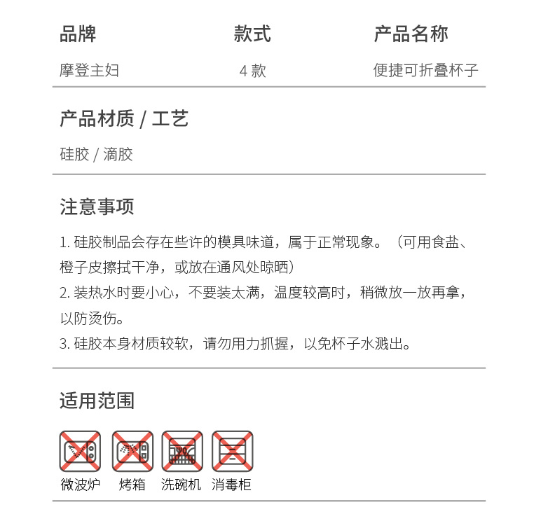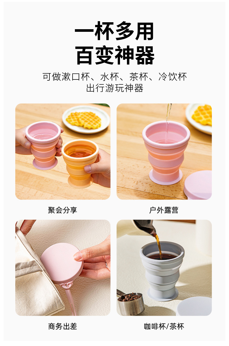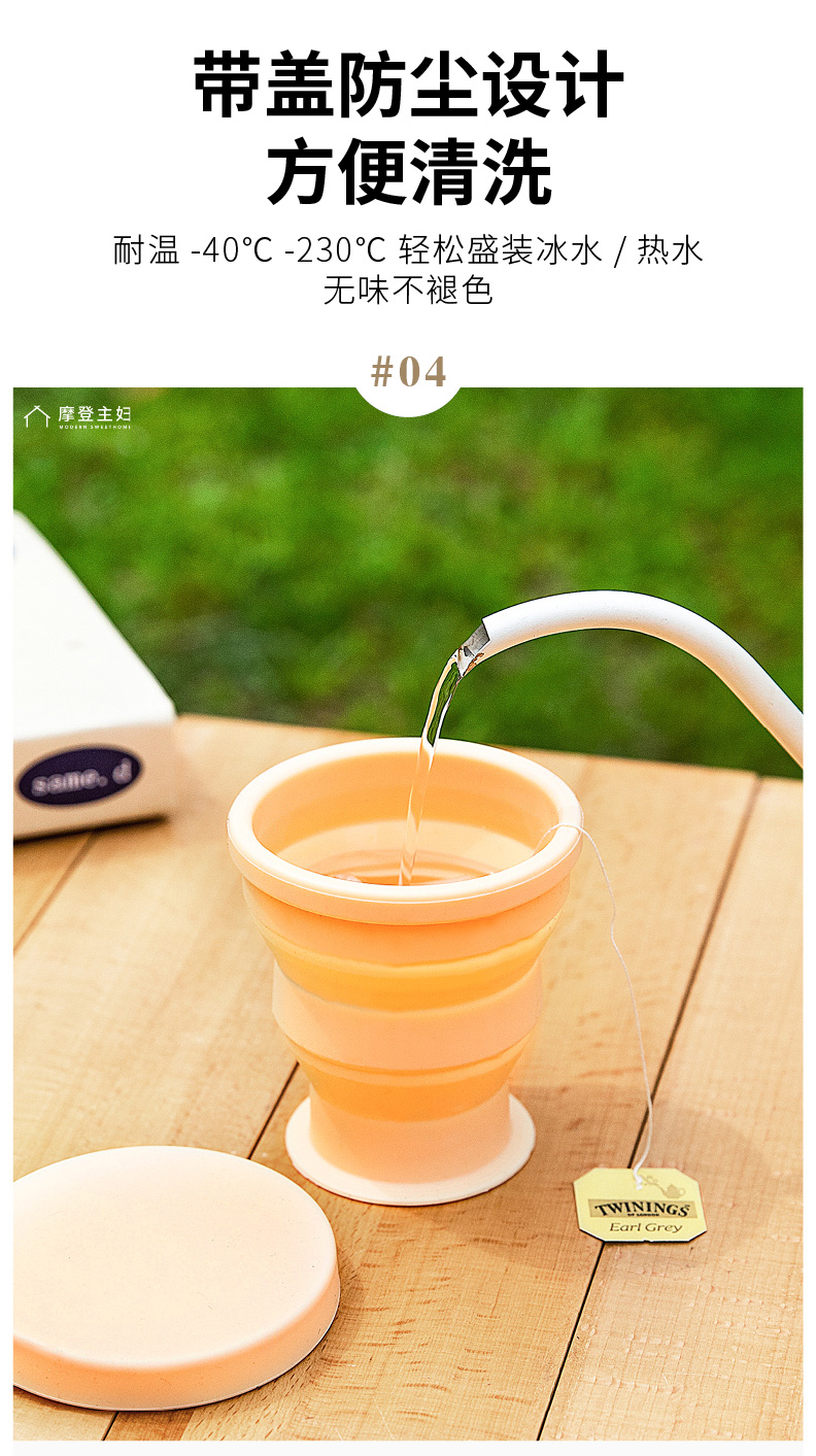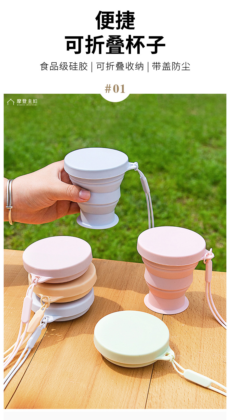 摩登主妇可折叠水杯外出便捷旅行漱口杯食品级硅胶耐高温随手杯子
