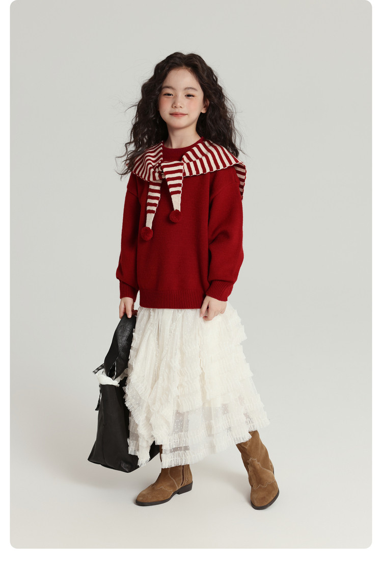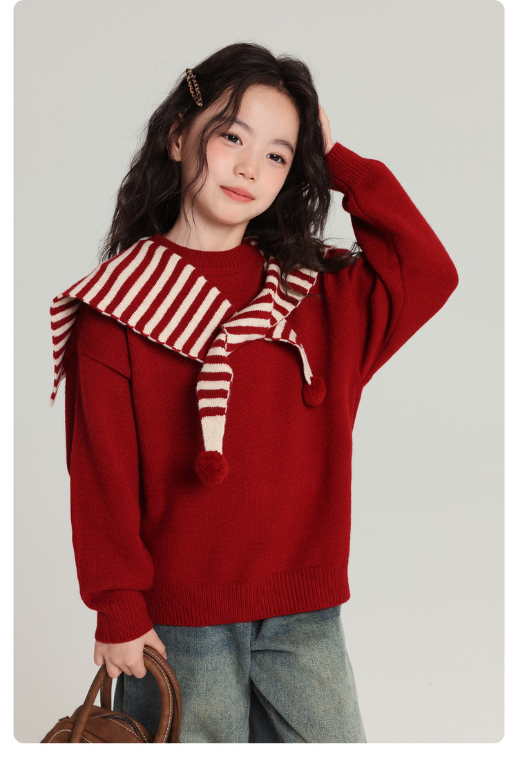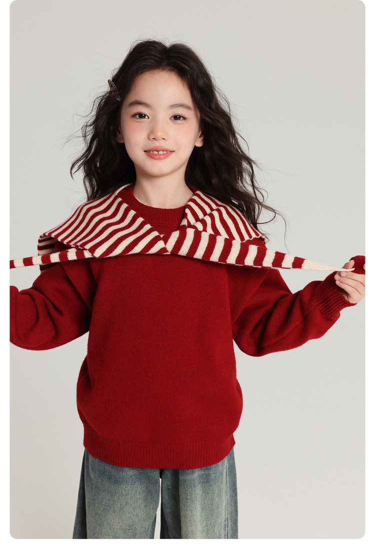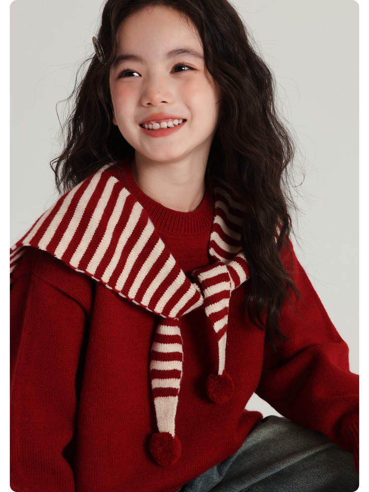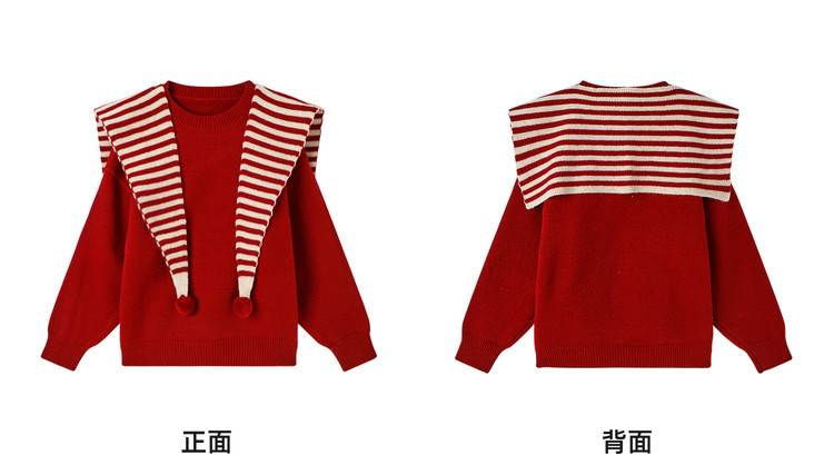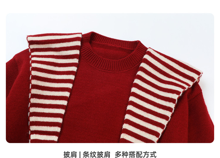【秒杀】新年毛衣 暖红披肩条纹毛衣