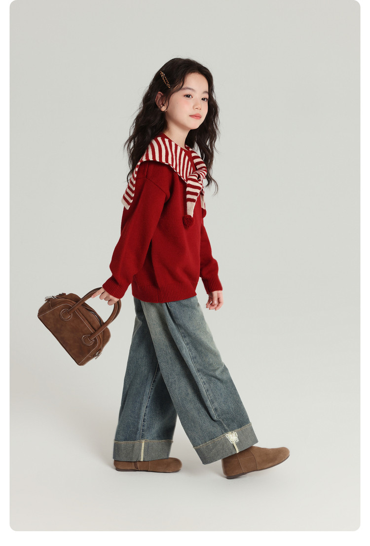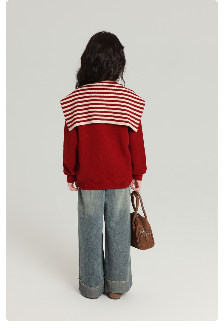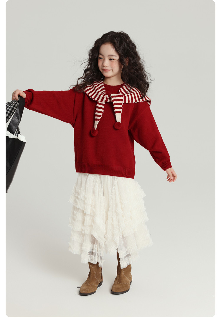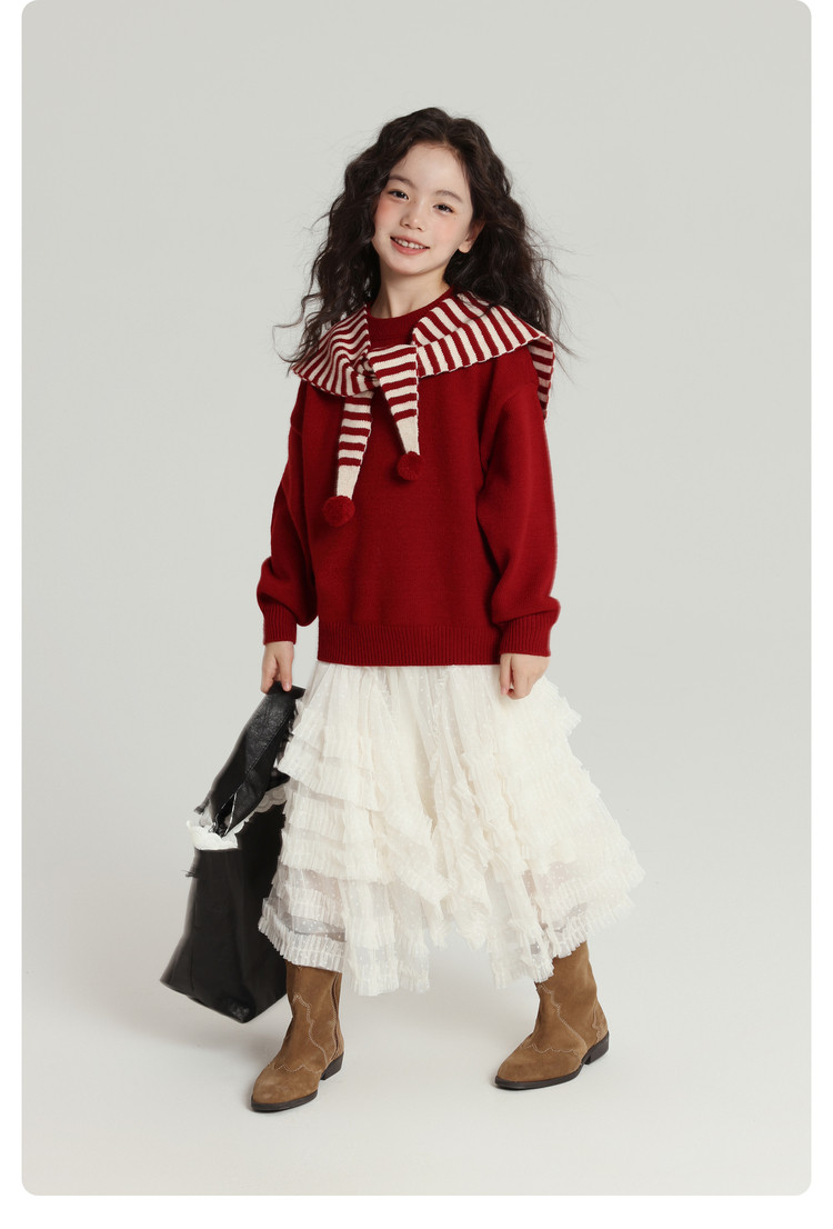 【秒杀】新年毛衣 暖红披肩条纹毛衣