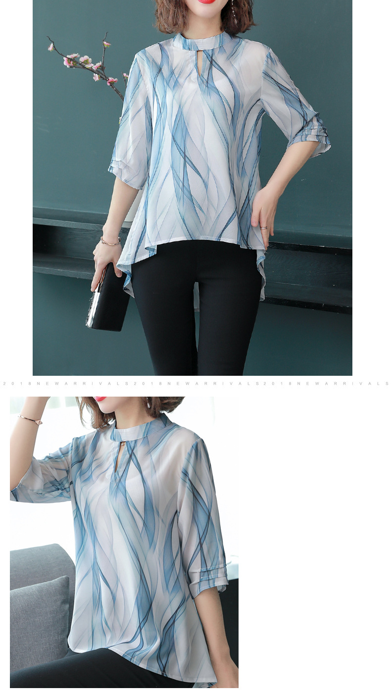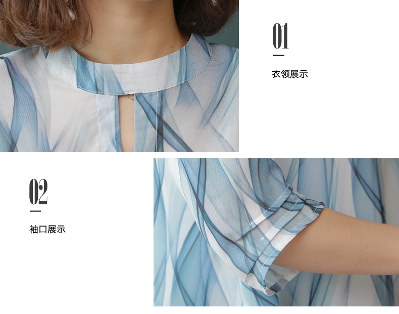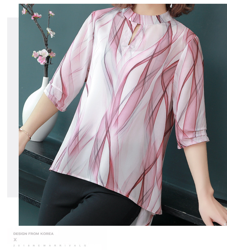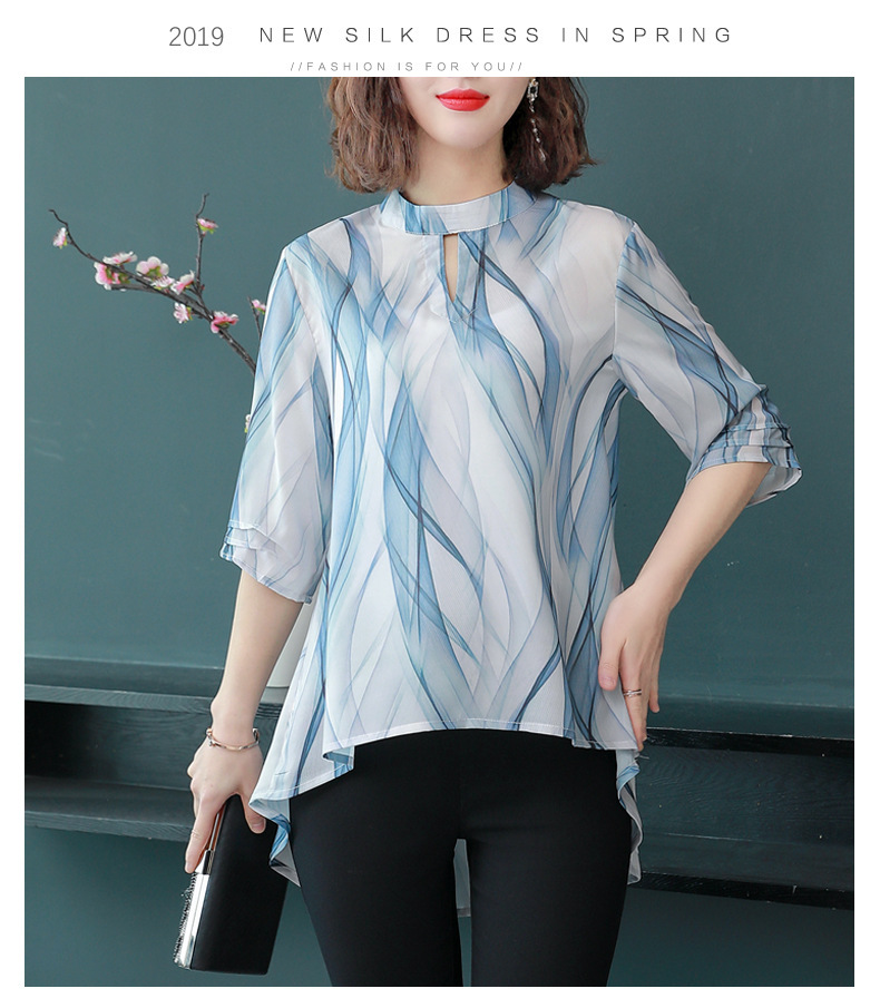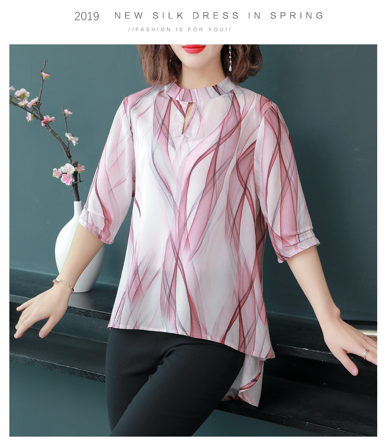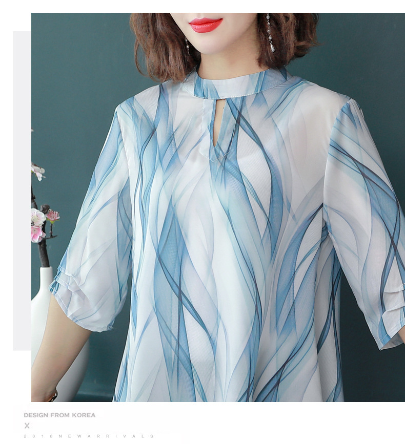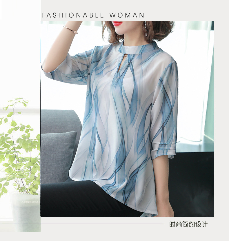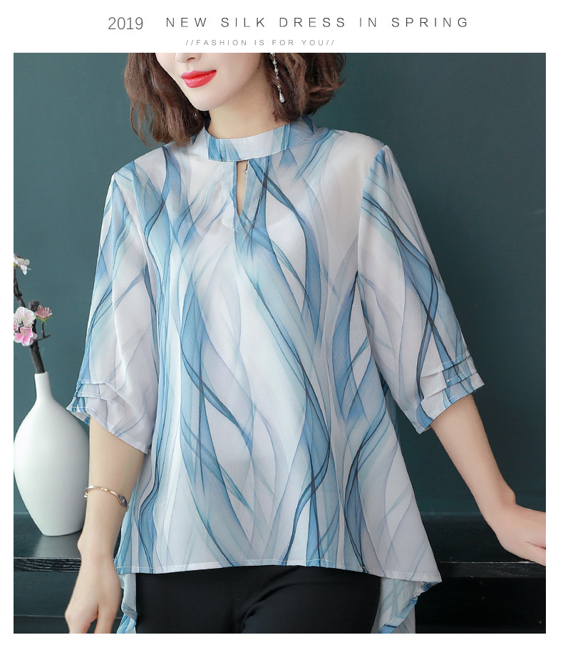MQ-CF1959夏装新款洋气雪纺条纹中袖蚕丝上衣YY