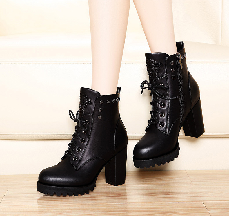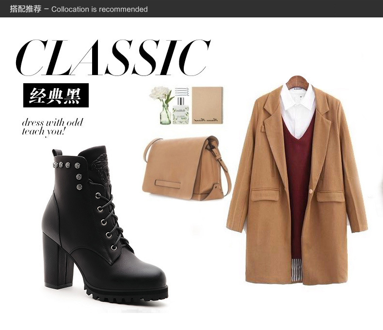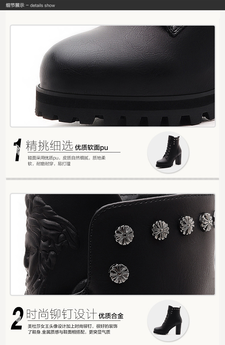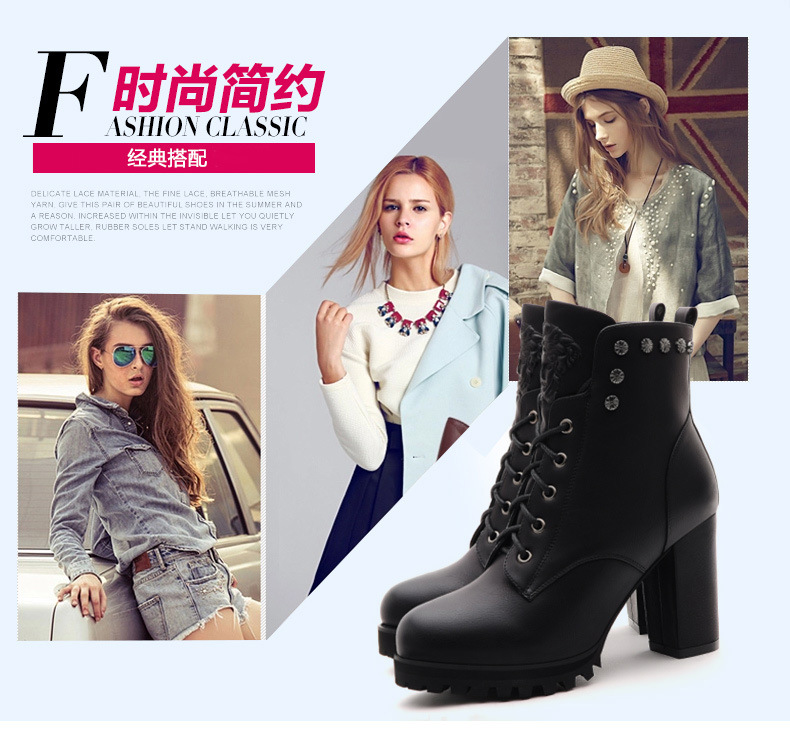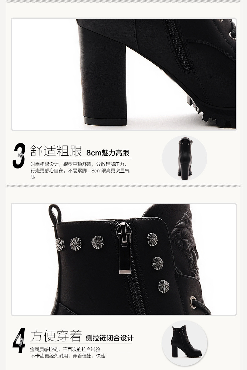 MLKL-D5Q162新款时尚气质休闲圆头粗高跟短靴