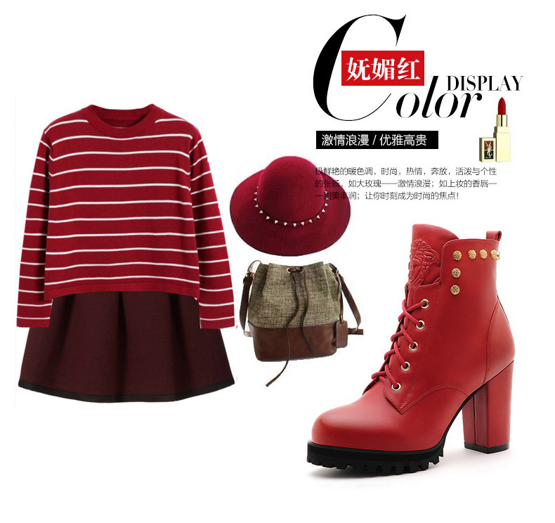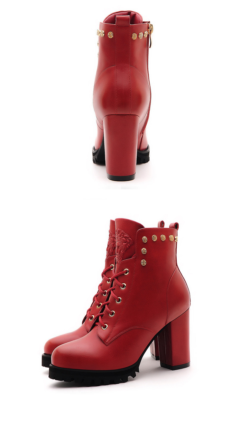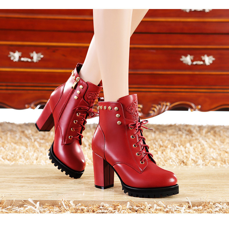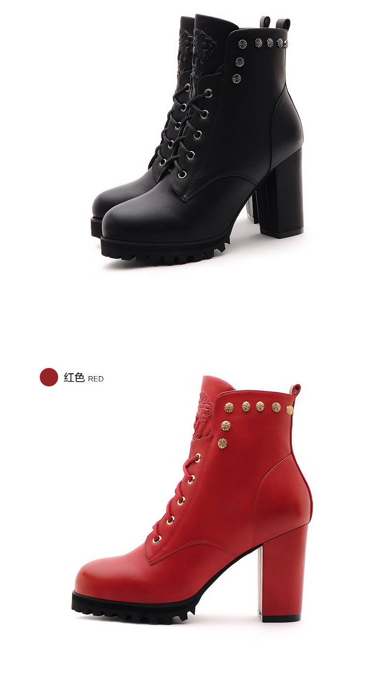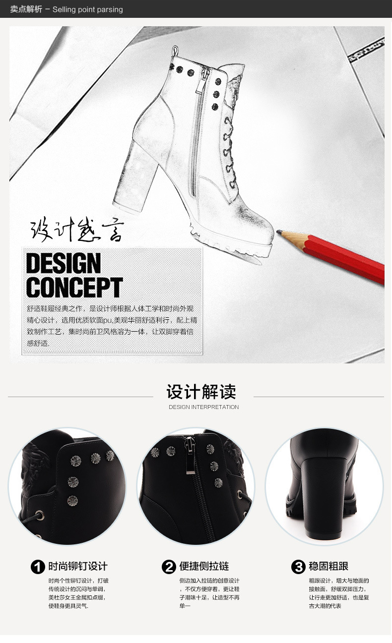 MLKL-D5Q162新款时尚气质休闲圆头粗高跟短靴