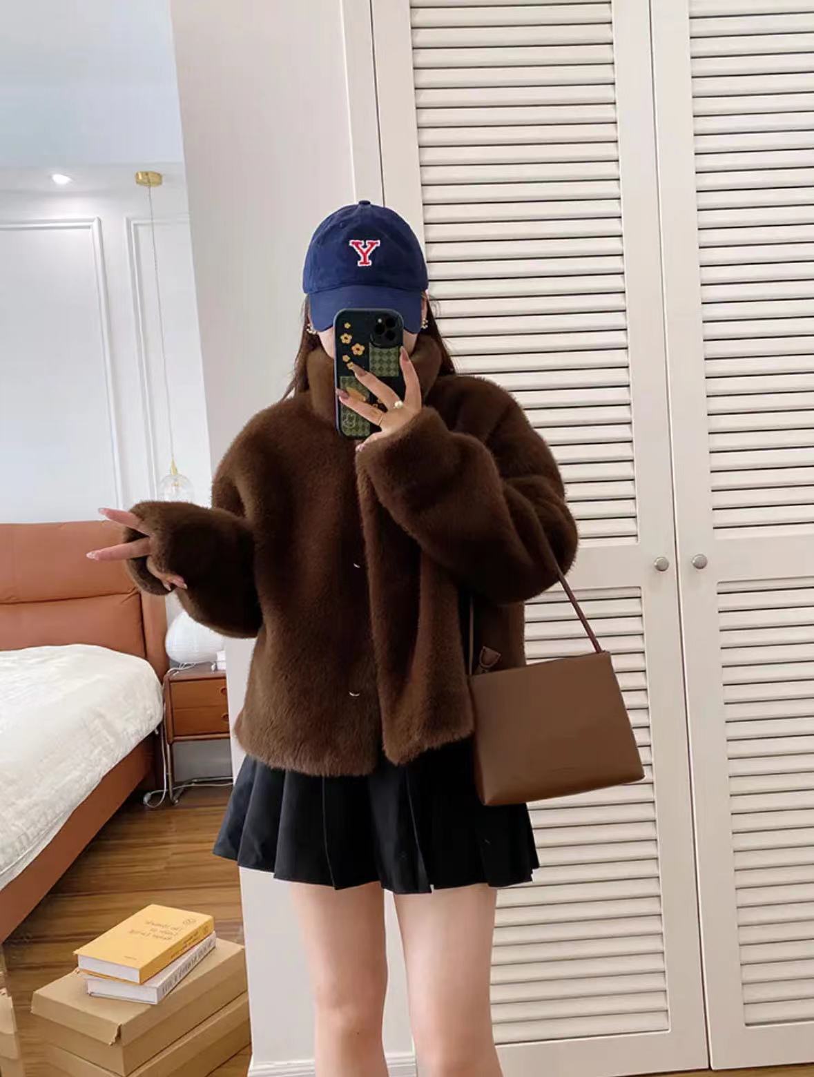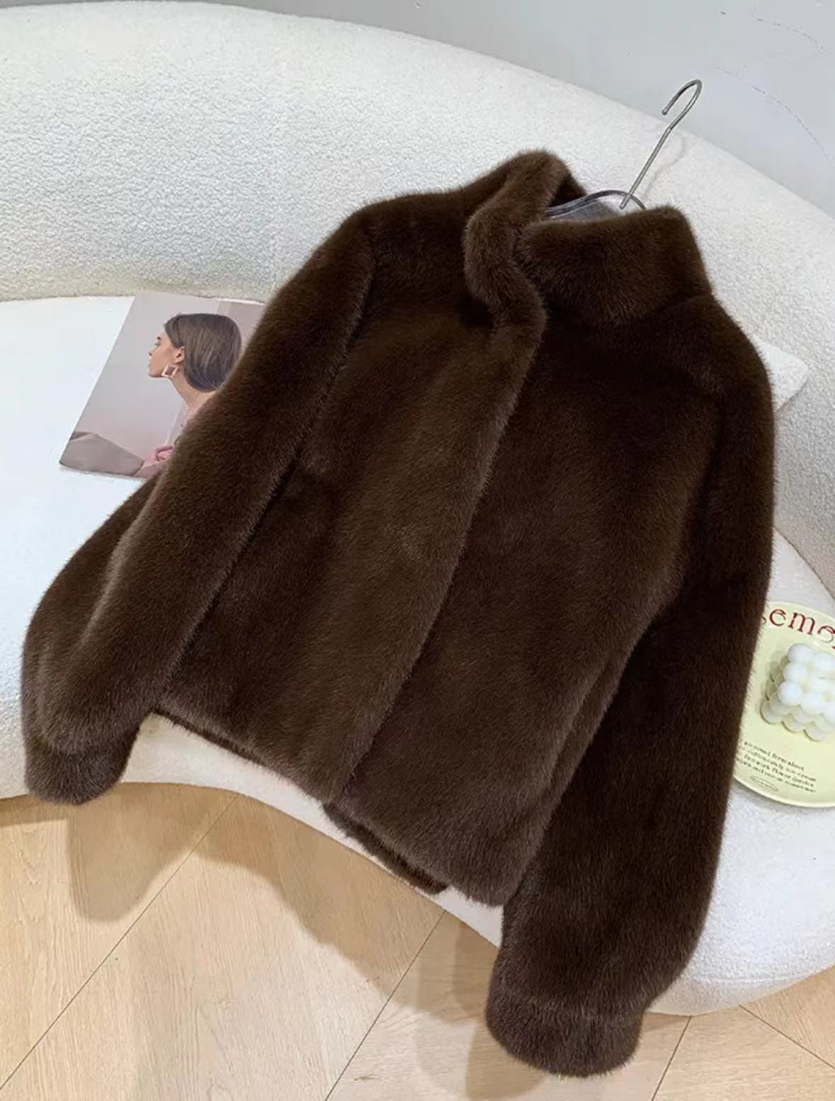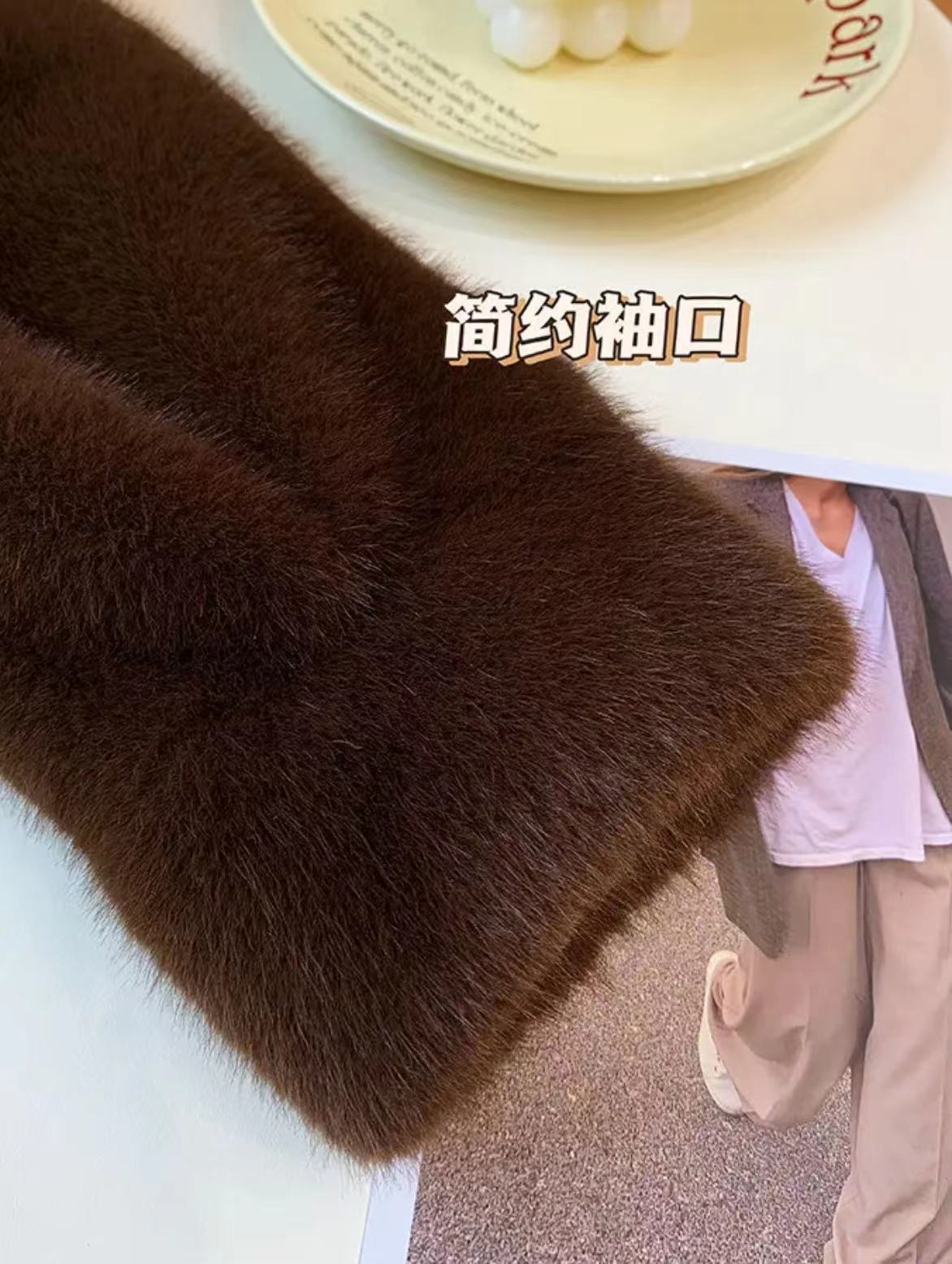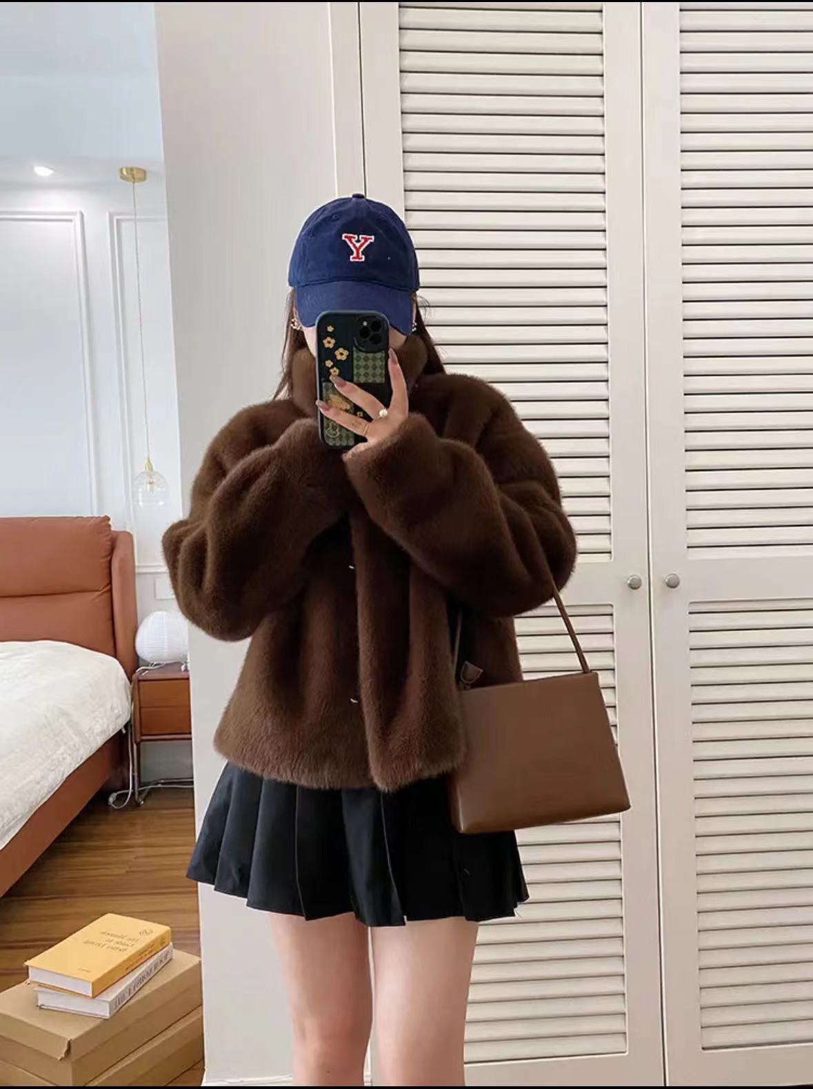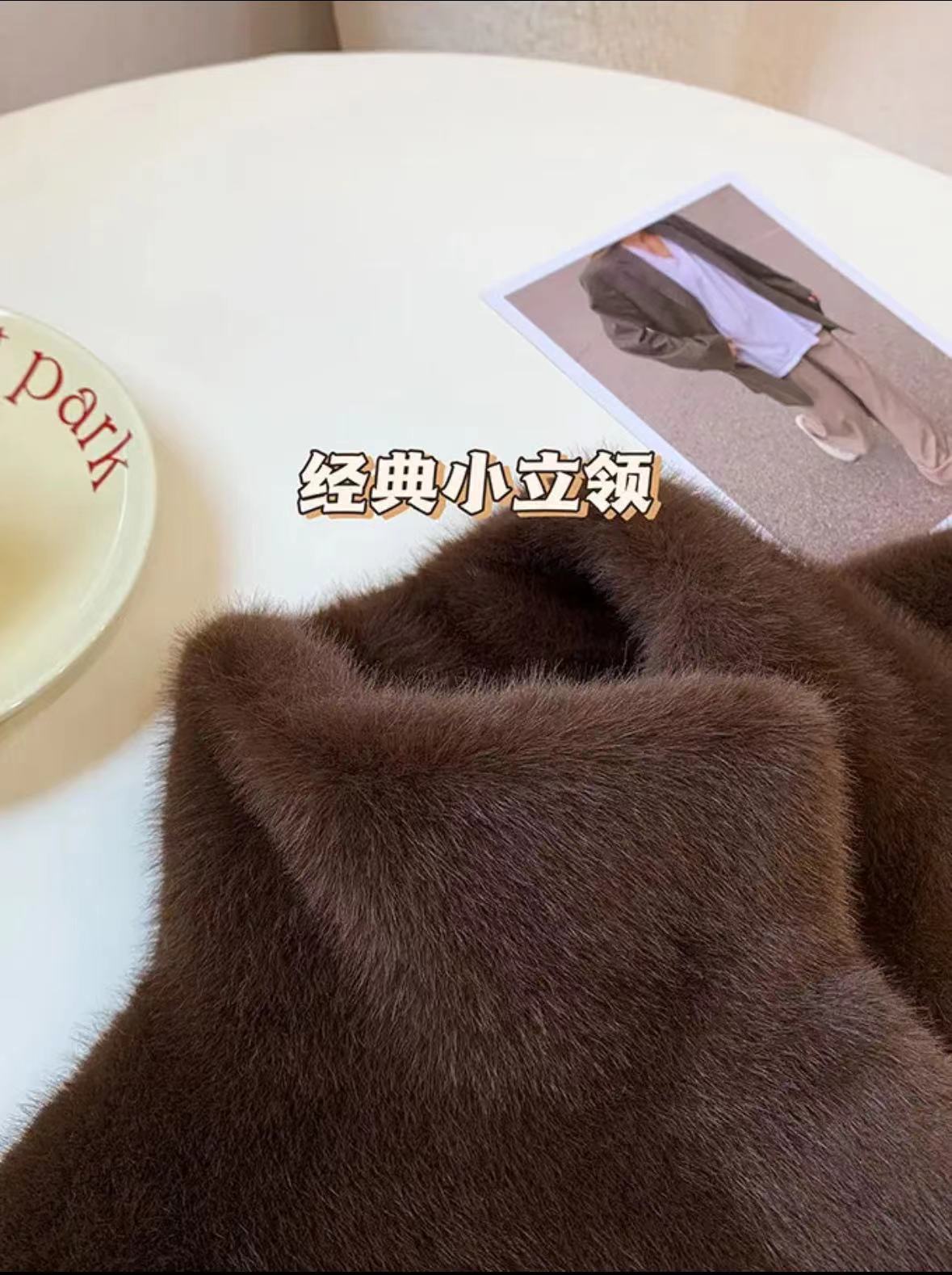 丁摩 金貂绒仿水貂皮大衣皮毛一体立领短款环保皮草24-0702