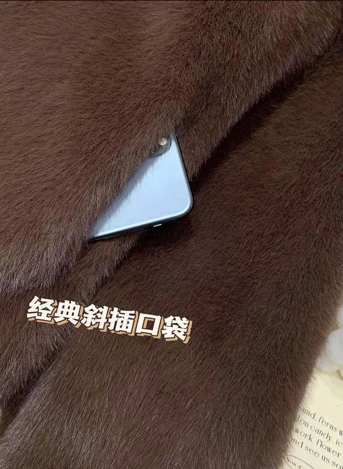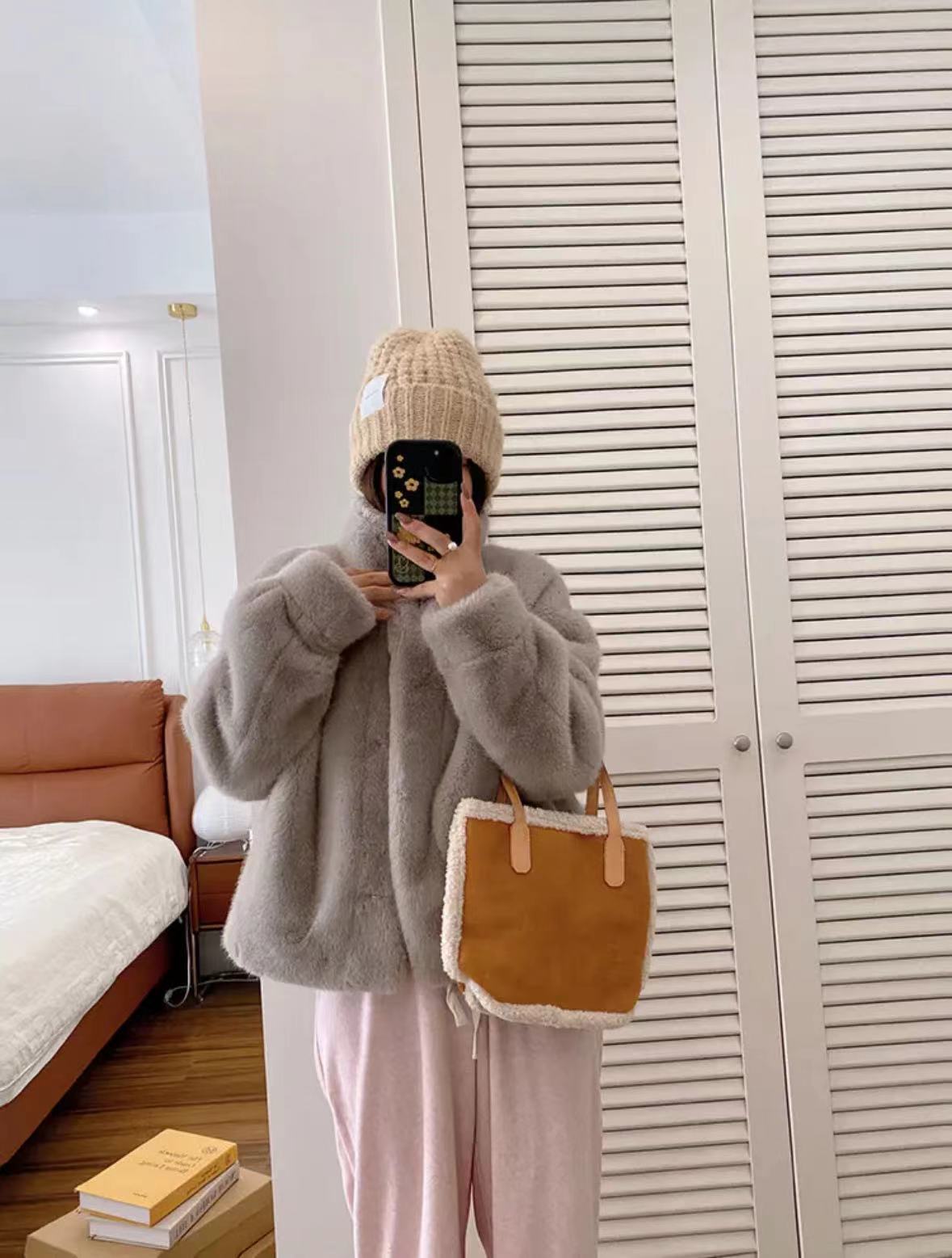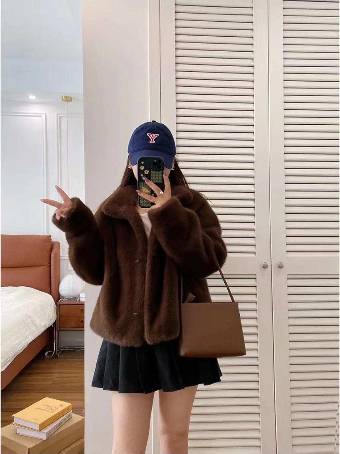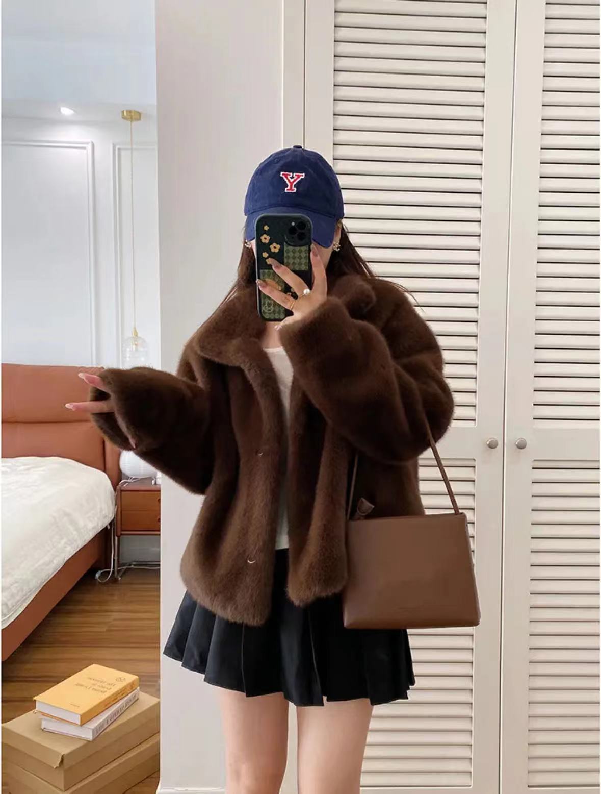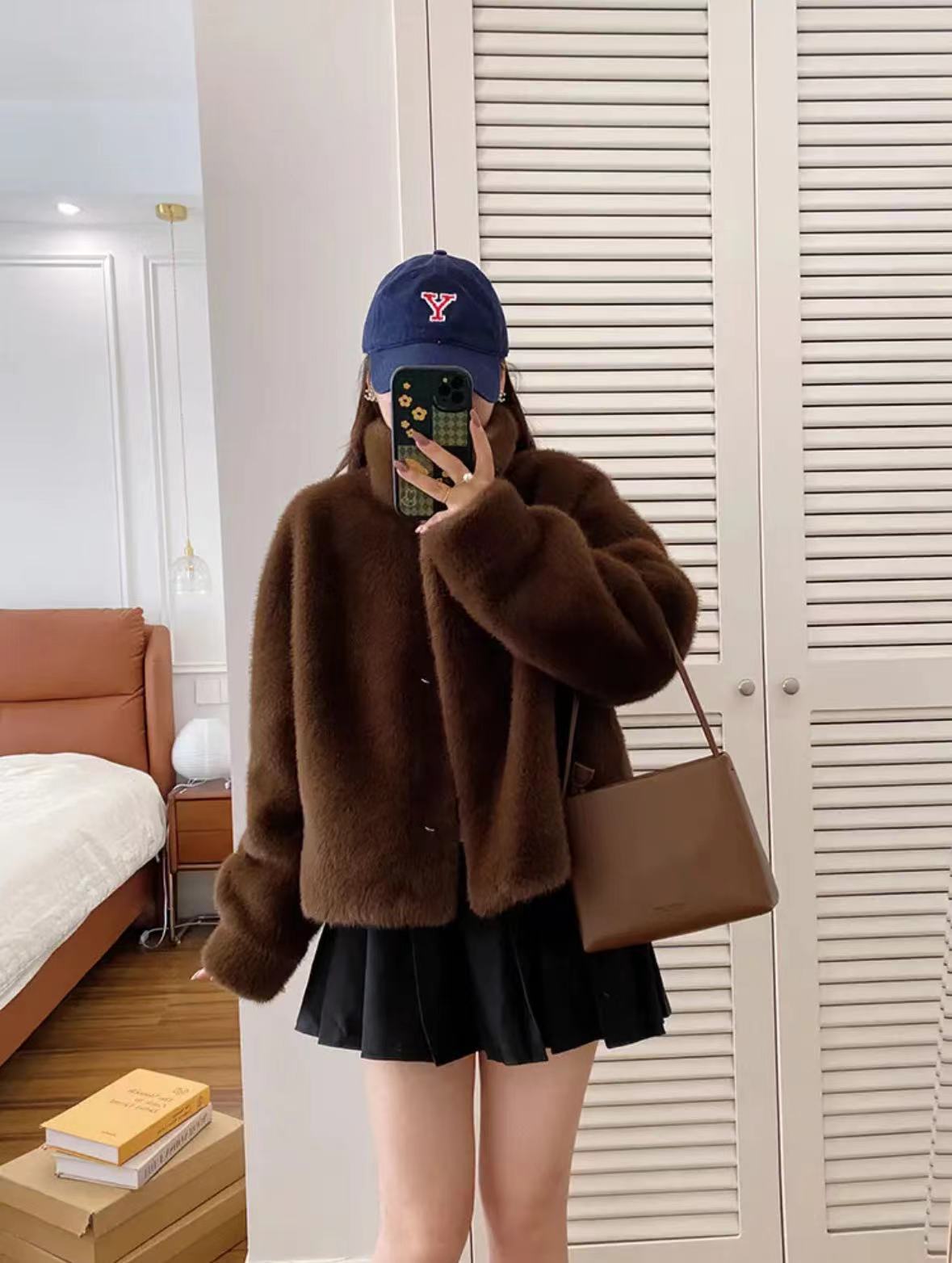 丁摩 金貂绒仿水貂皮大衣皮毛一体立领短款环保皮草24-0702
