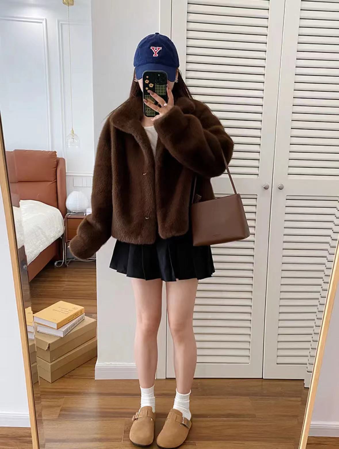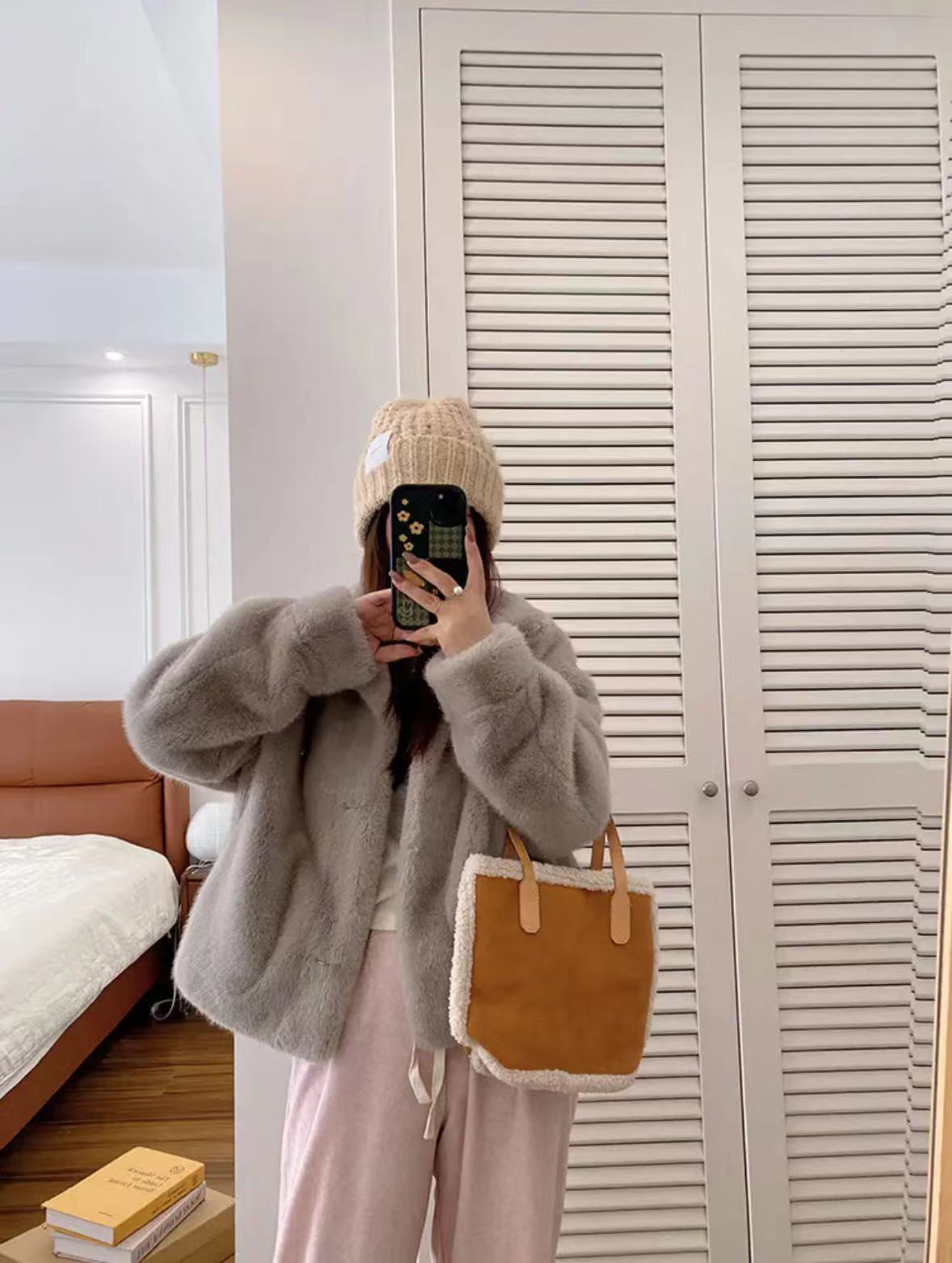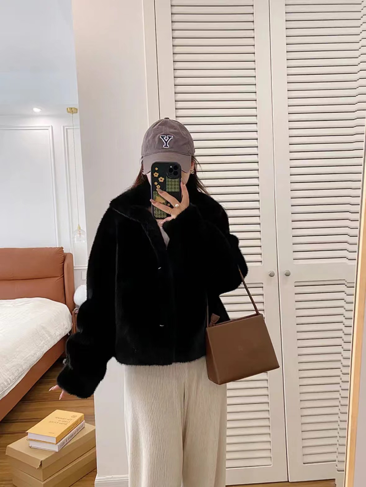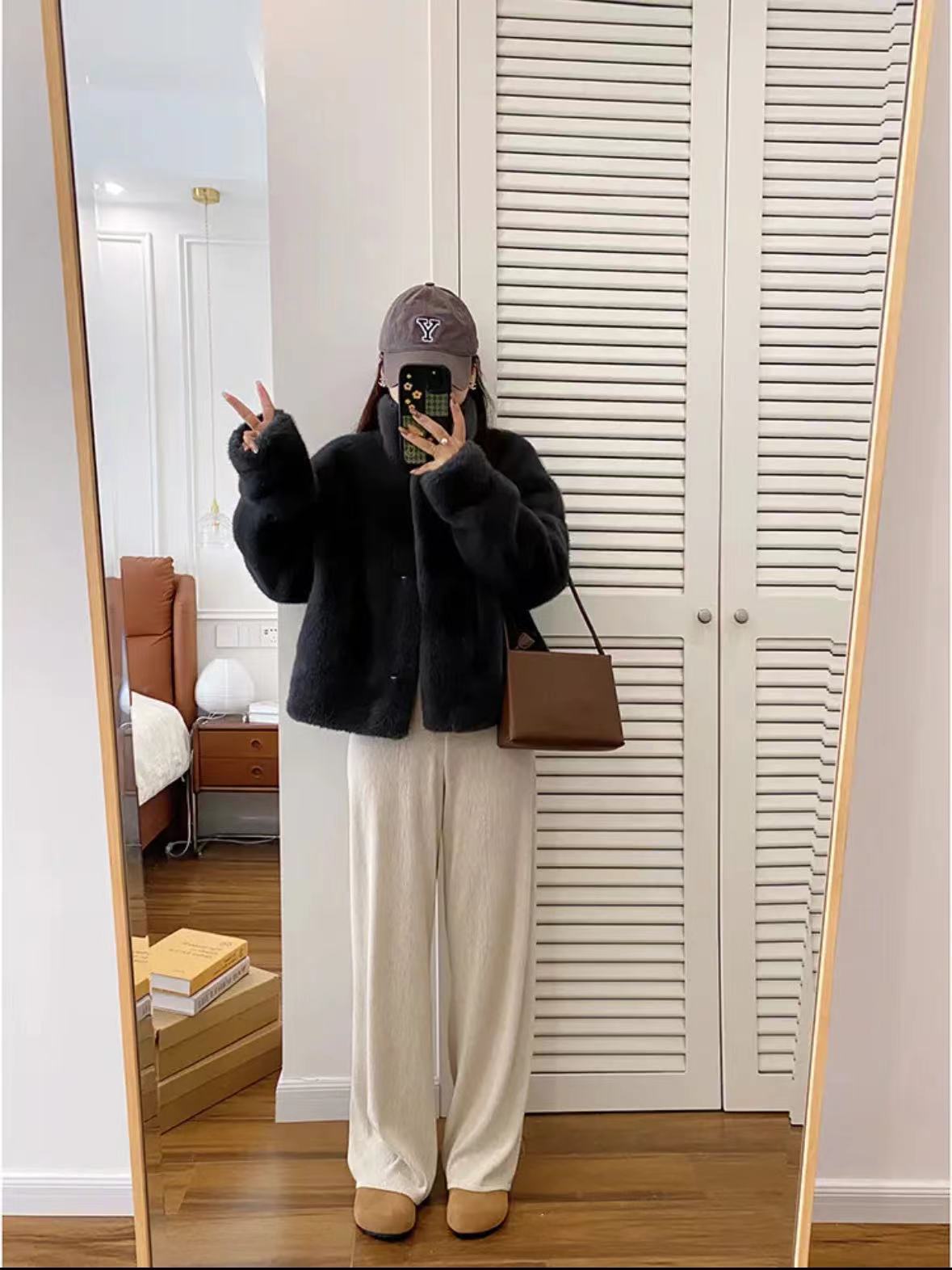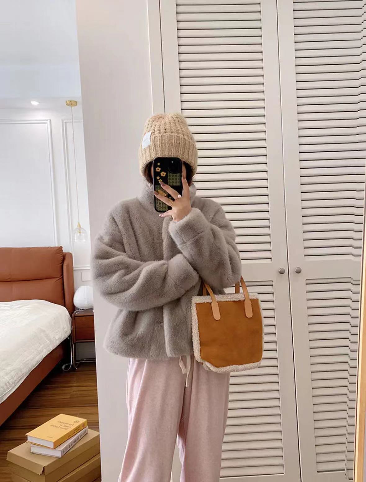 丁摩 金貂绒仿水貂皮大衣皮毛一体立领短款环保皮草24-0702
