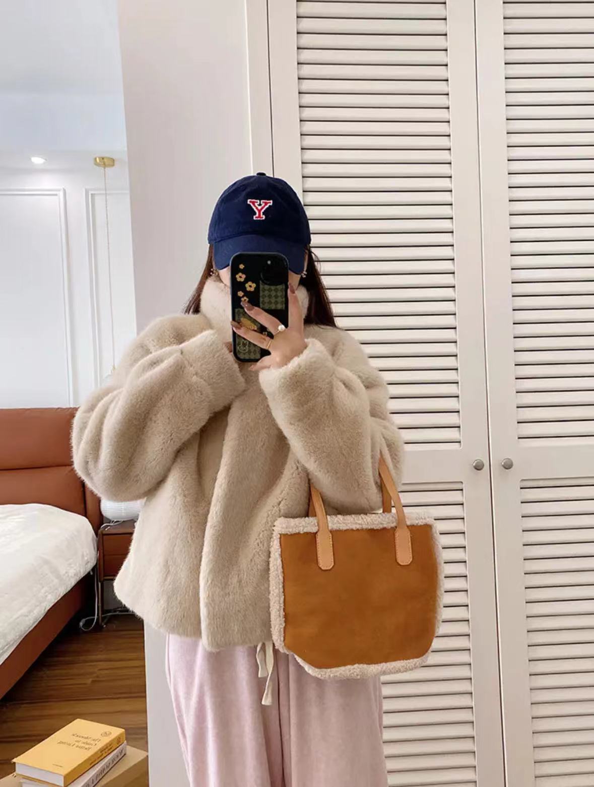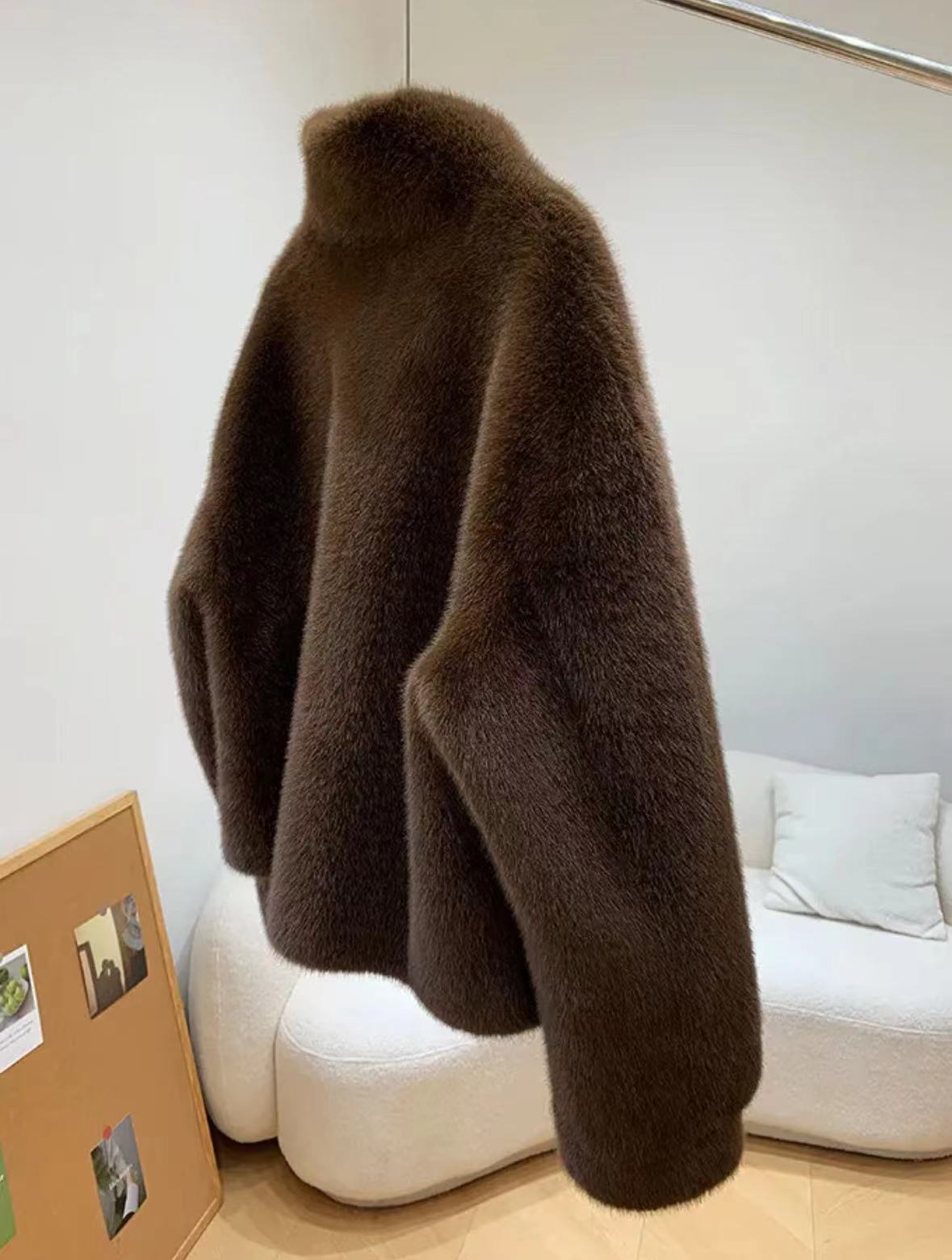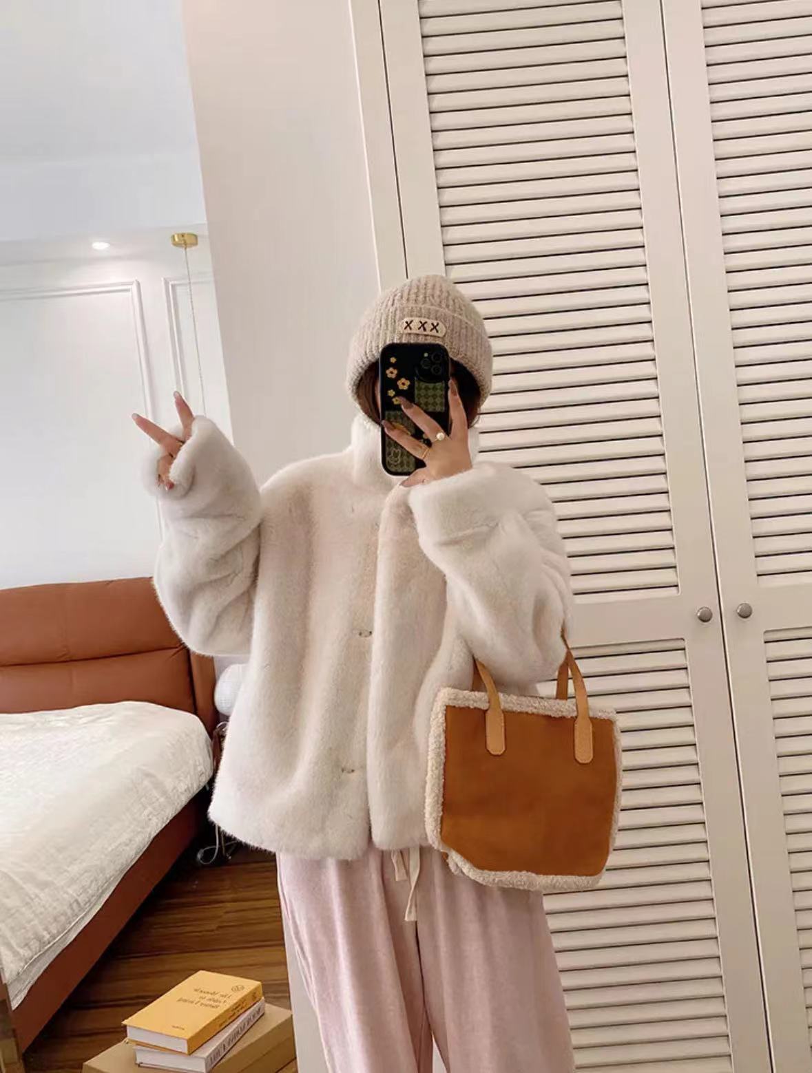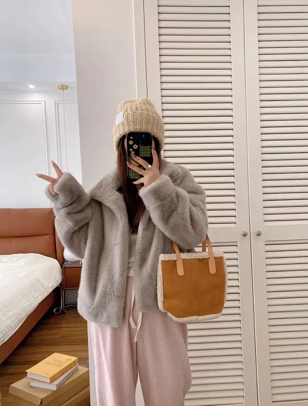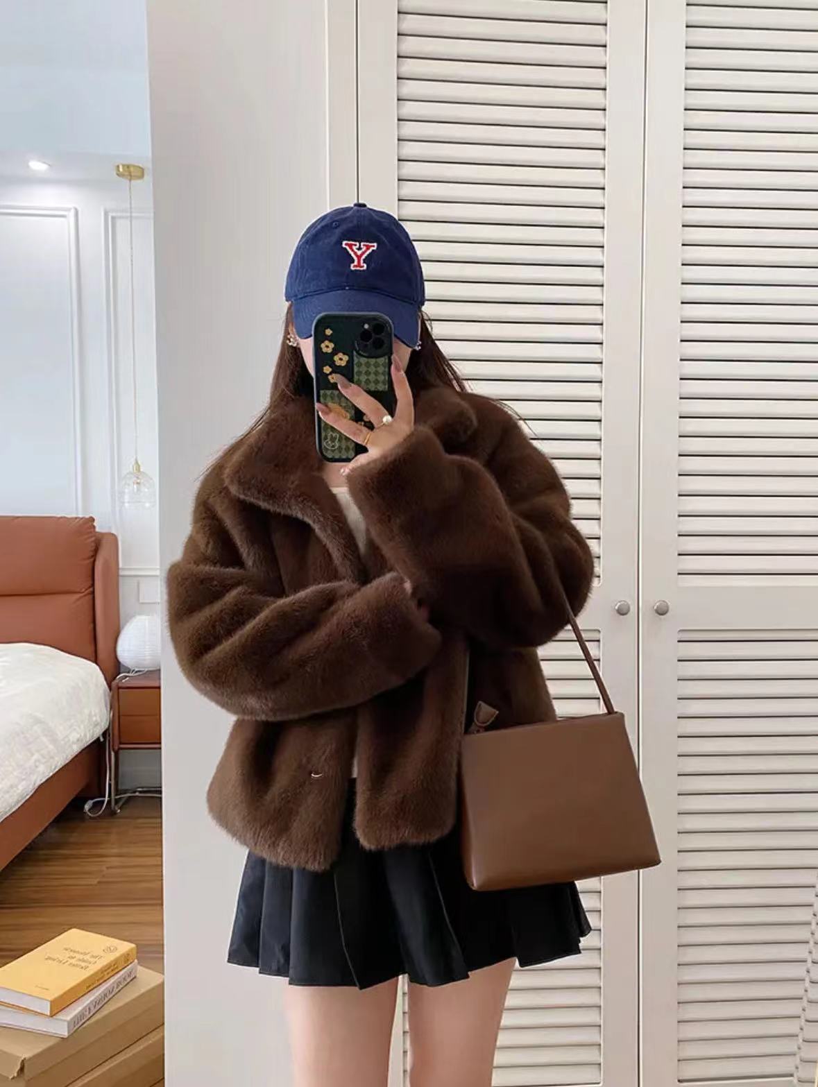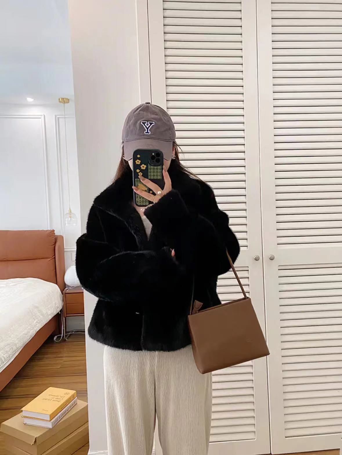 丁摩 金貂绒仿水貂皮大衣皮毛一体立领短款环保皮草24-0702