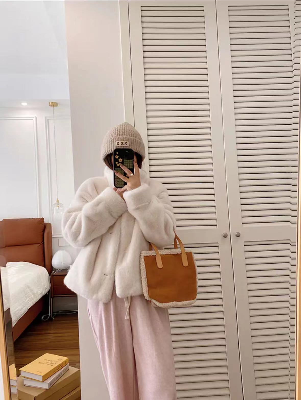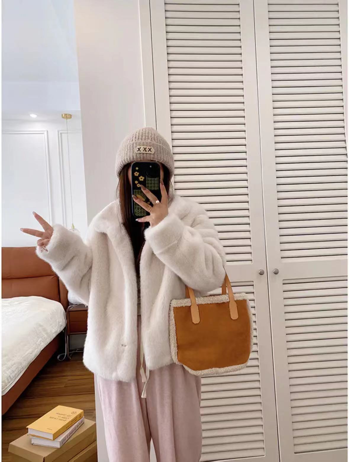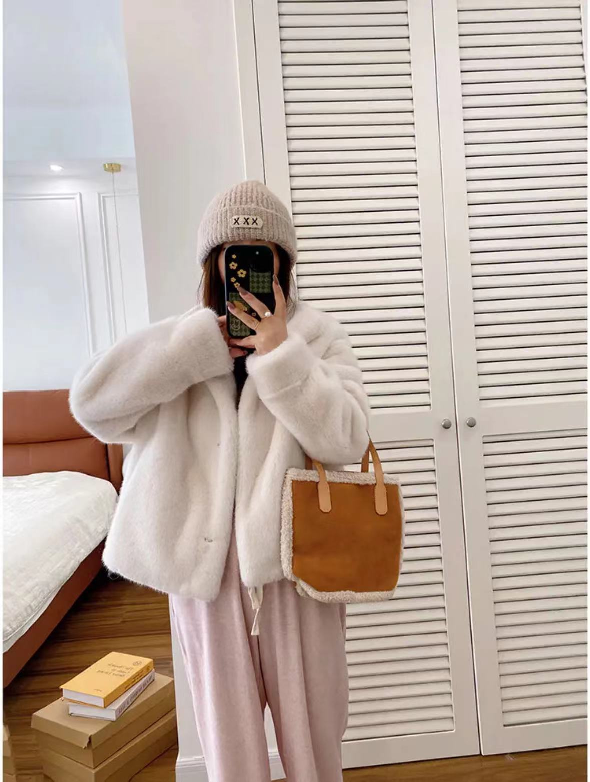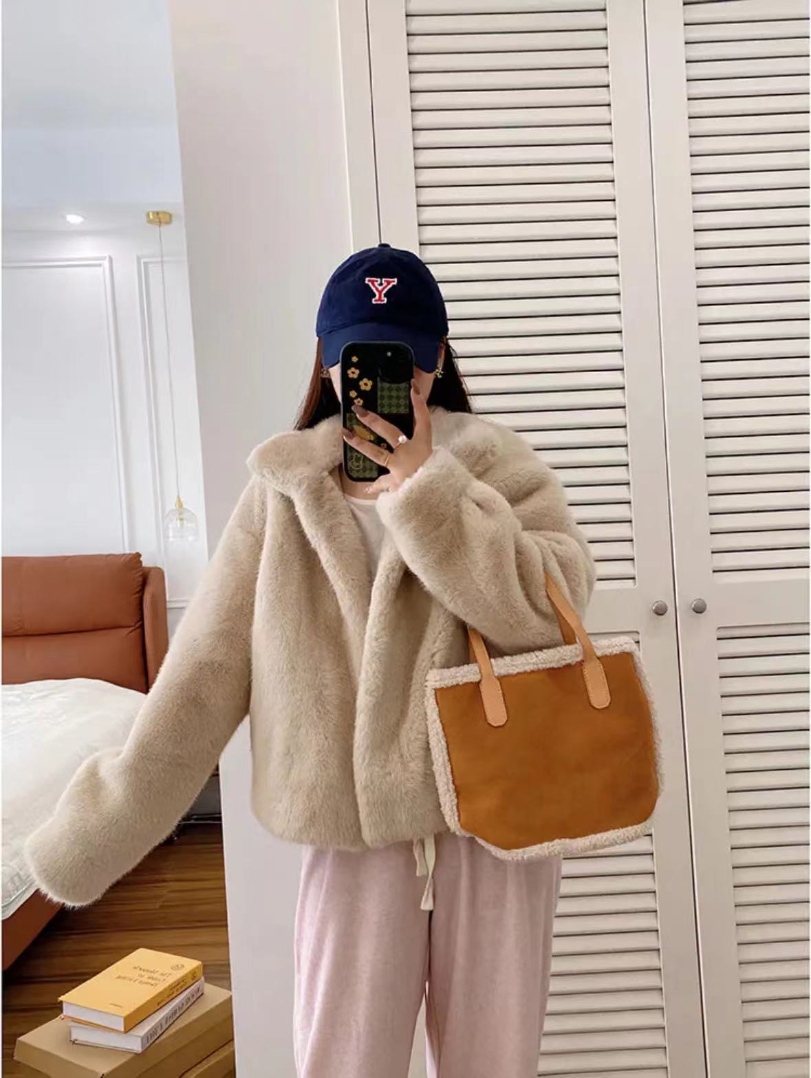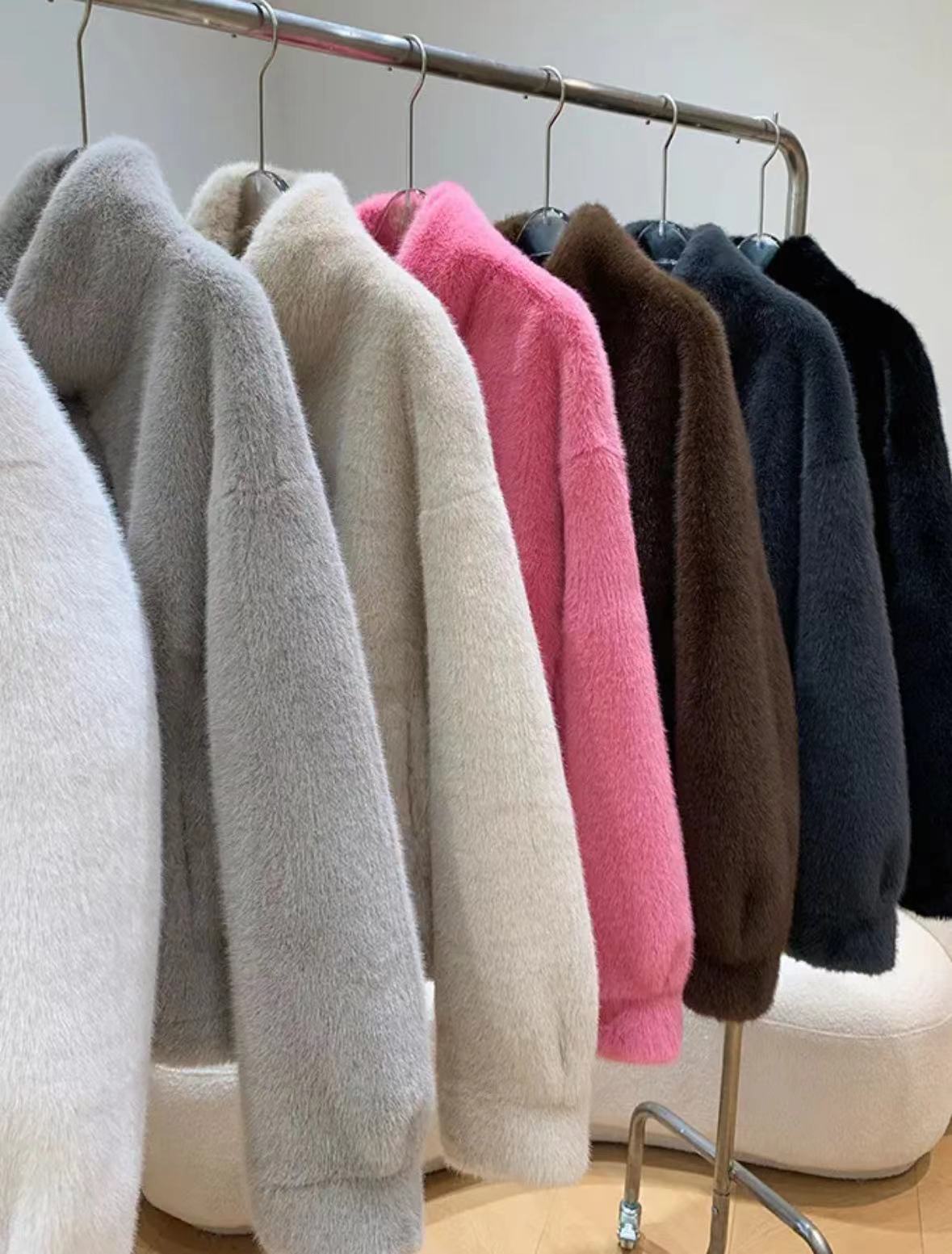 丁摩 金貂绒仿水貂皮大衣皮毛一体立领短款环保皮草24-0702