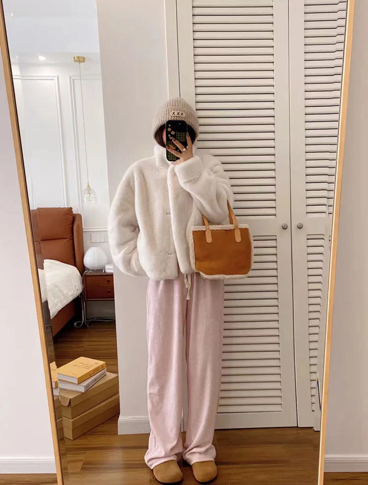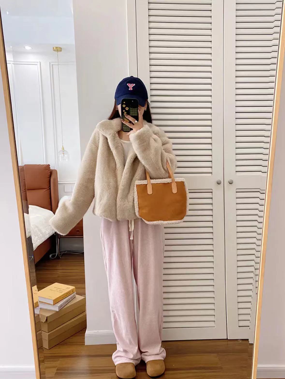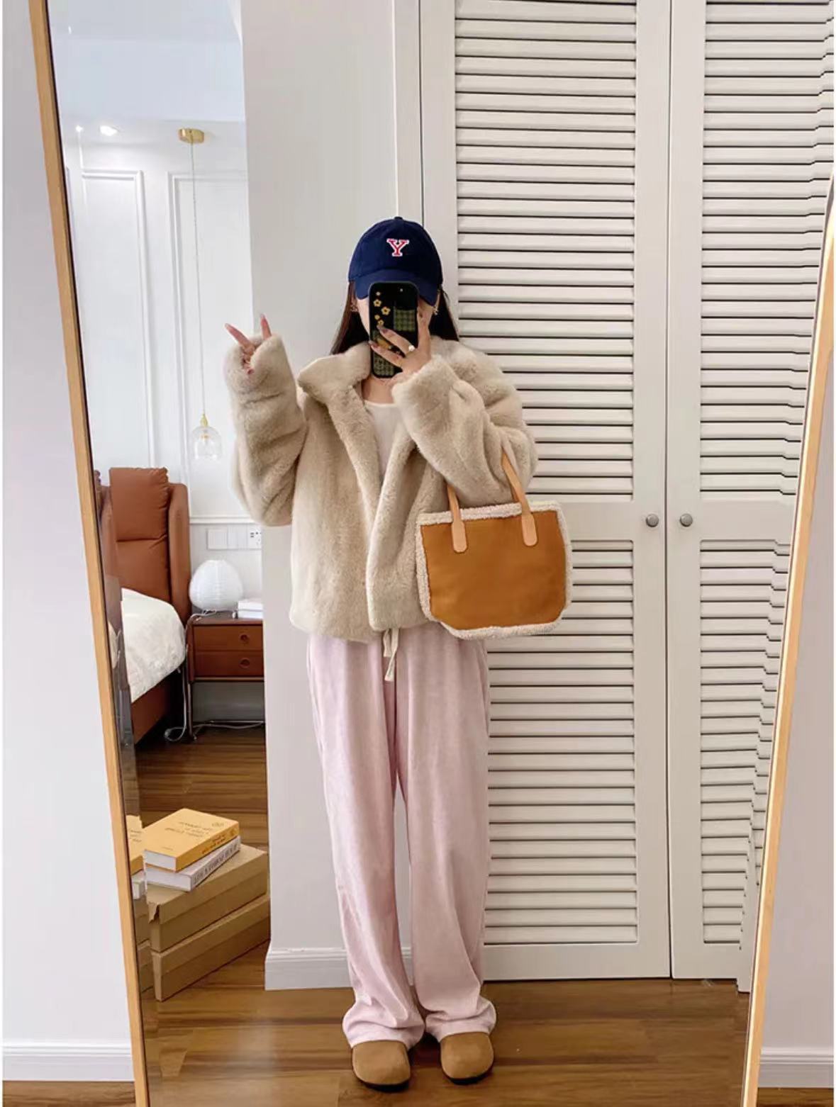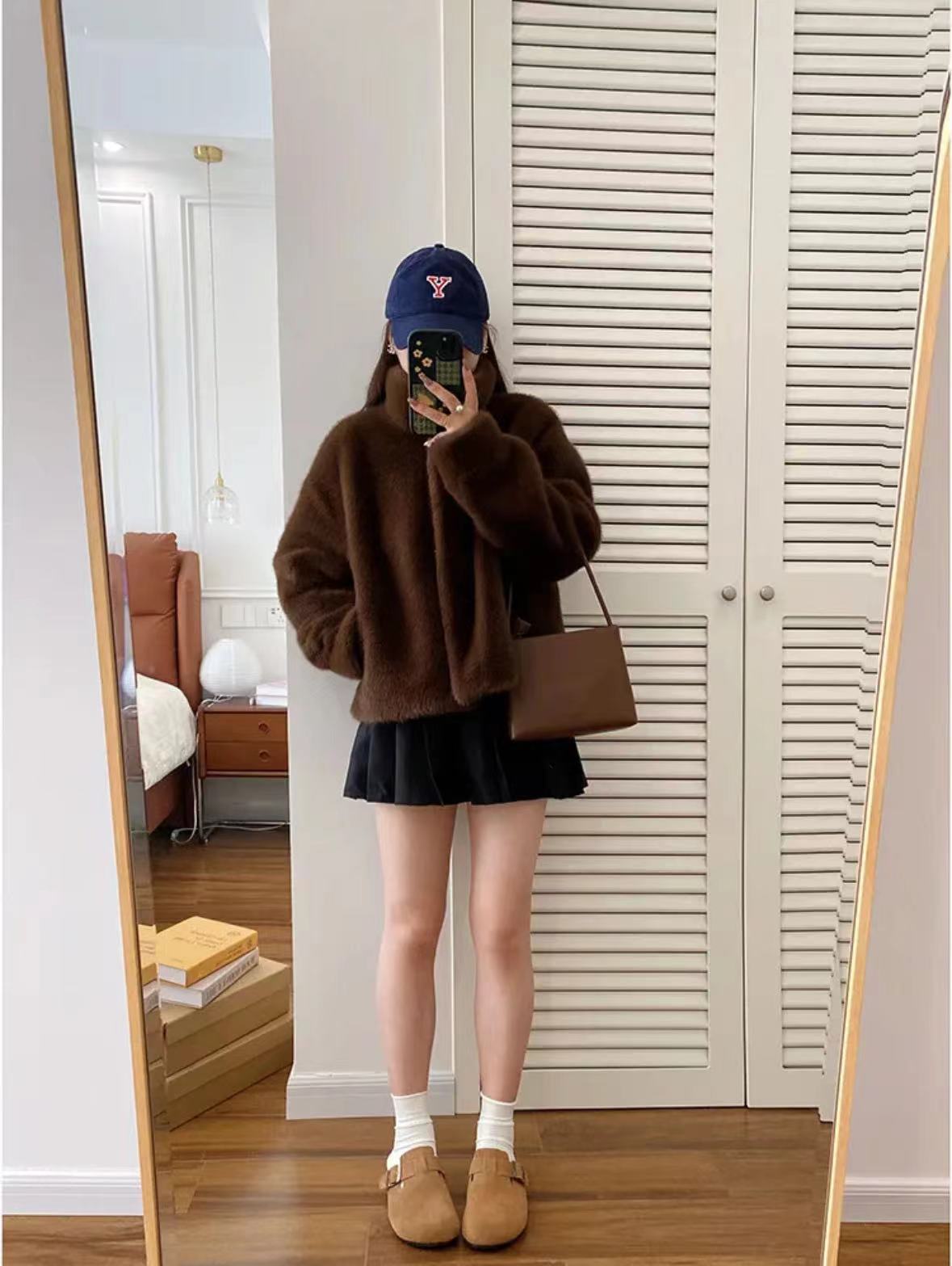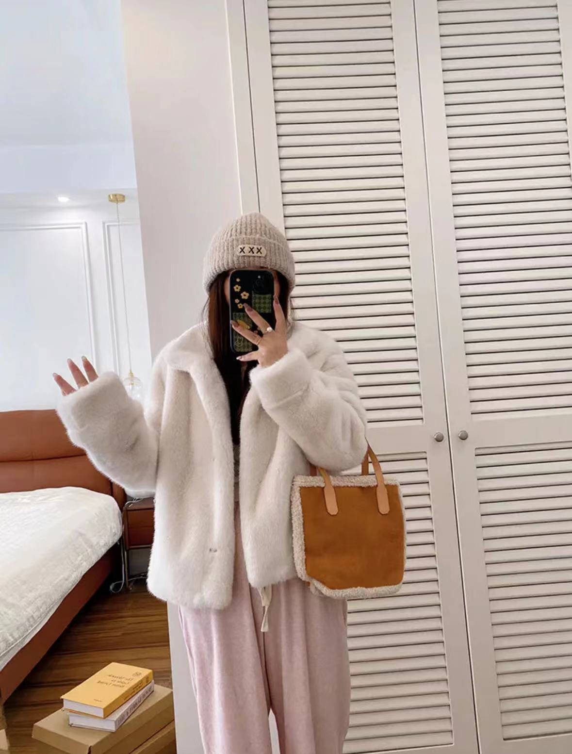 丁摩 金貂绒仿水貂皮大衣皮毛一体立领短款环保皮草24-0702