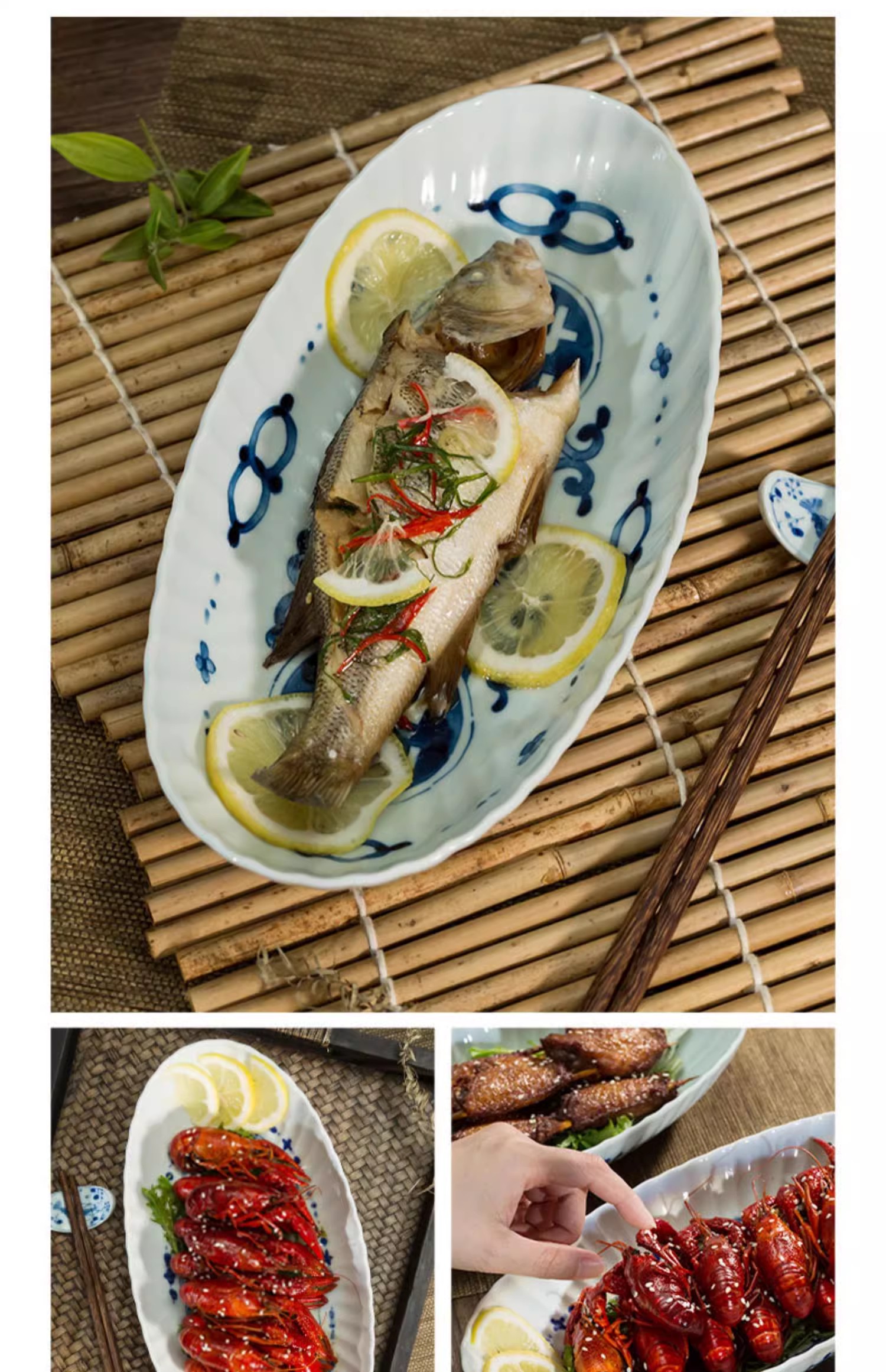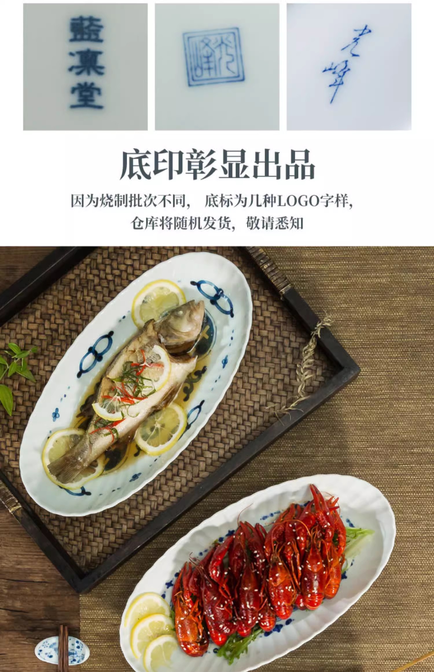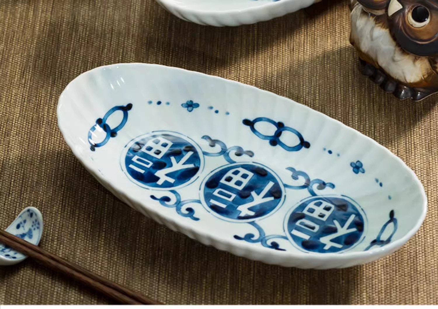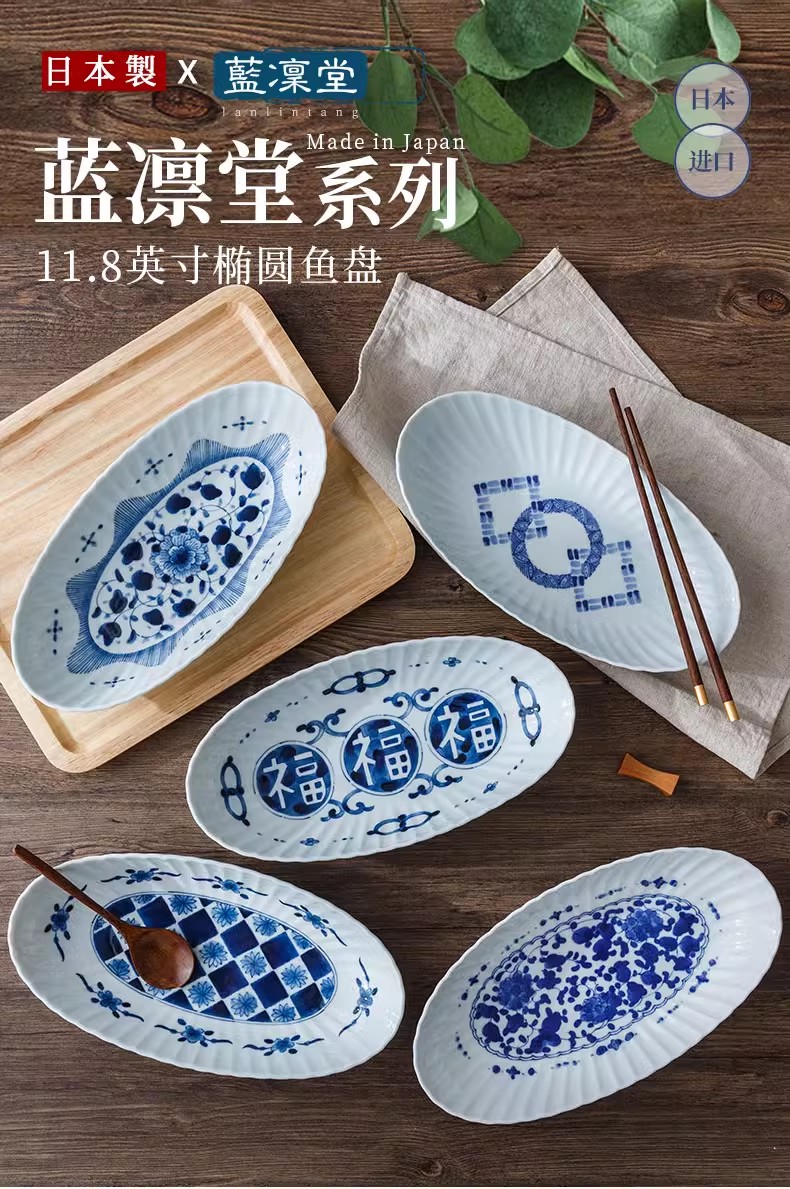 蓝凛堂吉祥菱形椭圆鱼盘(TNMYK9K)